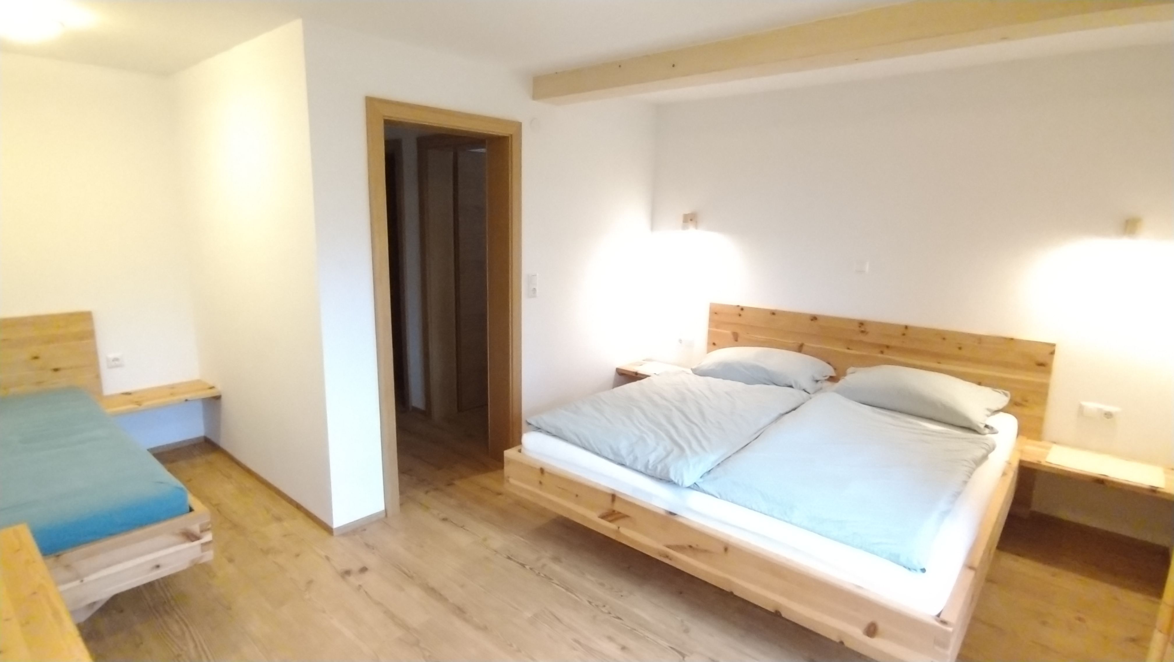 Die im Jahr 2022 renovierte Wohnung Brennerin überzeugt mit einem großen Platzangebot (100m²). Durch die Verwendung von unbehandeltem Fichtenholz aus dem eigenen Wald vermittelt sie Behaglichkeit, Natürlichkeit und Wärme. Das Einzigartige dieser Wohnung ist die große Dachterrasse mit Liegestühlen und Sitzgelegenheiten. Bad (mit Fußbodenheizung) und WC sind getrennt. Ein Schlafzimmer ist mit Zirbenbetten ausgestattet, das andere ermöglicht Schlafen unter Sternen mittels großem Dachpanoramafenster. Die Wohnung bietet Platz für 5 Personen plus zusätzlicher Schlafmöglichkeiten auf 2 Sofas im Schlafzimmer.