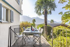 Muralto-Locarno: An schönster Südlage, oberhalb von Muralto über dem Lago Maggiore, inmitten einer grossartigen Parklandschaft mit über 150 Pflanzenarten.: Eine Oase der Ruhe. Ökologischer Betrieb mit Solaranlage für Warmwasser und 2 Luft-Wärmepumpen für die Energie. 2 Häuser in terrassierter Lage, immer mit Sicht auf den See und Berge des Gambarogno mit dem Monte Tamaro. Gemütliche, freistehende Ferienanlage Egner, umgeben von Bäumen. 2 Häuser in der Residenz. 5 Wohnungen in der Residenz. Am Ortsrand, 1 km vom Zentrum von Muralto - Locarno, alleinstehende, ruhige, sonnige Lage am Hang, direkt am Waldrand, 1.4 km vom See, 2.3 km vom Strand, in einer Sackgasse, Richtung Süden. Zur Mitbenutzung: naturbelassenes Grundstück mit Rasen und Pflanzen, wunderschöner Garten zum Entspannen. Aussendusche, Grill. Im Hause: Tischtennis, Zentralheizung. 400 m lange steile, schmale Zufahrt bis zum Grundstück. 50 m Fussweg bis zum Haus. Parkplatz (beschränkte Anzahl, extra) in 50 m. Einkaufsgeschäft, Supermarkt 700 m, Restaurant 500 m, Fußgängerzone 700 m, Zentrum zu Fuss in 15 Minuten erreichbar, Bushaltestelle Locarno Piazza Stazione 700 m, Bahnstation Locarno SBB 700 m, Freibad 2.3 km, Hallenbad 1.8 km, Thermalbad Termali & Salini, Locarno 1.8 km, See Lago Maggiore. Golfplatz (9 Loch) 2.3 km, Minigolf 1.2 km, Wanderwege ab Haus 1 m, Luftseilbahn 3 km. Nahe gelegene Sehenswürdigkeiten: Madonana del Sasso, Orselina, Locarno-Ascona, Ronco sopra Ascona, Falconeria, Kamelienpark, Piazza Grande, Swissminiatur, Melide, Swissminiatur, Melide, Castelli di Bellinzona. Bekannte Seen in der Umgebung sind gut erreichbar: Lago Maggiore, Lago di Sambuco, Lago di Lugano, Lago di Como, Lago di Orta. Wandergebiete: Valle Maggia, Valle Verzasca, Cardada, Monte Tamaro - Monte Lema, Monte Generoso, Malcantone. Bitte beachten: kein Fahrstuhl vorhanden. Geeignet für Familien, Babyausstattung auf Anfrage (extra). Der Besitzer akzeptiert keine Jugendgruppen. Be- und Entladen am Ferienhaus möglich. Weitere Unterkünfte sind buchbar. Ferienwohnung Ref. CH6600.361.1-5 befindet sich auf dem gleichen Grundstück. Alle Häuser/Wohnungen sind individuell eingerichtet. Aussenbereich für alle Gäste: Grill, Sitzplatz, Liegewiese, Bambus-Dusche, Terrassierter Botanischer Garten/mit Beschriftung der Pflanzen und Pflanzenplan zur Übersicht.