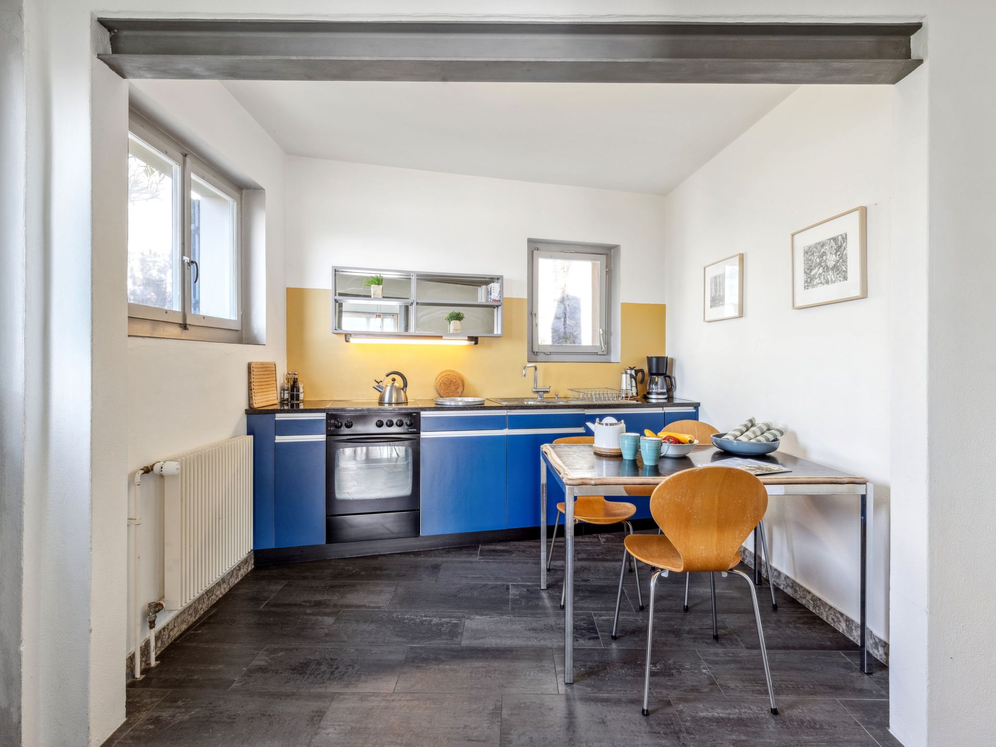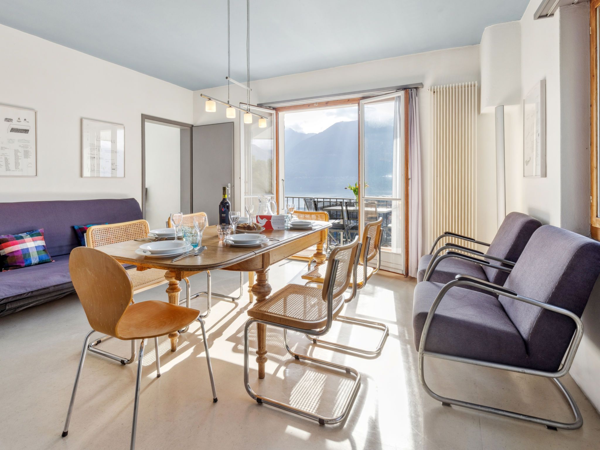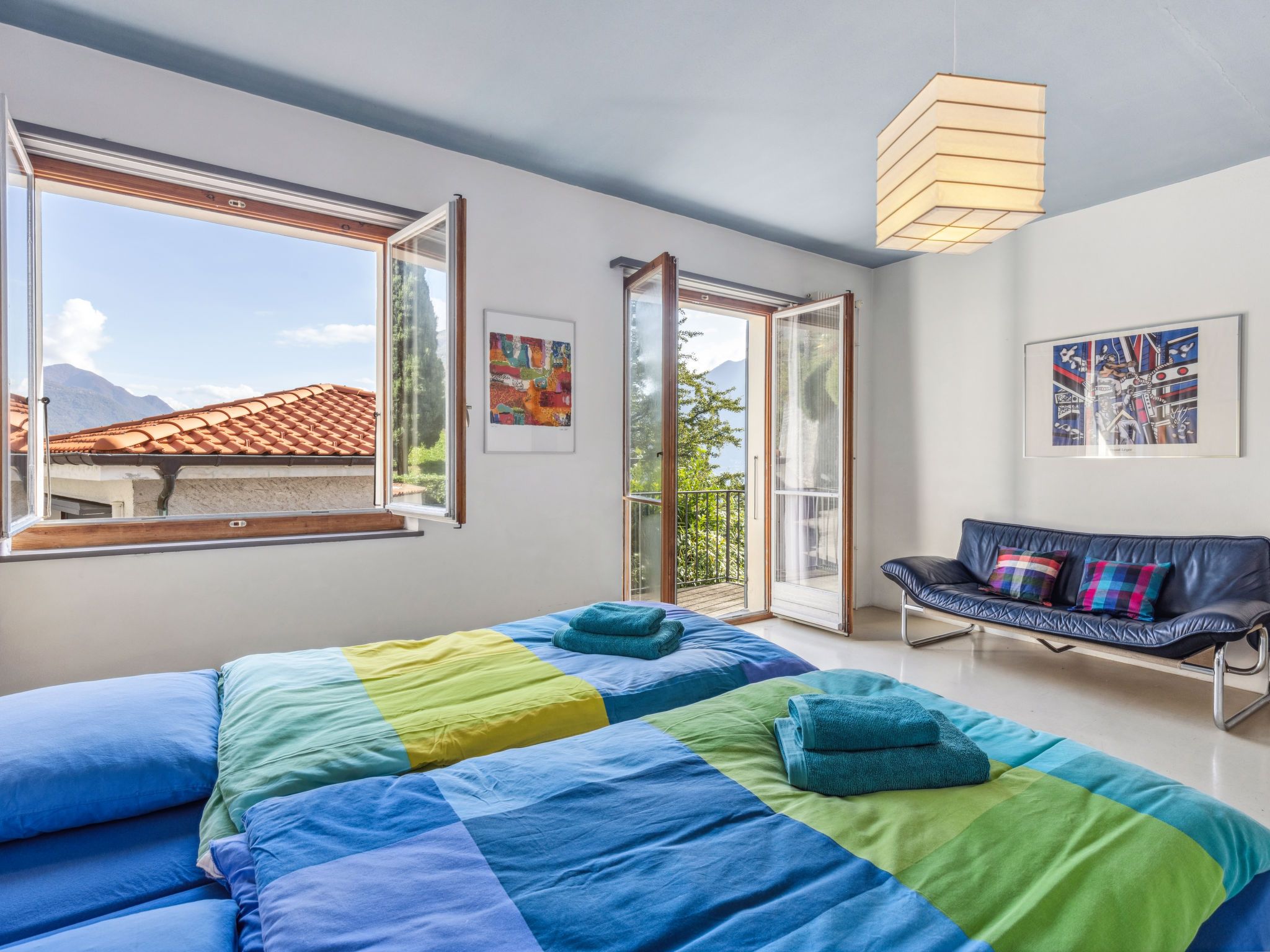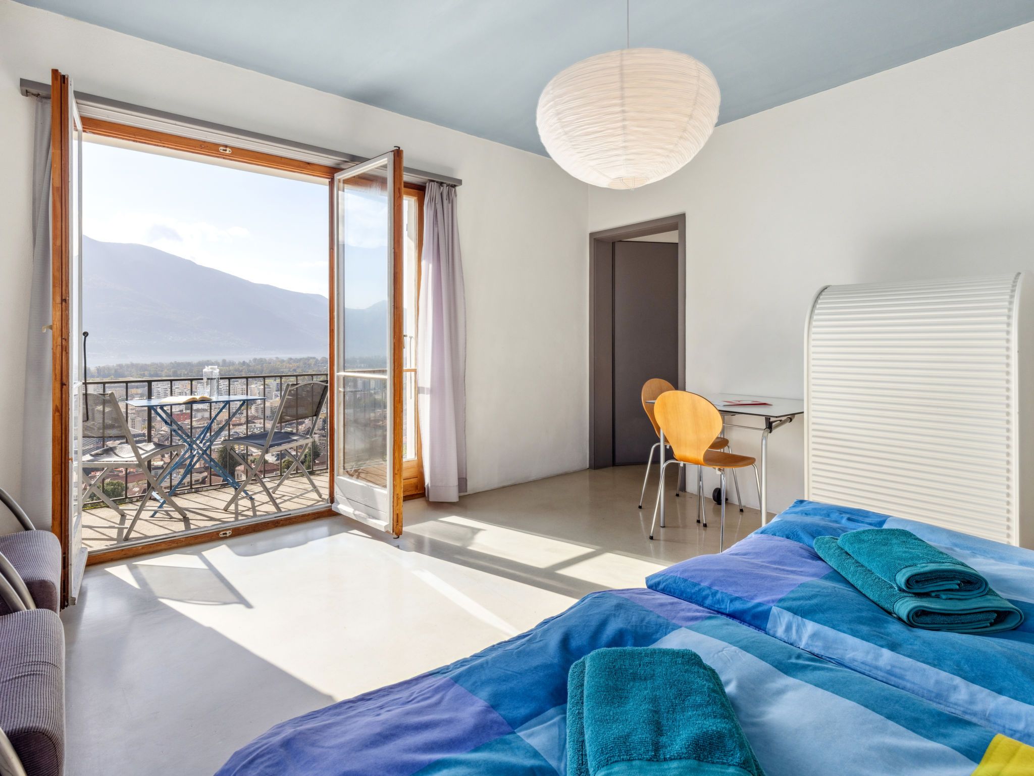 Egner- Apt.Panorama, 3-Zimmer-Wohnung im Obergeschoss, Südlage. Objekt geeignet für 3 Erwachsene + 3 Kinder. Zweckmässig und gemütlich eingerichtet: Wohn-/Schlafzimmer mit 1 Diwanbett (140 cm, Länge 200 cm). Ausgang zum Balkon. 1 Doppelzimmer mit 2 Betten (90 cm, Länge 200 cm). 1 Doppelzimmer mit 2 Betten (90 cm, Länge 200 cm). Küche (Backofen, 4 Glaskeramikplatten, Wasserkocher, elektrische Kaffeemaschine) mit Esstisch. Bad/WC. Heizung. Balkon. Balkonmöbel. Schöne Panoramasicht auf den See, die Berge und die Ortschaft. Bitte beachten: geeignet für Familien. Nichtraucher-Unterkunft. Zugang zu der Wohnung über 8 Stufen - kein TV. NL-