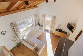 Das doppelstöckige Apartment BERGWALDZAUBER im Haus zur Post ist auf 4 bis 9 Personen ausgelegt und überzeugt durch helle Räume und einen besonders hohen Ausbaustandard. Die komfortable, moderne Küche verfügt über einen angrenzenden Essbereich mit schöner Aussicht in die Bergwälder der Ostalpen. Gleichzeitig lädt die grosszügige Stube mit Sichtbalken zu gemütlichen Lese- oder Fernsehabenden ein.
