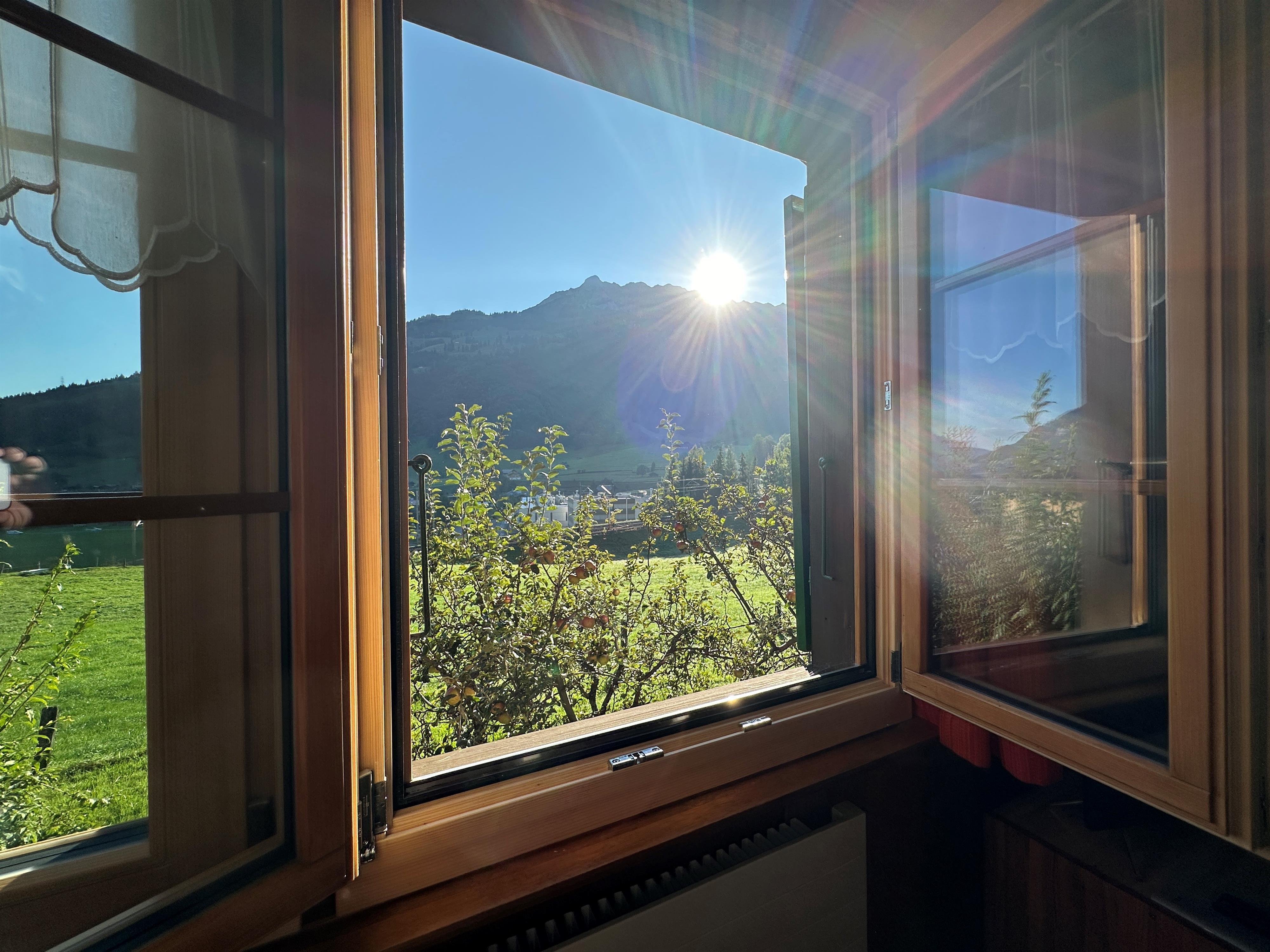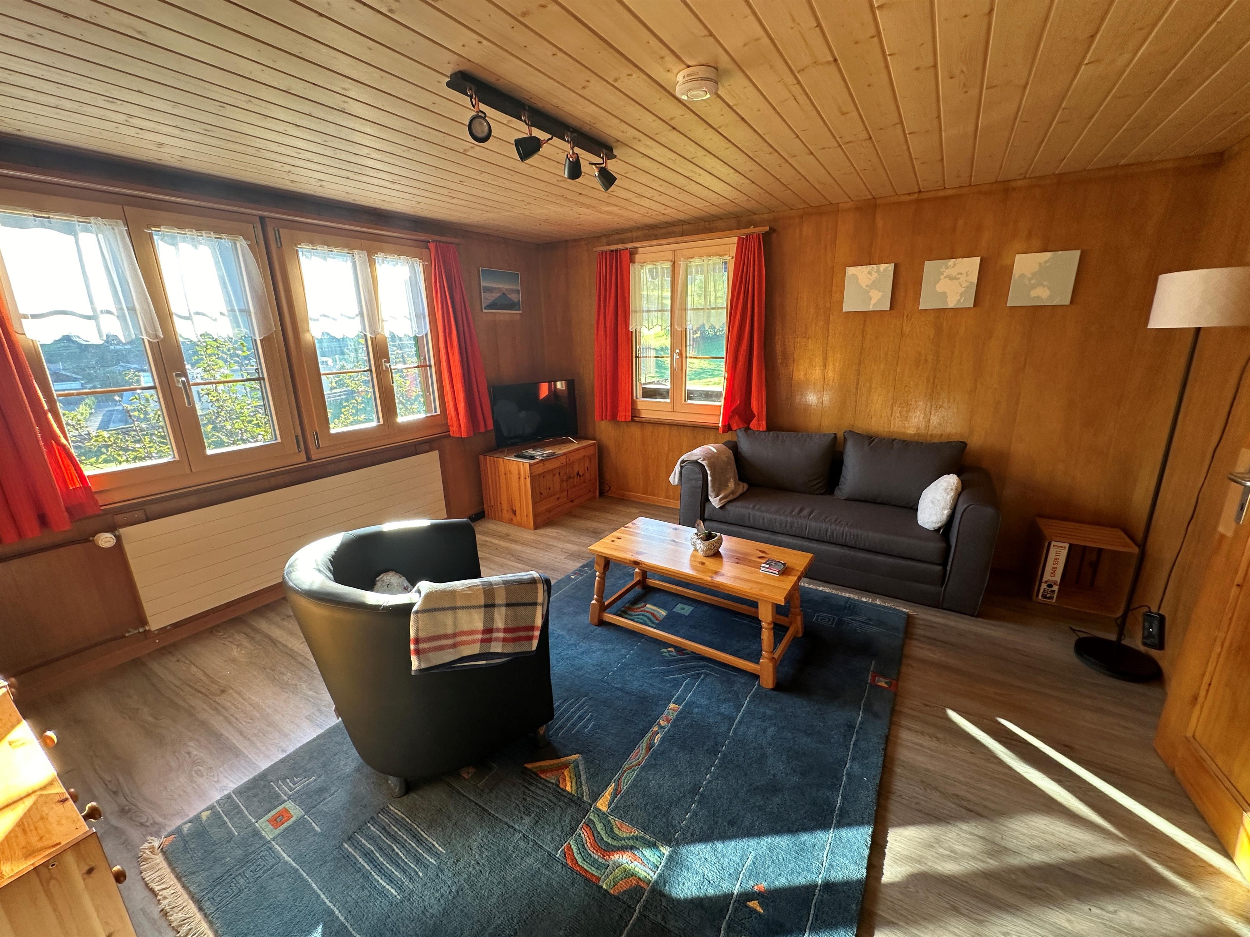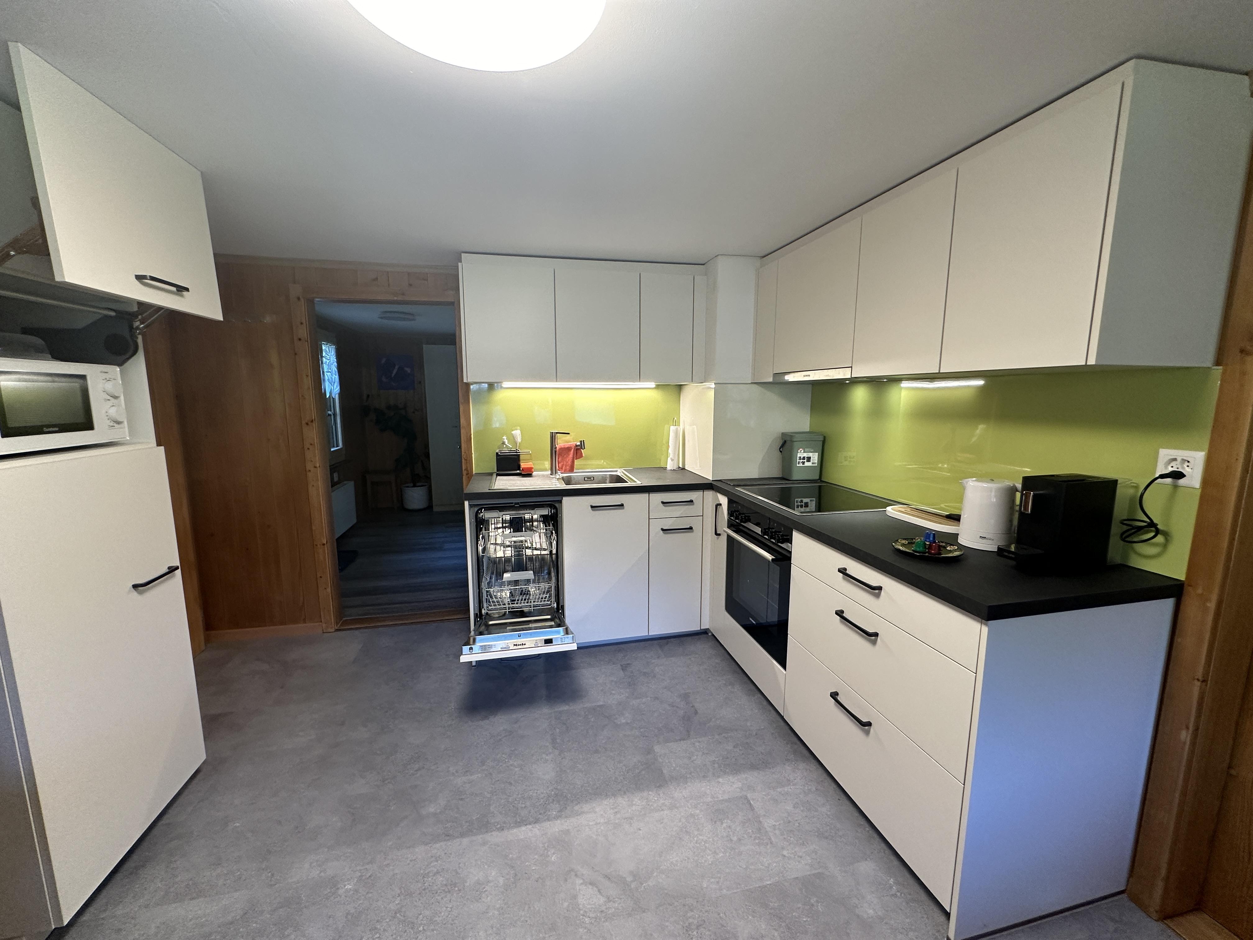 Frisch renovierte und sonnige 3-Zimmerwohnung (80m2) im ersten Stock eines Zweifamilienhauses. Die Wohnung liegt in ruhiger Lage im Grünen, jedoch nahe des Dorfes Frutigen.