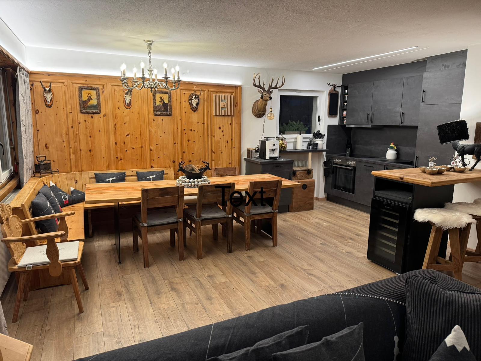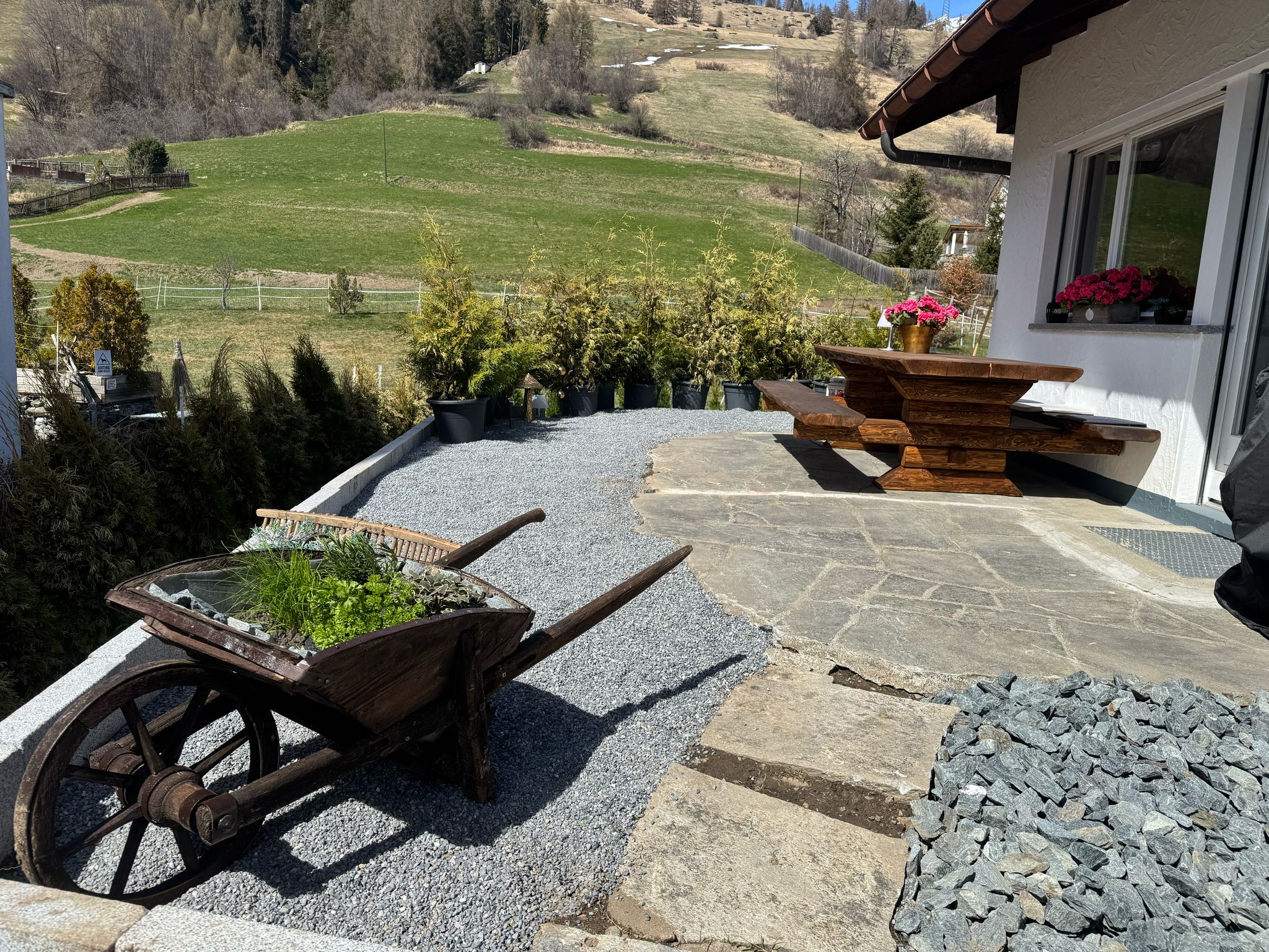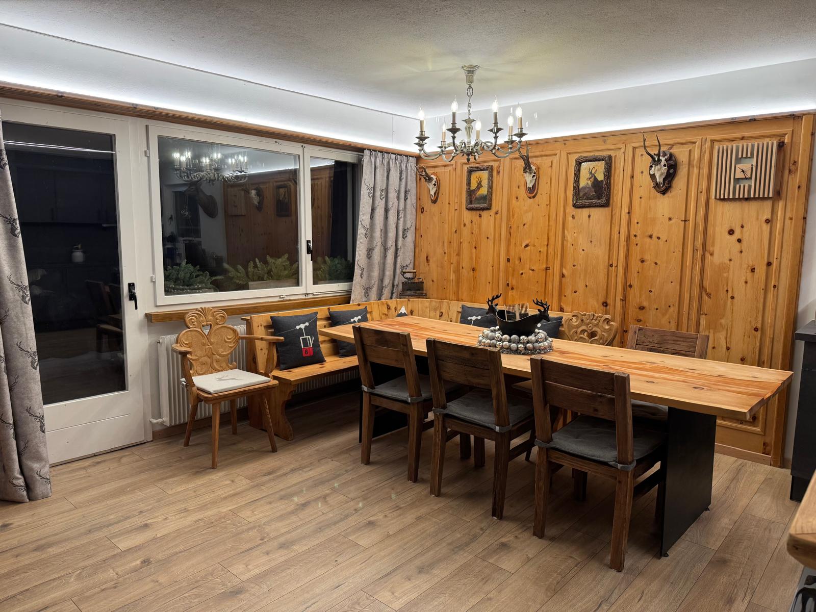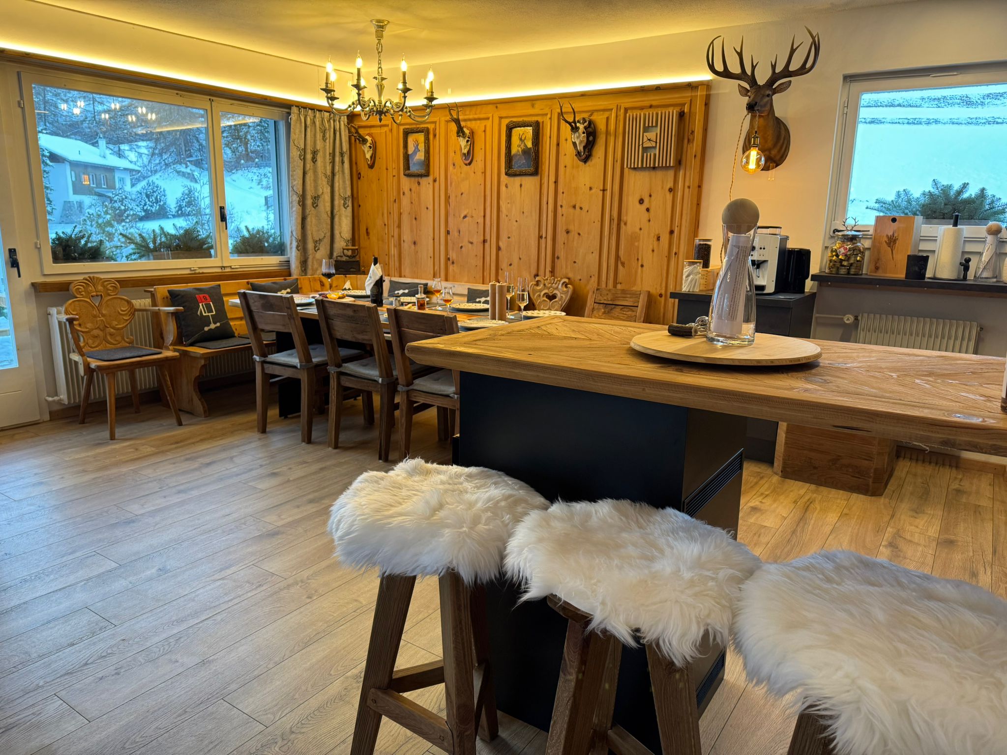 Charmantes, freistehendes Ferienhaus im Alpenchic-Retro-Style direkt an der Talabfahrt nach Scuol gelegen. Direkt an der Talabfahrt nach Scuol liegt unser charmantes, komplett neu renoviertes Berg-Bijou im einzigartigen Alpenchic-Retro-Style mit Platz für 8-10 Personen. Der kleine aber feine hauseigene Wellness-Bereich beschert unseren Gästen absolute Wohlfühlmomente. Jedes Zimmer hat seinen ganz eigenen Charme und bietet den Gästen den umwerfenden Blick auf das Skigebiet Motta Naluns und auf den Piz Lischana. Das Ferienhaus ist im Alpenchic-Retro-Style eigens durch die Eigentümerin Renate Benderer mit Liebe und Hingabe eingerichtet worden. Was früher modern war hat sie in unserem Bijou zum Modernen von heute gemacht. Alle Dekorationsgegenstände wie auch einige Möbel können Sie sogar direkt im Haus und im dazugehörigen Laden von Geweih-Royal kaufen. Der Wellnessbereich bietet eine finnische Sauna sowie einen Hotpot mit Whirlpool und Ruheliegen im Garten. Im UG finden Sie eine Infrarotkabine und den Ruheraum, welcher Entspannung pur garantiert. Das Haus hat 4 Aussenparkplätze (keine Garage). Für Mountainbiker und Skifahrer gibt es eine Ski- und Bike-Werkstatt/Keller. Auch Töfffahrer können ihre «Liebe» in der Garage einstellen.