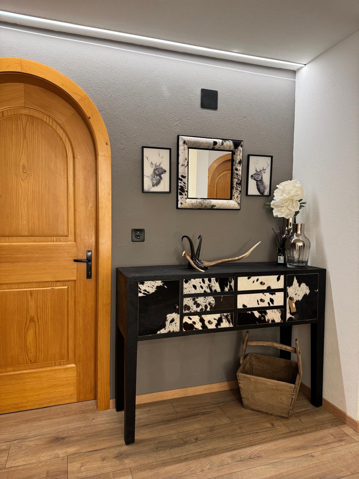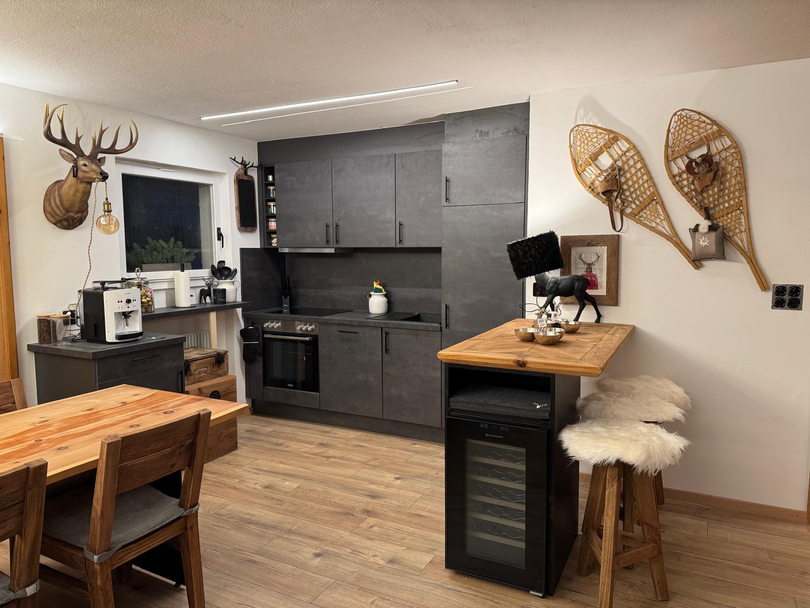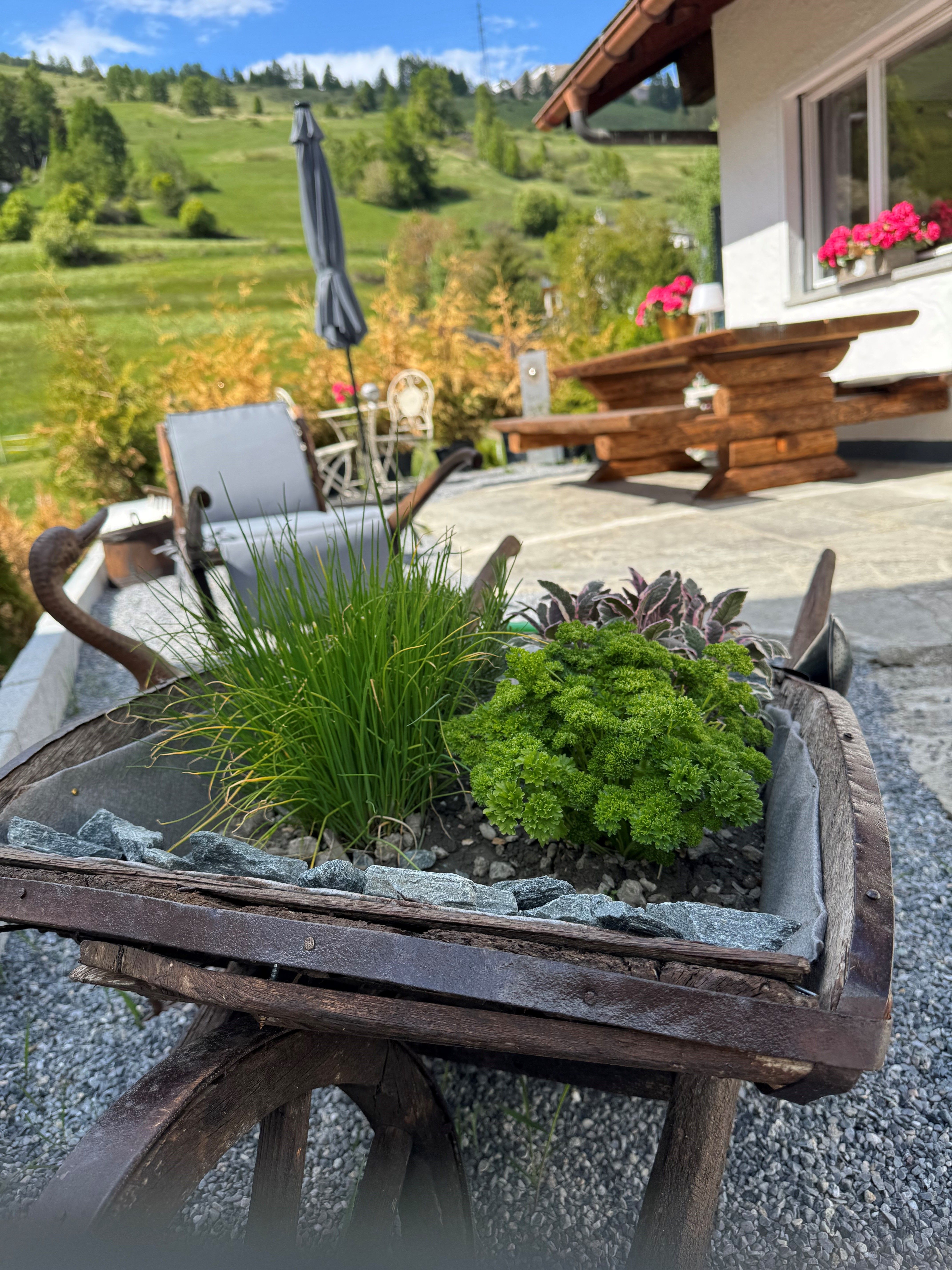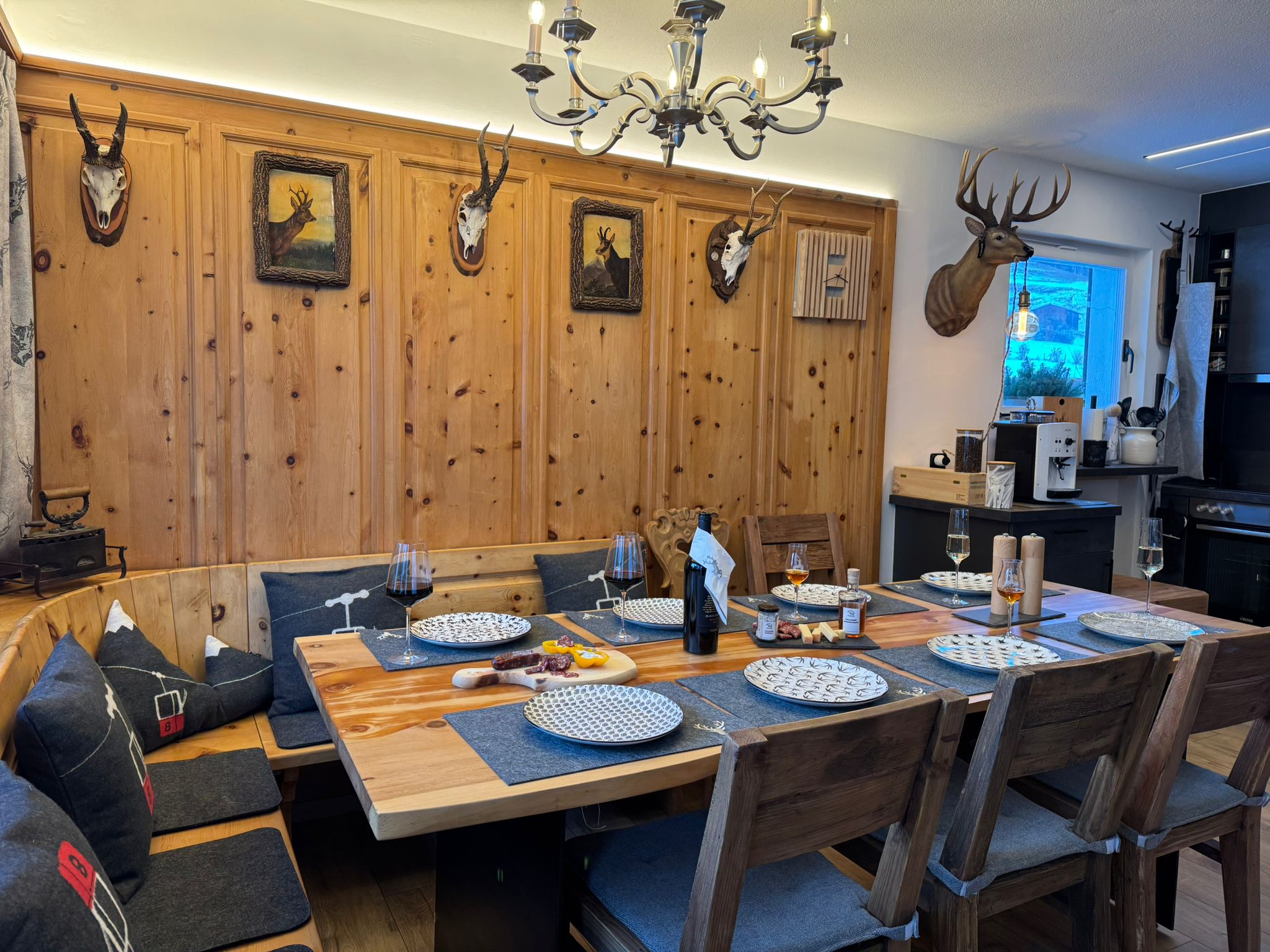 Charmantes, freistehendes Ferienhaus im Alpenchic-Retro-Style direkt an der Talabfahrt nach Scuol gelegen. Direkt an der Talabfahrt nach Scuol liegt unser charmantes, komplett neu renoviertes Berg-Bijou im einzigartigen Alpenchic-Retro-Style mit Platz für 8-10 Personen. Der kleine aber feine hauseigene Wellness-Bereich beschert unseren Gästen absolute Wohlfühlmomente. Jedes Zimmer hat seinen ganz eigenen Charme und bietet den Gästen den umwerfenden Blick auf das Skigebiet Motta Naluns und auf den Piz Lischana. Das Ferienhaus ist im Alpenchic-Retro-Style eigens durch die Eigentümerin Renate Benderer mit Liebe und Hingabe eingerichtet worden. Was früher modern war hat sie in unserem Bijou zum Modernen von heute gemacht. Alle Dekorationsgegenstände wie auch einige Möbel können Sie sogar direkt im Haus und im dazugehörigen Laden von Geweih-Royal kaufen. Der Wellnessbereich bietet eine finnische Sauna sowie einen Hotpot mit Whirlpool und Ruheliegen im Garten. Im UG finden Sie eine Infrarotkabine und den Ruheraum, welcher Entspannung pur garantiert. Das Haus hat 4 Aussenparkplätze (keine Garage). Für Mountainbiker und Skifahrer gibt es eine Ski- und Bike-Werkstatt/Keller. Auch Töfffahrer können ihre «Liebe» in der Garage einstellen.