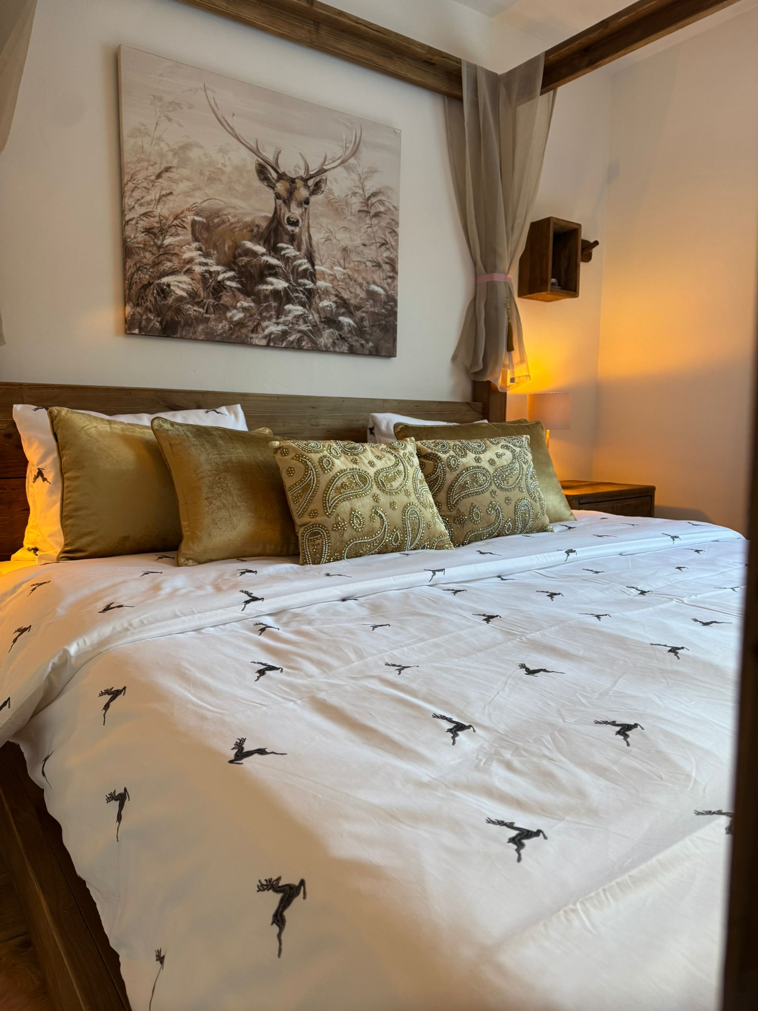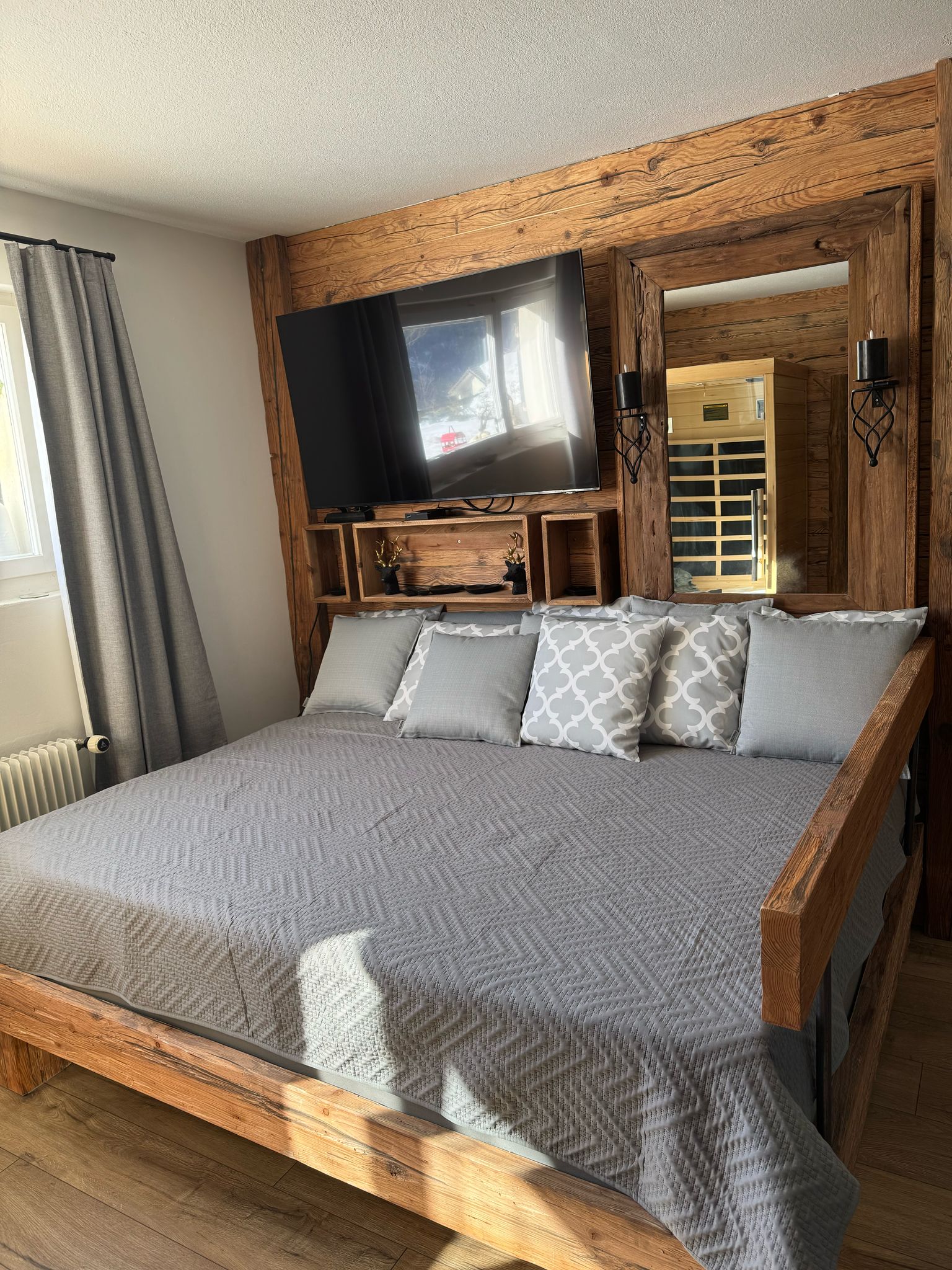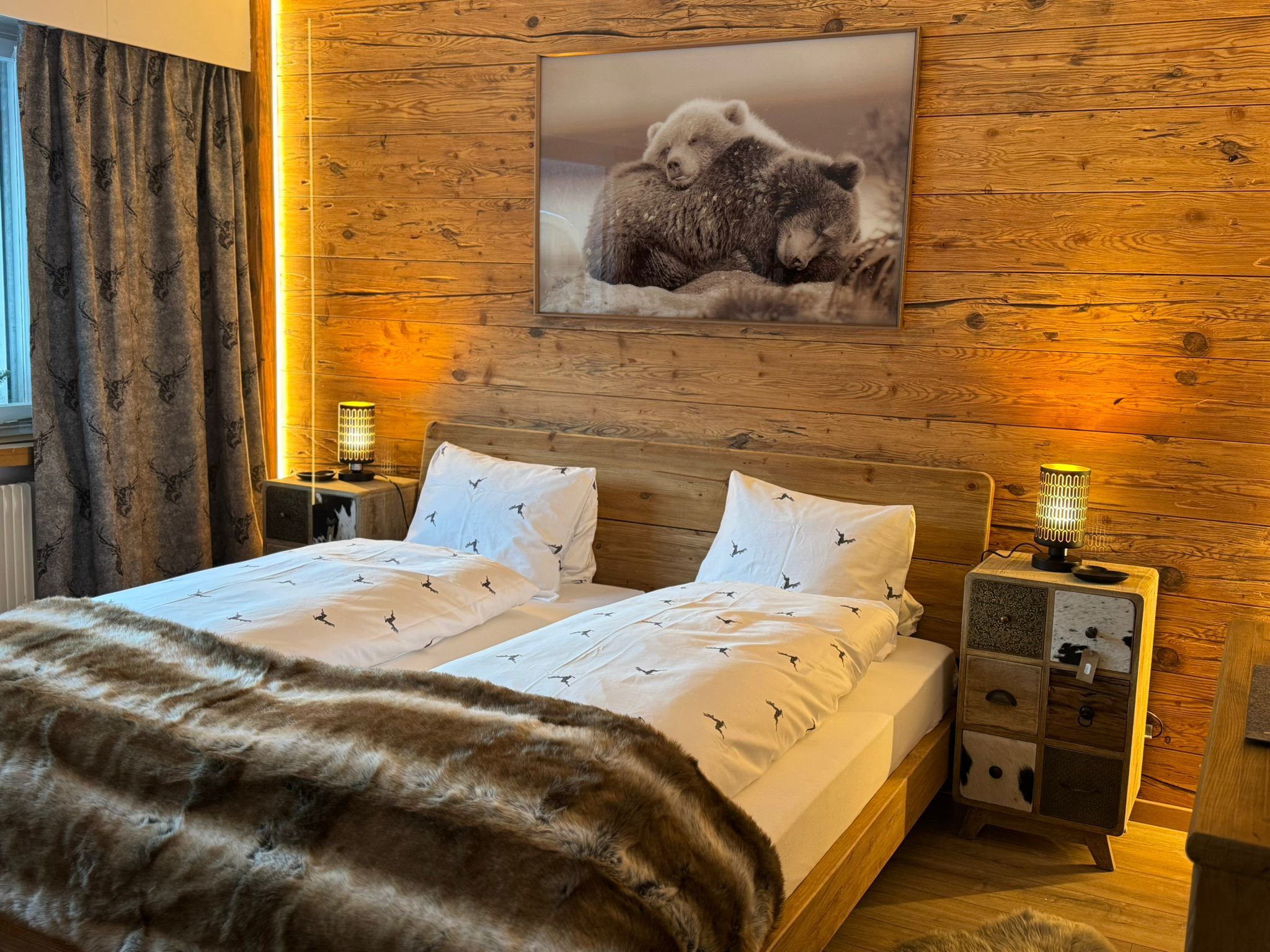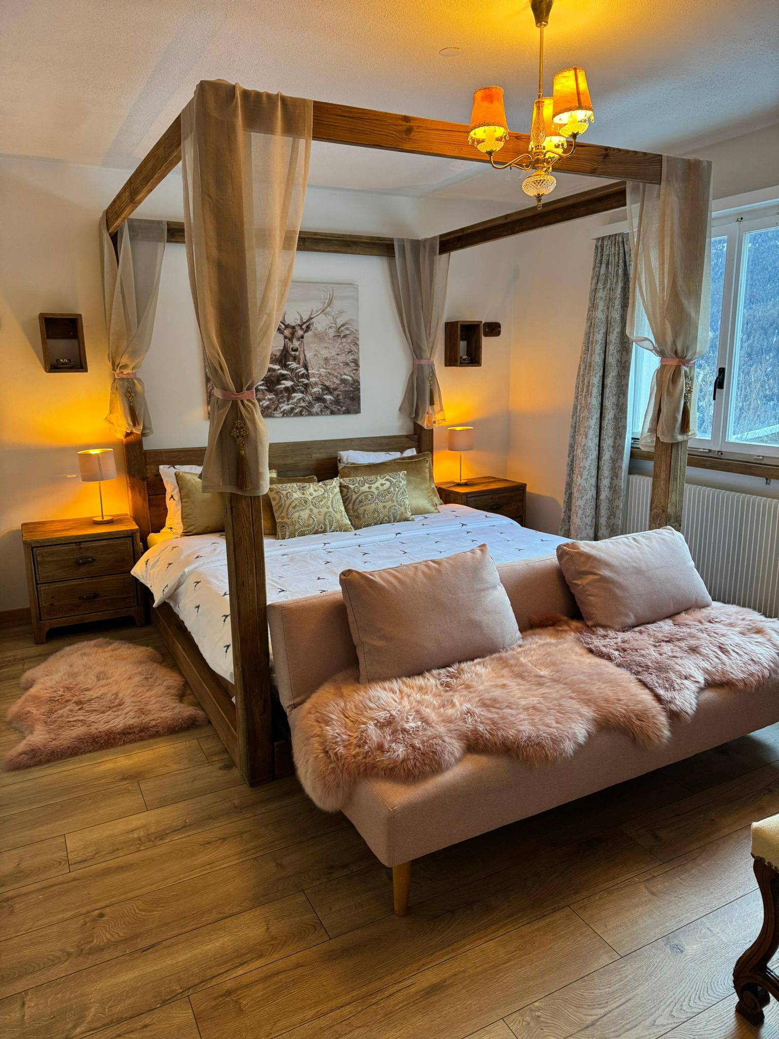 Das Berg-Bijou verfügt über 4 Schlafzimmer und jedes davon hat seinen eigenen Charme. Das Sissi-Zimmer, das Chalet-Zimmer, das Panorama-Zimmer und das Wellness-Zimmer. Im Haus gibt es einen eigenen Wellnessbereich im Inneren mit Infrarotkabine, Teebar und Ruheraum sowie im Gartenbereich mit finnischer Sauna, Whirlpool und Liegen.