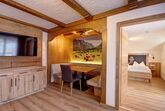 2 Schlafzimmer mit Doppelbett 180/200 cm, Taschenfederkernmatratze 7 Zonen mit 2 Härtegrade individuell wendbar, kleiner Flachbild-TV