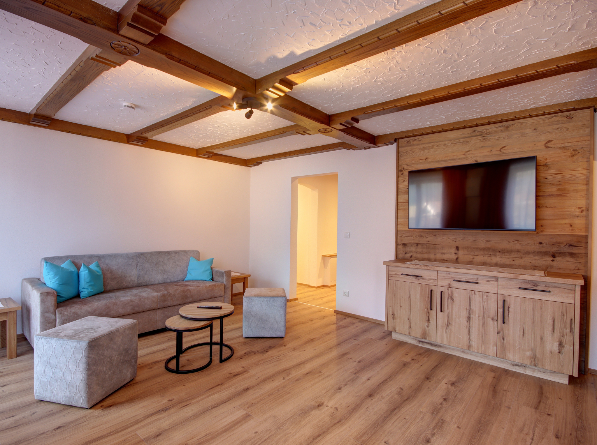 Wohnraum mit hochwertiger Schlafcouch XXXXXX cm, Flachbild-TV,