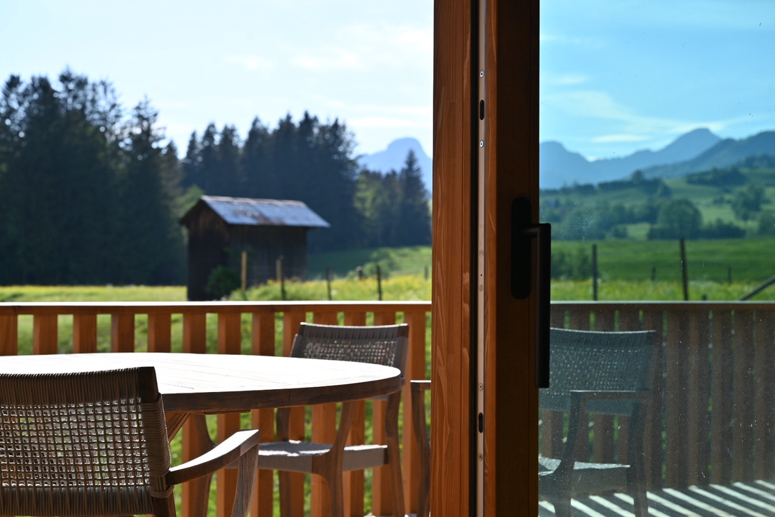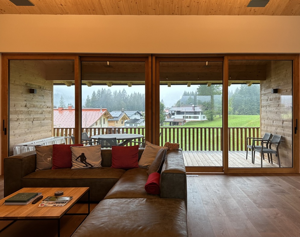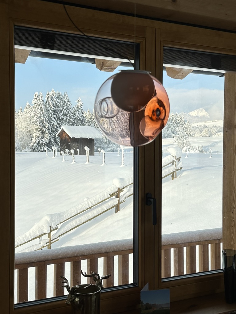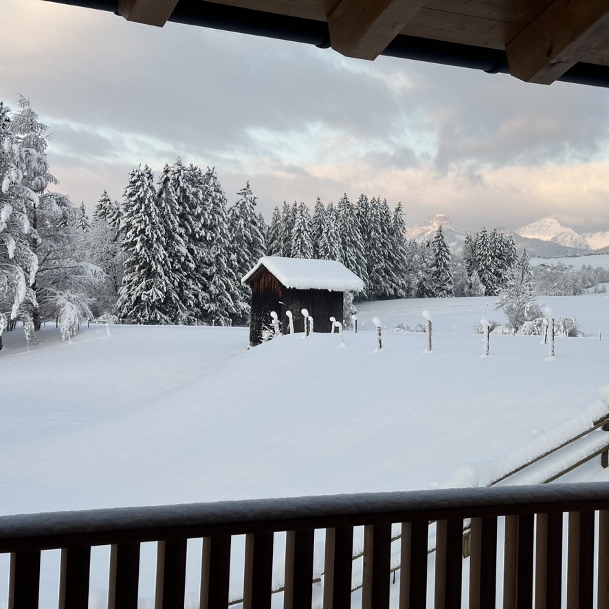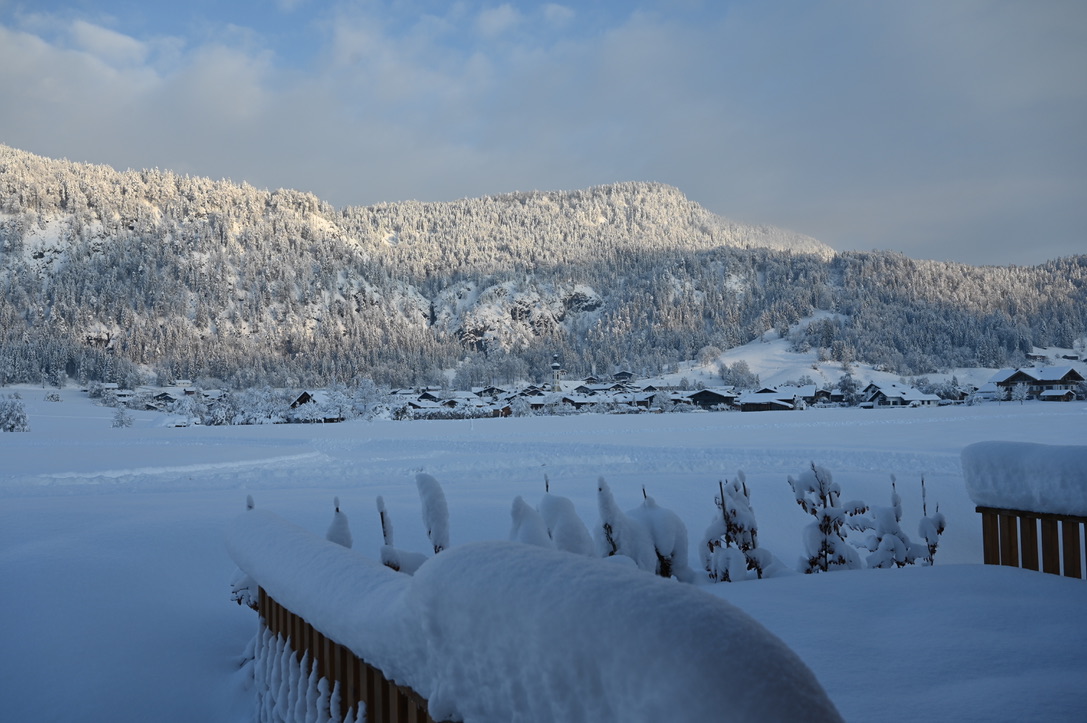 Die besondere Lage vis-a-vis des Ortes mit der Kirche im Mittelpunkt, nur getrennt durch eine Auenfläche mit Wiesengrün, schafft reizvolle Ausblicke in die Landschaft, insbesondere auf das Massiv des Zahmen Kaisers, den Unterberg oder auf den Golfplatz von Reit im Winkl/Kössen. Österreich ist zum Greifen nahe. Der Ausblick in die Natur ist zu jeder Jahreszeit ein besonderes Erlebnis. Das Erwachen der Natur im Frühjahr mit den letzten Schneefeldern auf den Bergen, der Morgentau über den Feldern und Wäldern, das Erleben der sommerlichen Wärme mit saftigem Grün der Blumenwiesen, der goldene Herbst mit grasenden Kühen jenseits des Gartens oder die direkt am Haus vorbeiführende Langlaufloipe laden zu jeder Jahreszeit zum Verweilen in der Natur ein. Hinter dem Haus verläuft unmittelbar die Loipe der Ortsrunde, die Langlaufski können noch auf dem Grundstück angeschnallt werden. Viele Wandermöglichkeiten starten unmittelbar vor der Haustür und führen über Wiesen und durch Wälder vorbei am nah gelegenen Gewässer der Lofer mit seinem klarem Gebirgswasser. Der nächste Ski- und Rodelhang ist fußläufig in wenigen Minuten erreichbar. Auch die reizvolle Laufstrecke als Dorfrunde entlang der Lofer, über Wiesen, Pfade und Wege zum Ortsteil Blindau und zum Ausgangspunkt zurück, führen am Haus vorbei.