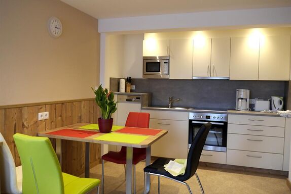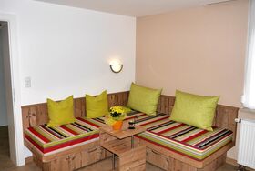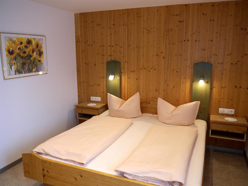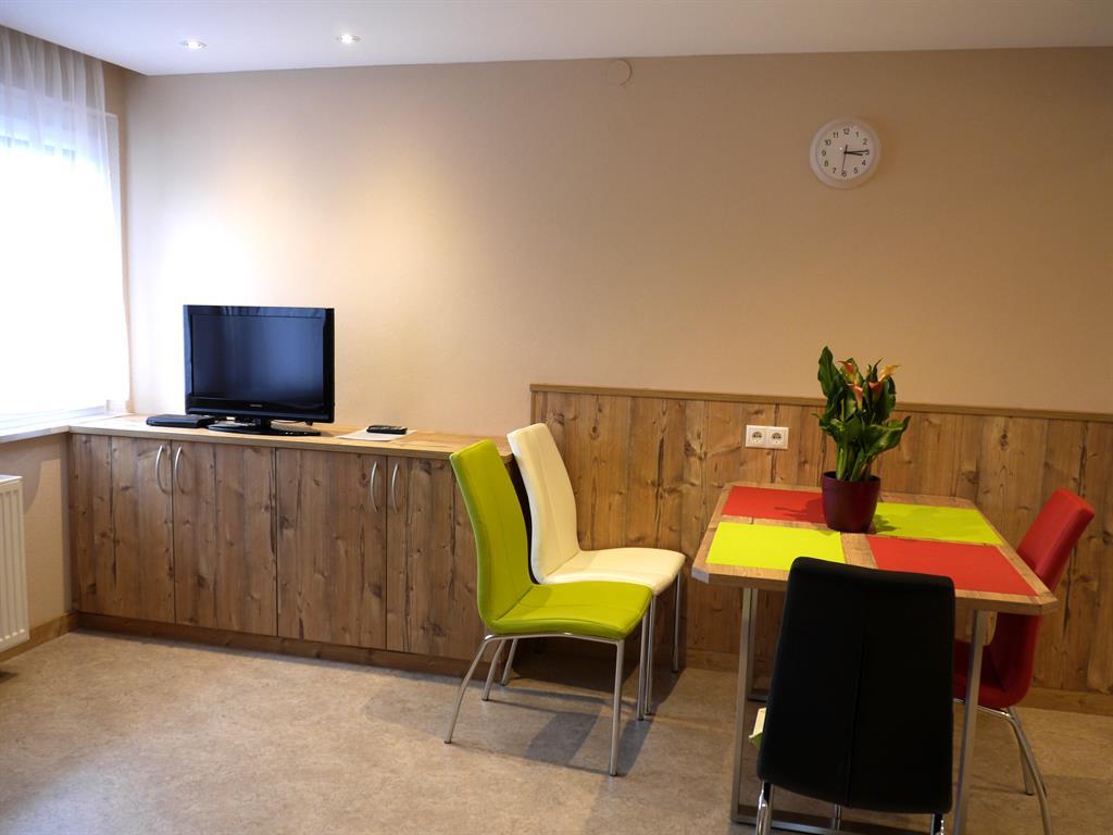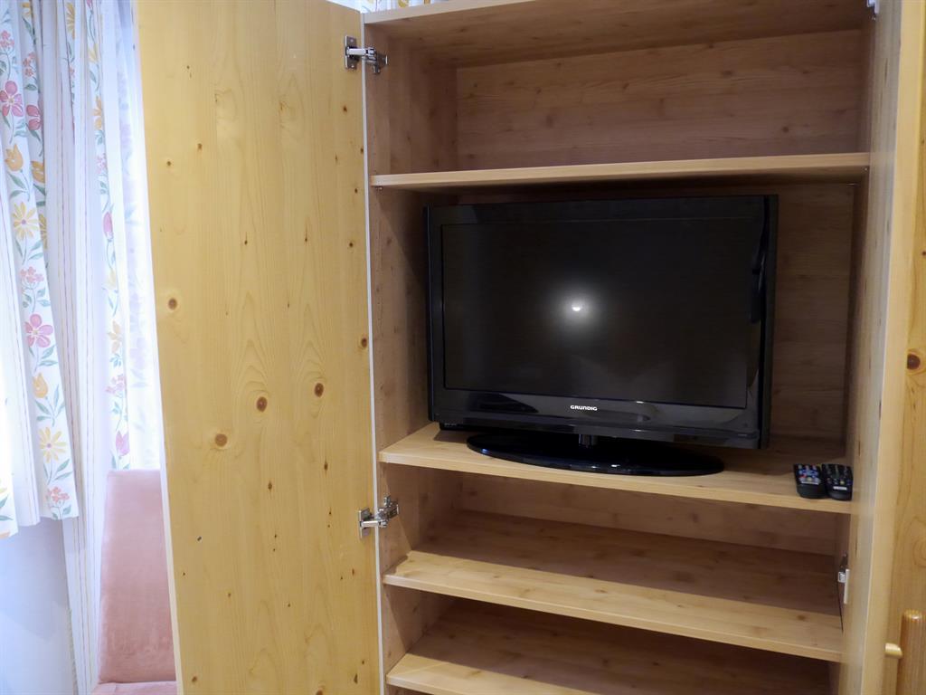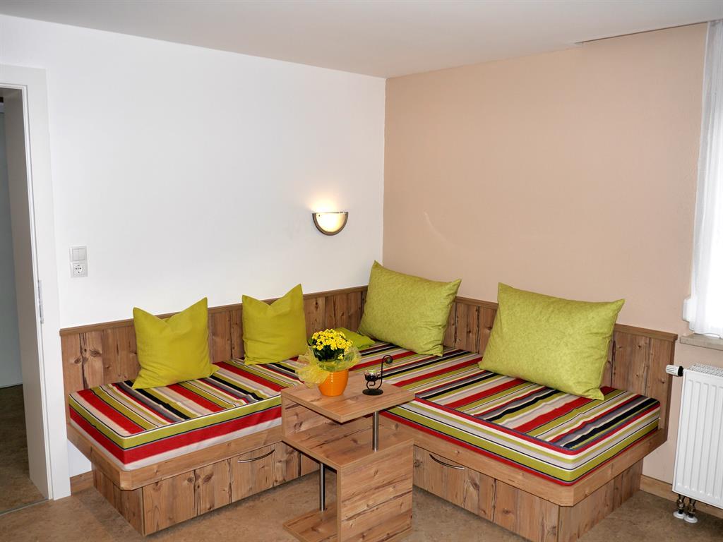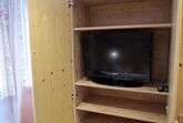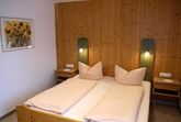 Nichtraucherwohnung für zwei bis drei Personen im 1. Stock (Schlafzimmer mit SAT-TV, Wohnraum mit SAT-TV und Einzelbett, Kinderliege, Küchenzeile (Vierplattenherd mit Geschirrspüler und Backrohr, Südostbalkon. Dusche getrennt, WC getrennt. Südostbalkon. Überdachter Autoabstellplatz nach Verfügbarkeit.