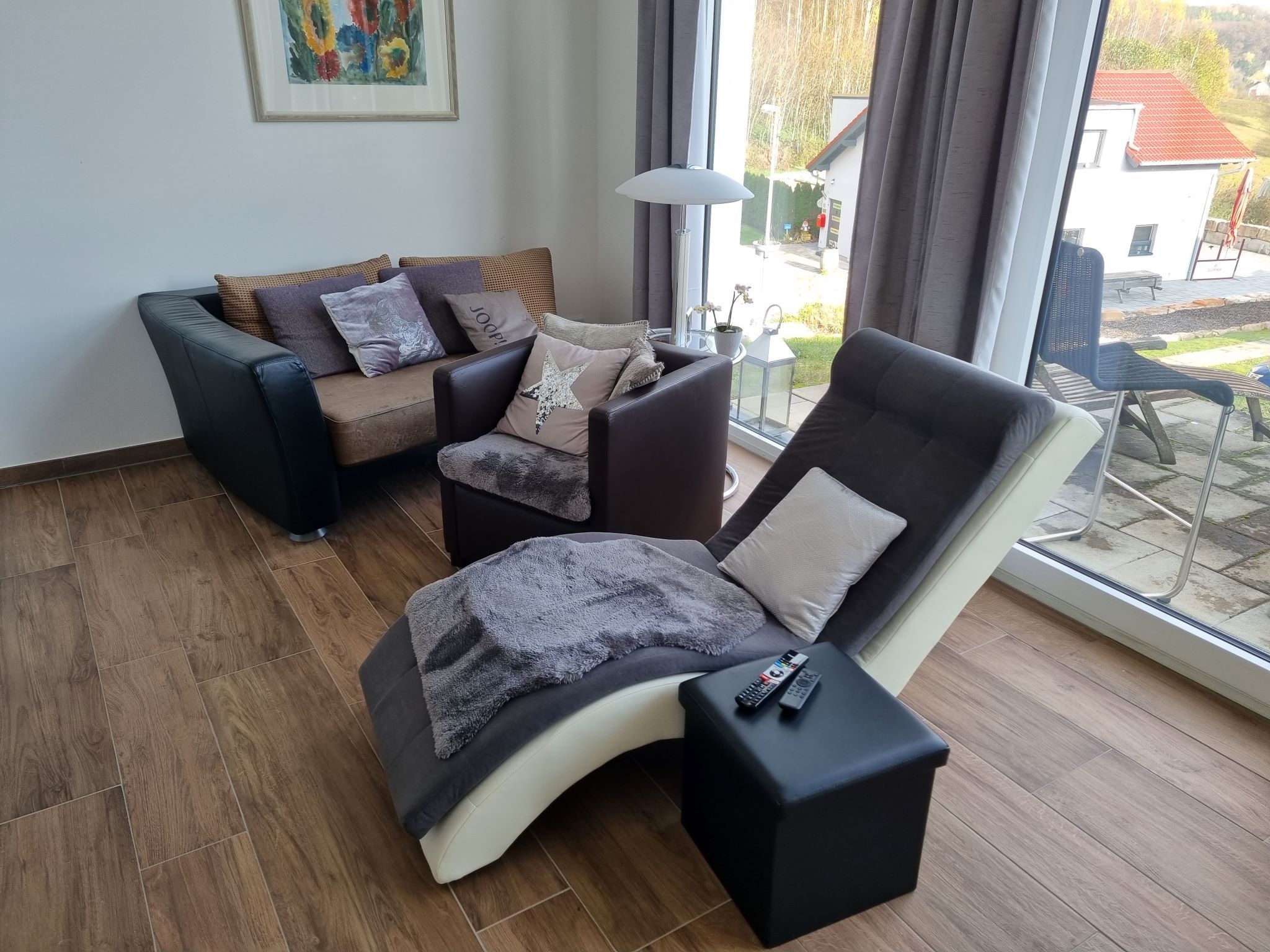 Großzügige Terrasse und Parkplatz direkt vor dem Haus.