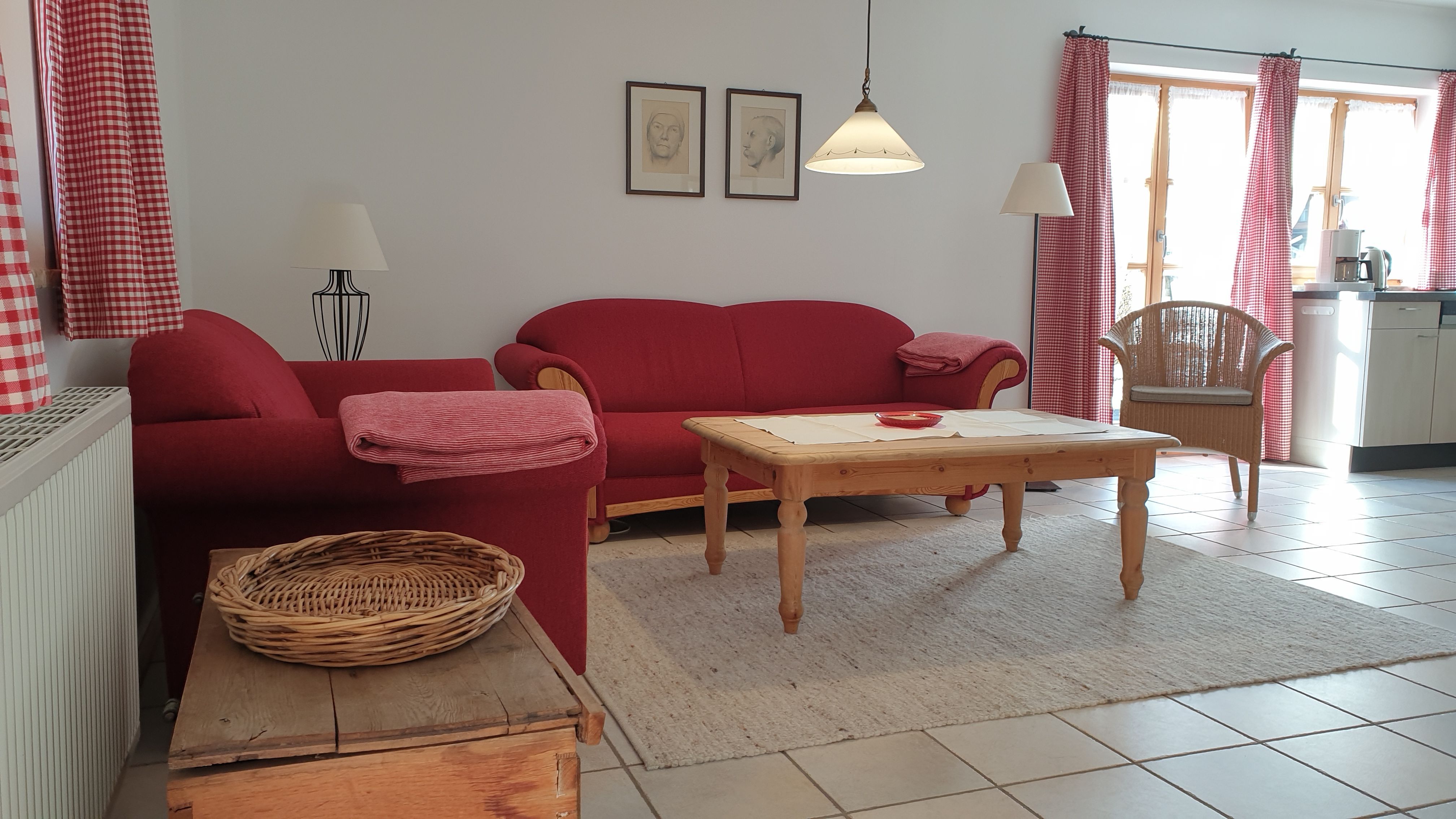 2 getrennte Schlafräume mit Holzböden, Betten bezogenGeräumiger Wohnraum, Fliesenboden mit Fußbodenheizung