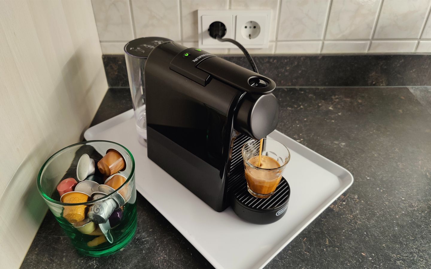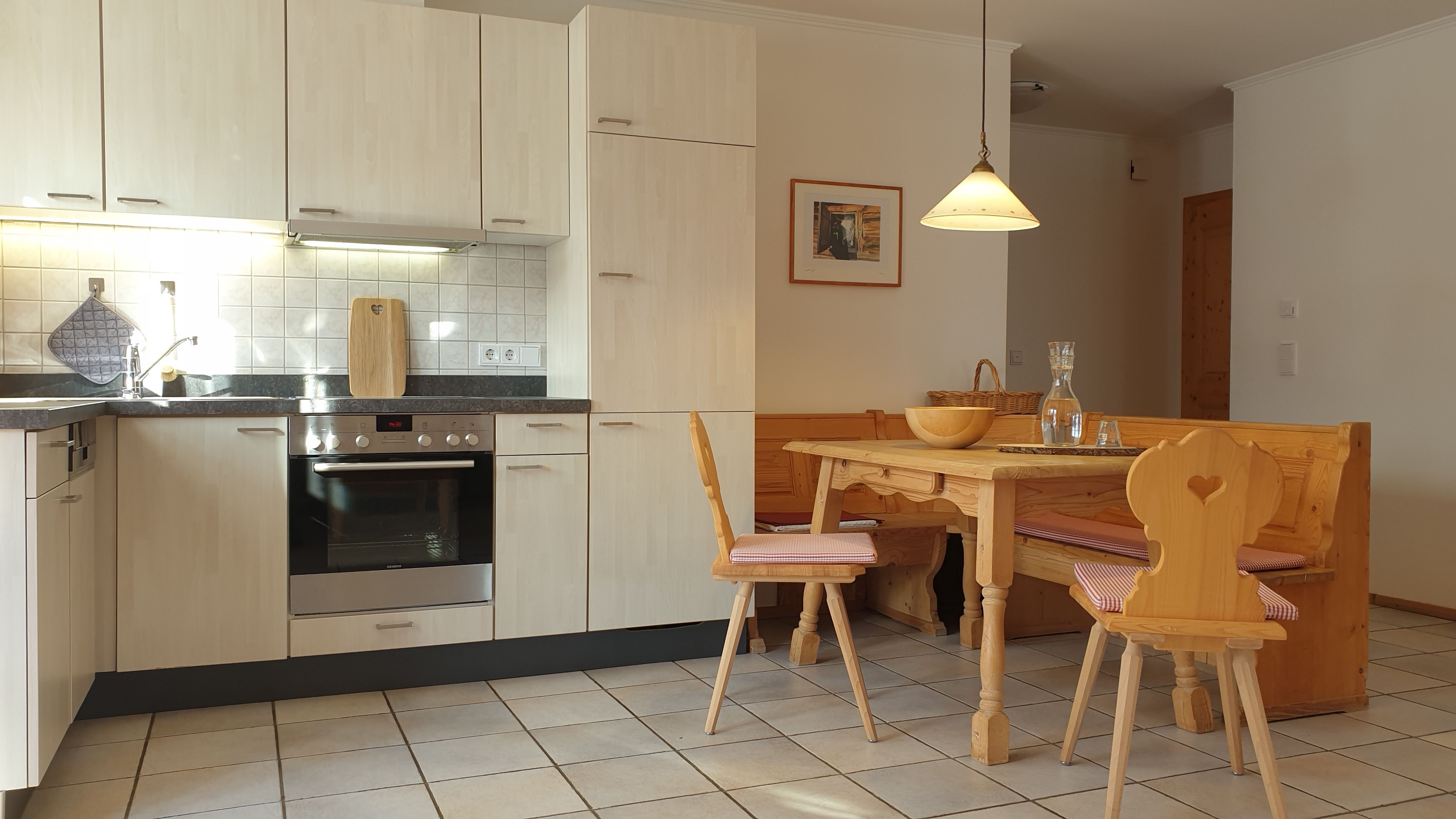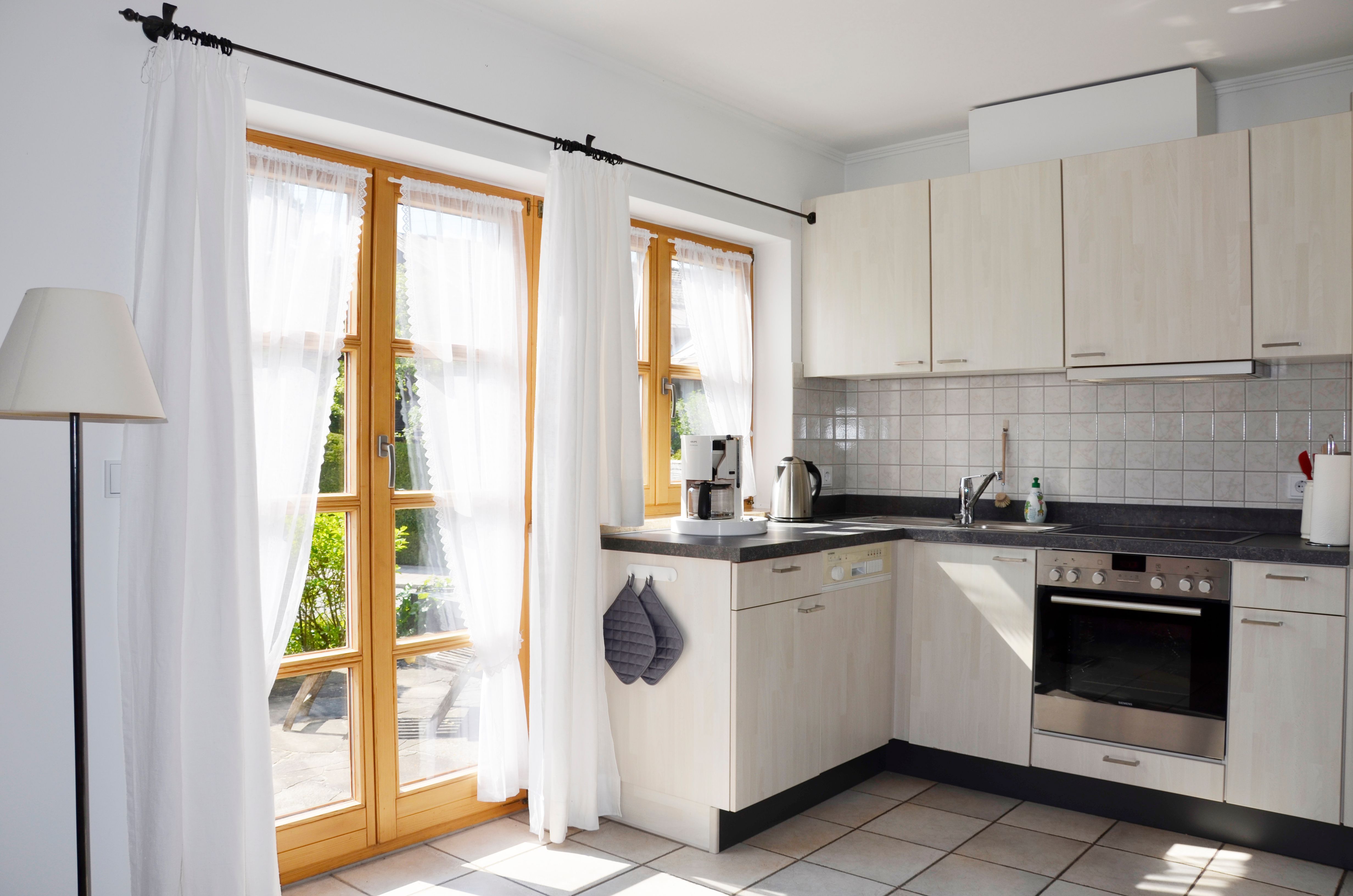 Ceranfeld, Kühlschrank, Gefrierfach, Kaffeemaschine, Nespresso-Maschine, Wasserkocher, Geschirrtücher und Putzmittel vorhanden