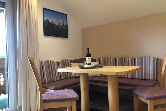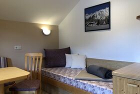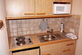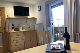 Im 2. Stock mit Südbalkon neben Wohnung Nummer 4 gelegen. Wohnraum mit Sitzecke, Einzelbett im Wohnraum, SAT-TV, abgetrennte Küche (Zweiplattenherd, Geschirrspüler, Mikrowelle, Kaffeemaschine, Toaster, Wasserwärmer, etc.), Schlafzimmer ruhig nach Norden, DU/WC. Keine Teppichböden. Überdachter Autoabstellplatz nach Verfügbarkeit.