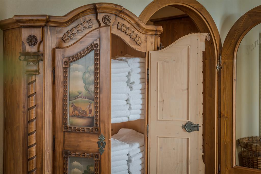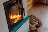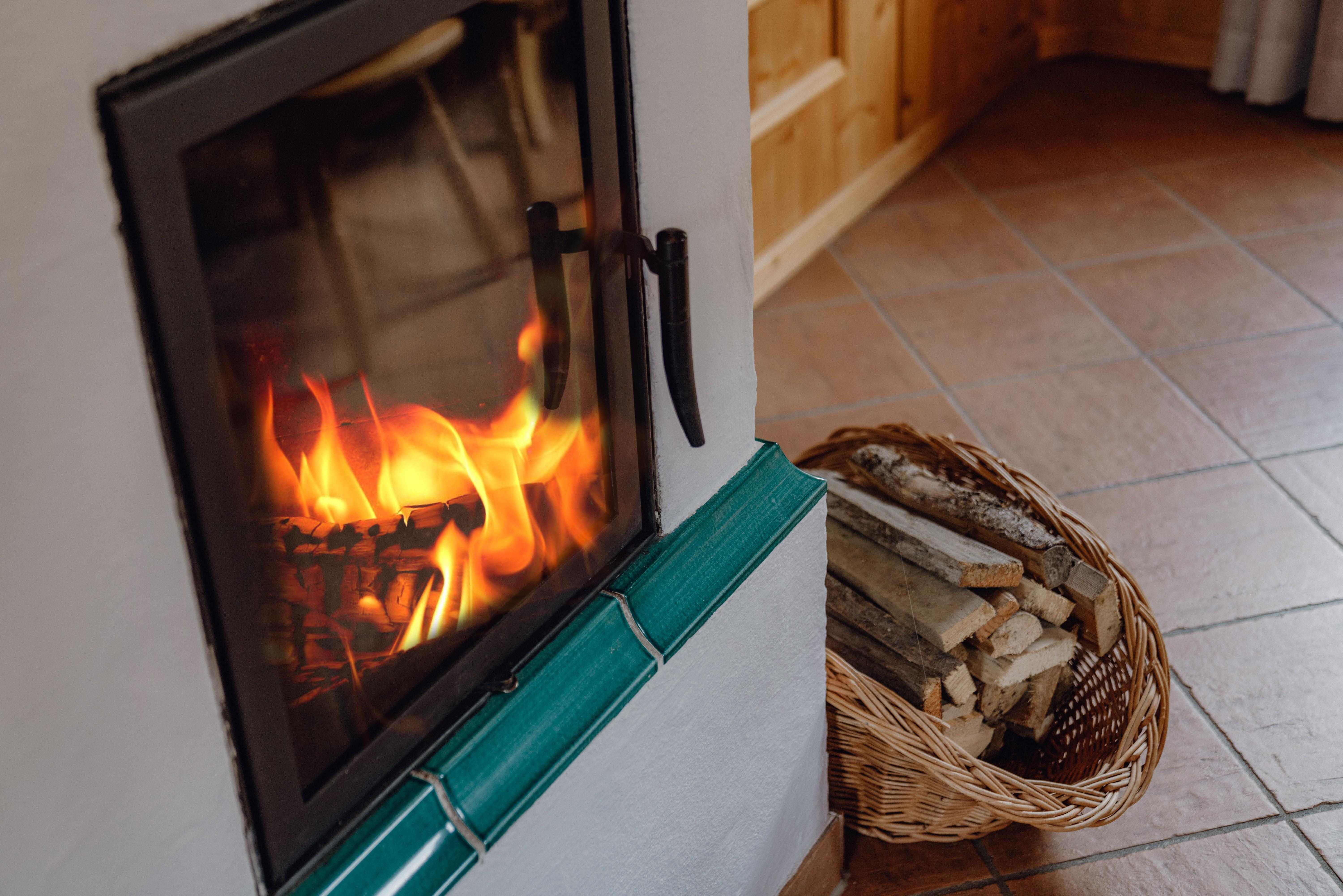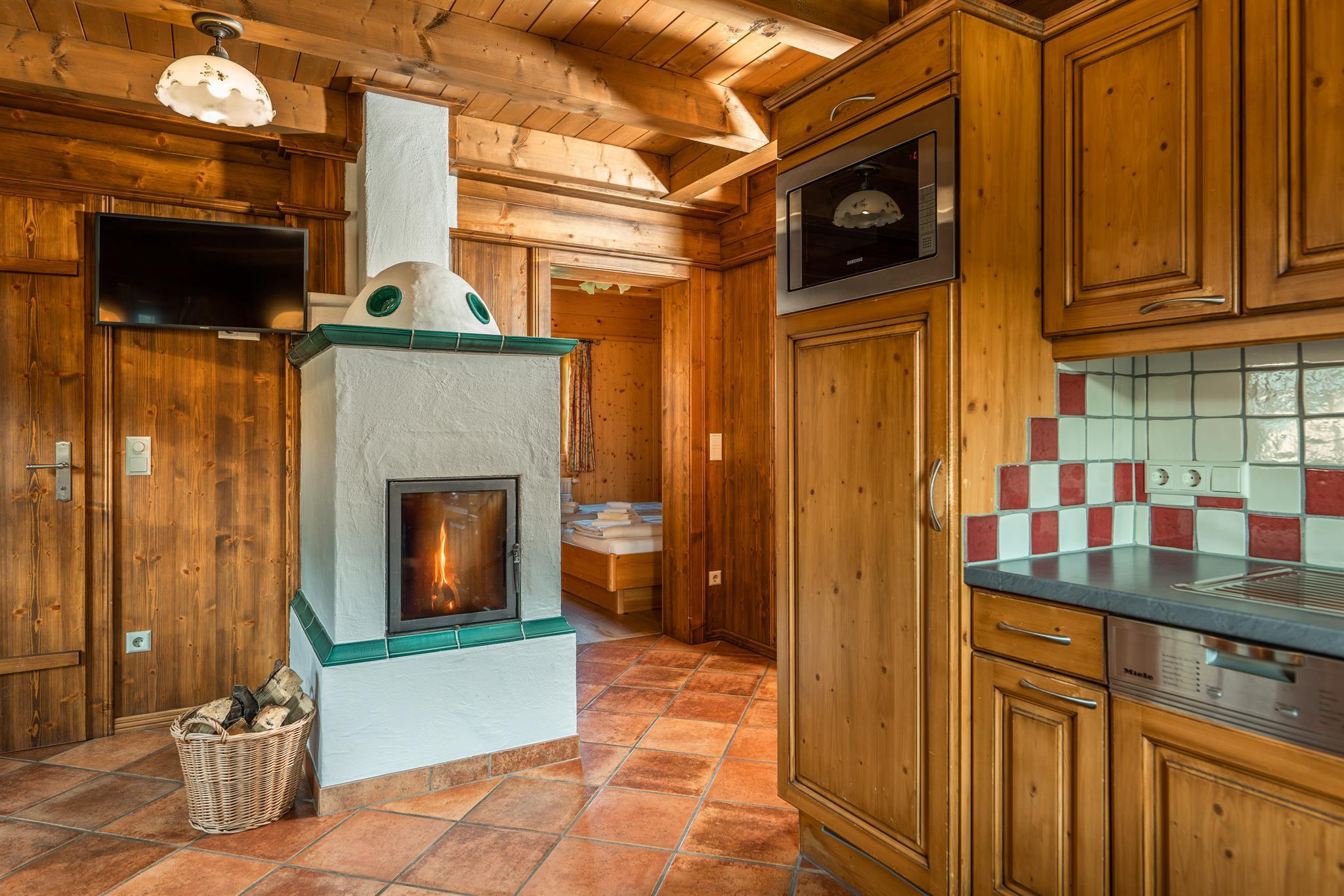 • Holz-Kachelofen, hochwertige Bauweise in natürlichem Holz aus dem eigenen Wald