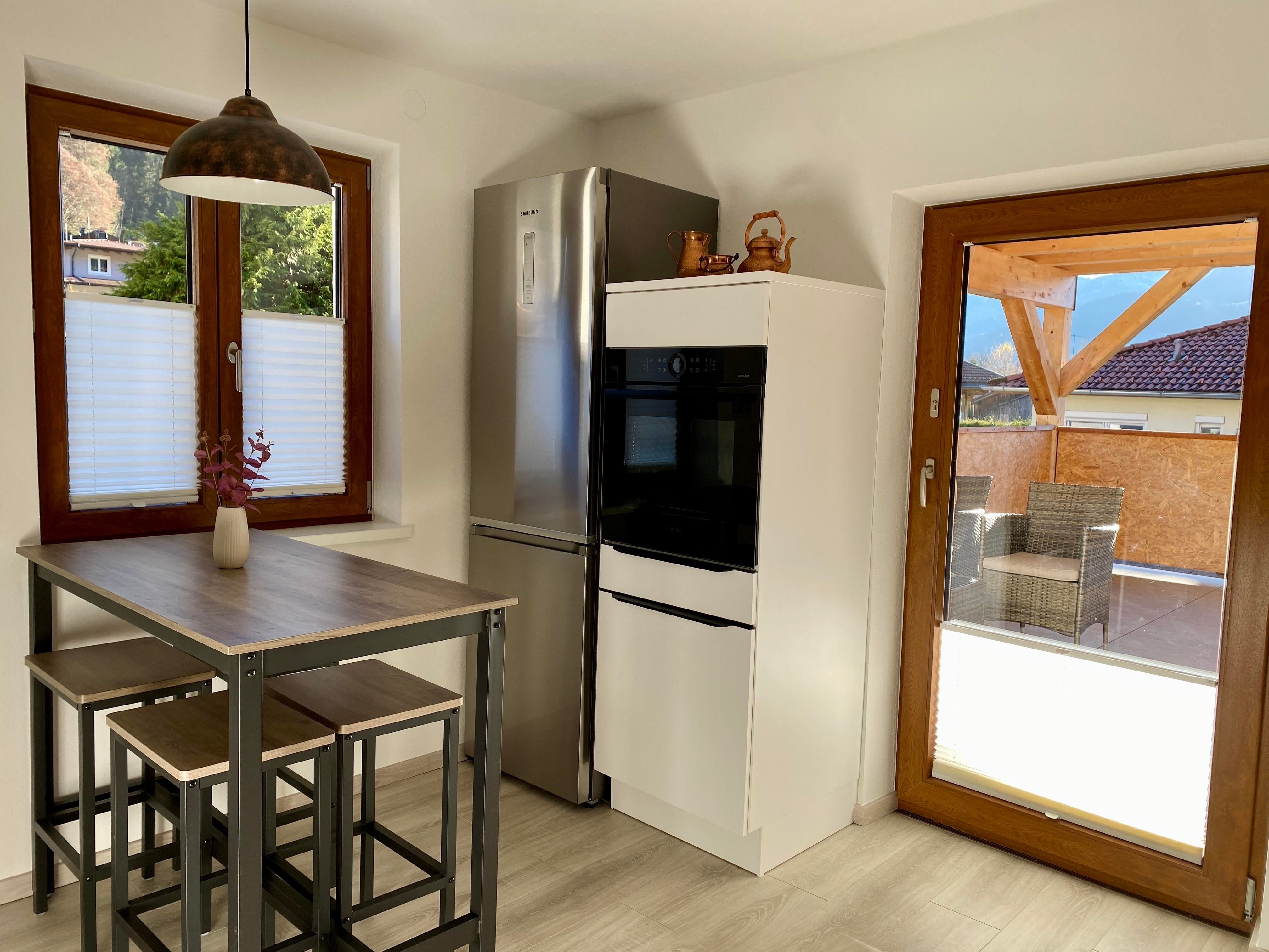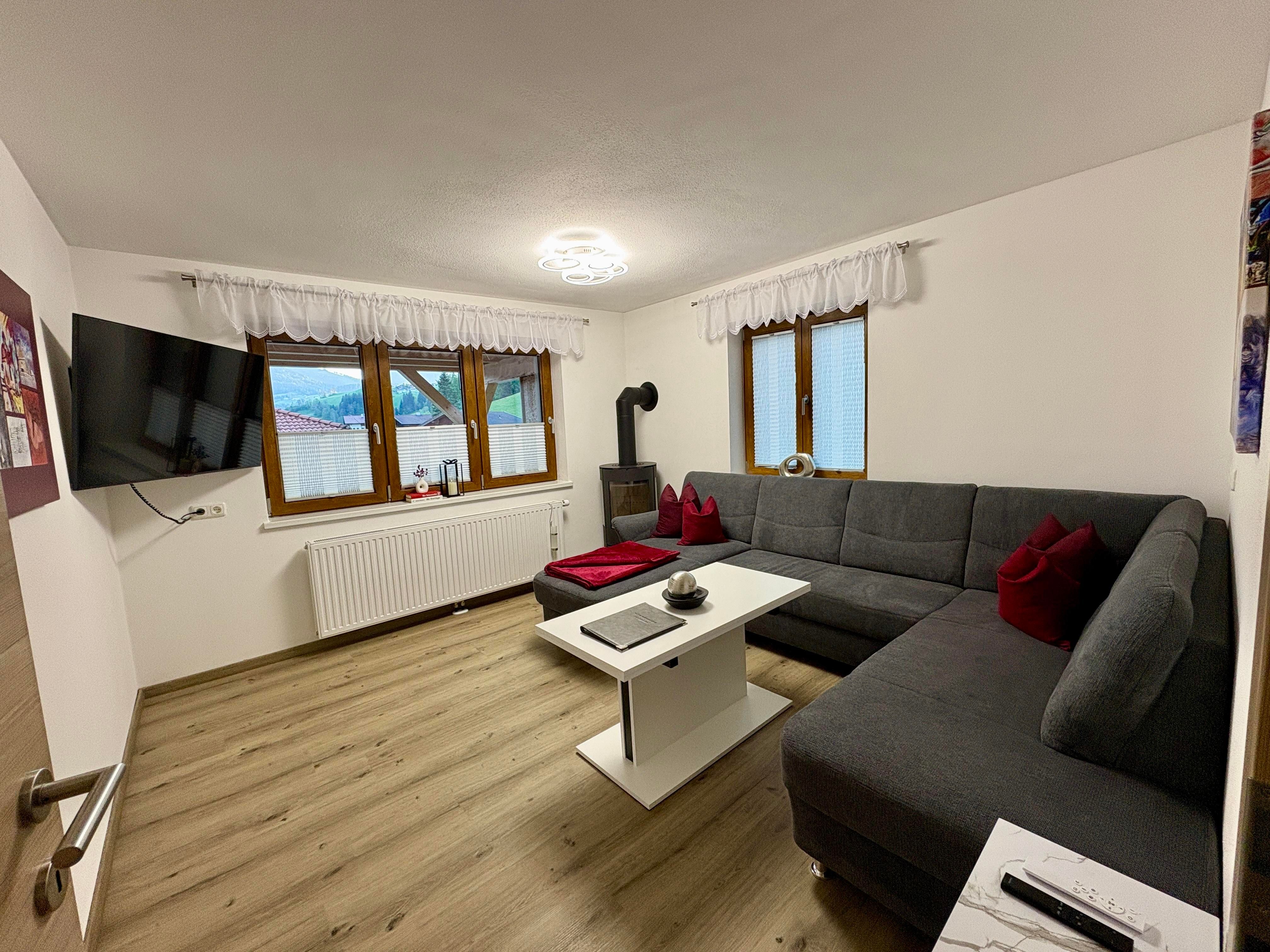 ca. 85 m² mit Fußbodenheizung, große Sonnenterrasse (30 m²) mit Grillmöglichkeit im Garten (Sommer), für 2 – 5 Personen, Schlafzimmer 1: Doppelzimmer mit Boxspringbett/Doppelbett und Smart-TV, Schlafzimmer 2: Boxspringbett und Einzelbett, Wohnzimmer: Smart-TV, schöne Sitzgruppe (evtl. als Schlafcouch), Bäder: 2 Bäder, Waschmaschine, WLAN, auf Anfrage: kostenloses Gitterbett, Kinderhochstuhl, Duschhocker und ausreichend Stauraum, Küche: komplett ausgestattet mit Induktionsherd, Geschirrspüler, Kühlschrank mit Gefrierfach, Backofen, Mikrowelle, Wasserkocher, Nespresso-Kaffeemaschine, Toaster, Mixer, alle Küchenutensilien und Geschirr, Parkplatz, Skiabstellraum, Fahrradabstellplatz.