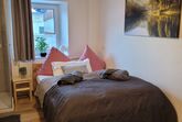 Diese ca. 110m² große Fewo im EG verfügt über einen eigenen Eingang, 2x Doppelzimmer und 1 Dreibettzimmer zzgl. Kinderbett, 1 x Bad mit WC/DU und Badewanne. Desweiteren verfügt diese Wohnung über eine große & gemütliche Küche sowie einem kleinen Wohn- und Fernsehzimmer.