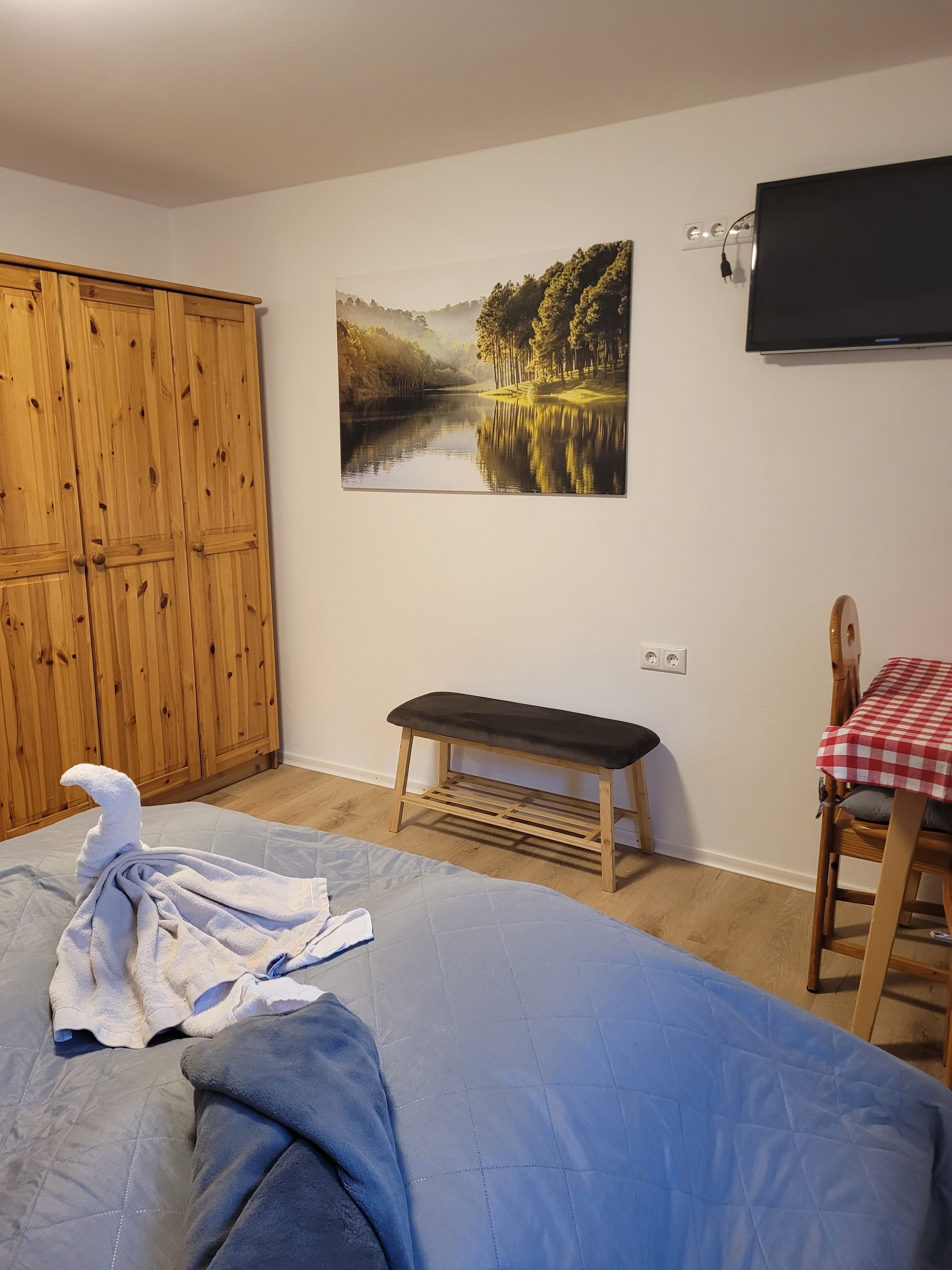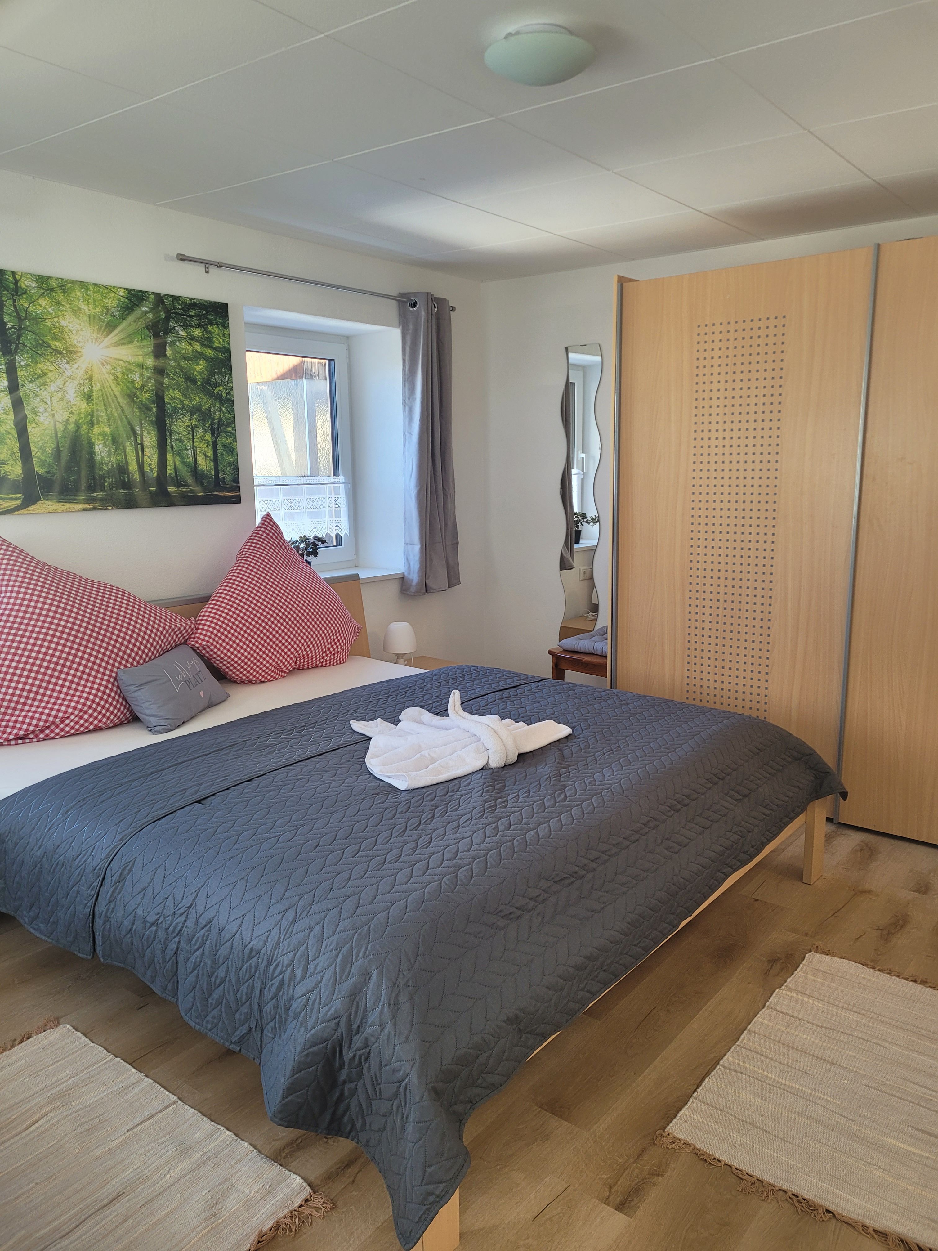 Die neue Ferienwohnung ist für 4 bis 9 Personen geeignet und besteht aus 3 Schlafzimmern, sowie einer komplett ausgestatteten Wohnküche mit Esstisch und Schlafcouch. Gäste schätzen besonders die vollständige Barrierefreiheit der Ferienwohnung sowie eine eigene Dusche mit Waschbecken in jedem Zimmer.