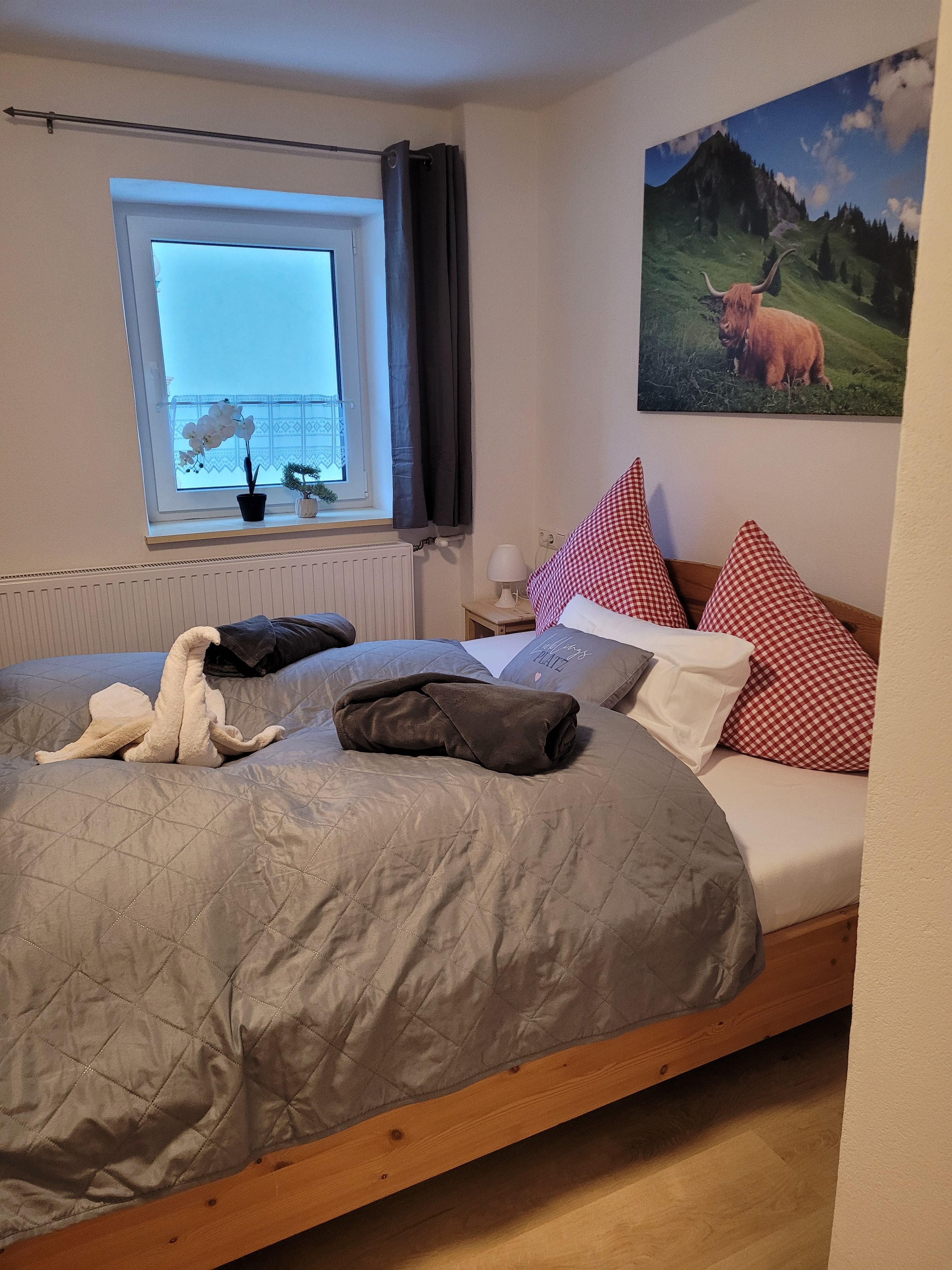 Die Ferienwohnung Alpenrose für 2 bis 8 (10) Personen besteht aus zwei Dreibettzimmern und einem Doppelzimmer. Sie verfügt über zwei Bäder mit Dusche/WC. (Handtücher, Fön und Bettwäsche werden gestellt.) Ebenfalls gehört eine komplett ausgestattete Wohnküche mit 25 m² (inkl. Geschirrspüler) mit Esstisch und Schlafcouch zur Ausstattung. SAT-TV und gratis WLAN stehen Ihnen ebenfalls frei zur Verfügung. Für Gäste mit Kleinkindern stellen wir, auf Wunsch, ebenfalls ein separates Babybett und ein Kinderhochstuhl bereit. PKW-Stellplätze sind ausreichend vor dem Haus vorhanden.
