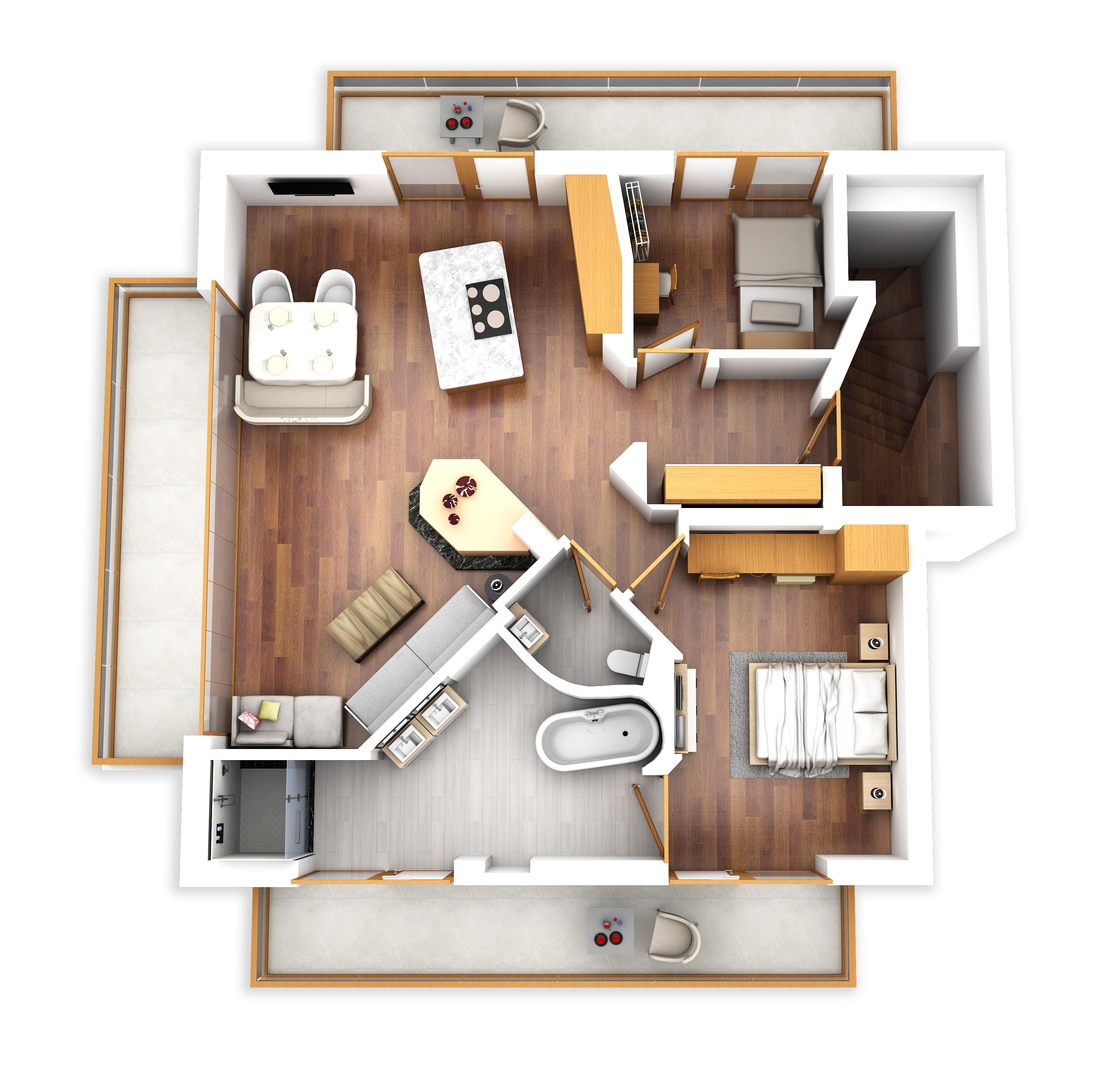 Cingularia – ZWEIZIMMER-PENTHOUSE-Wohnung mit herrlichem Ausblick von drei Balkonen und voll ausgestatteter Gourmet-Küche. Ideal für kleinere Familien mit bis zu vier Personen.