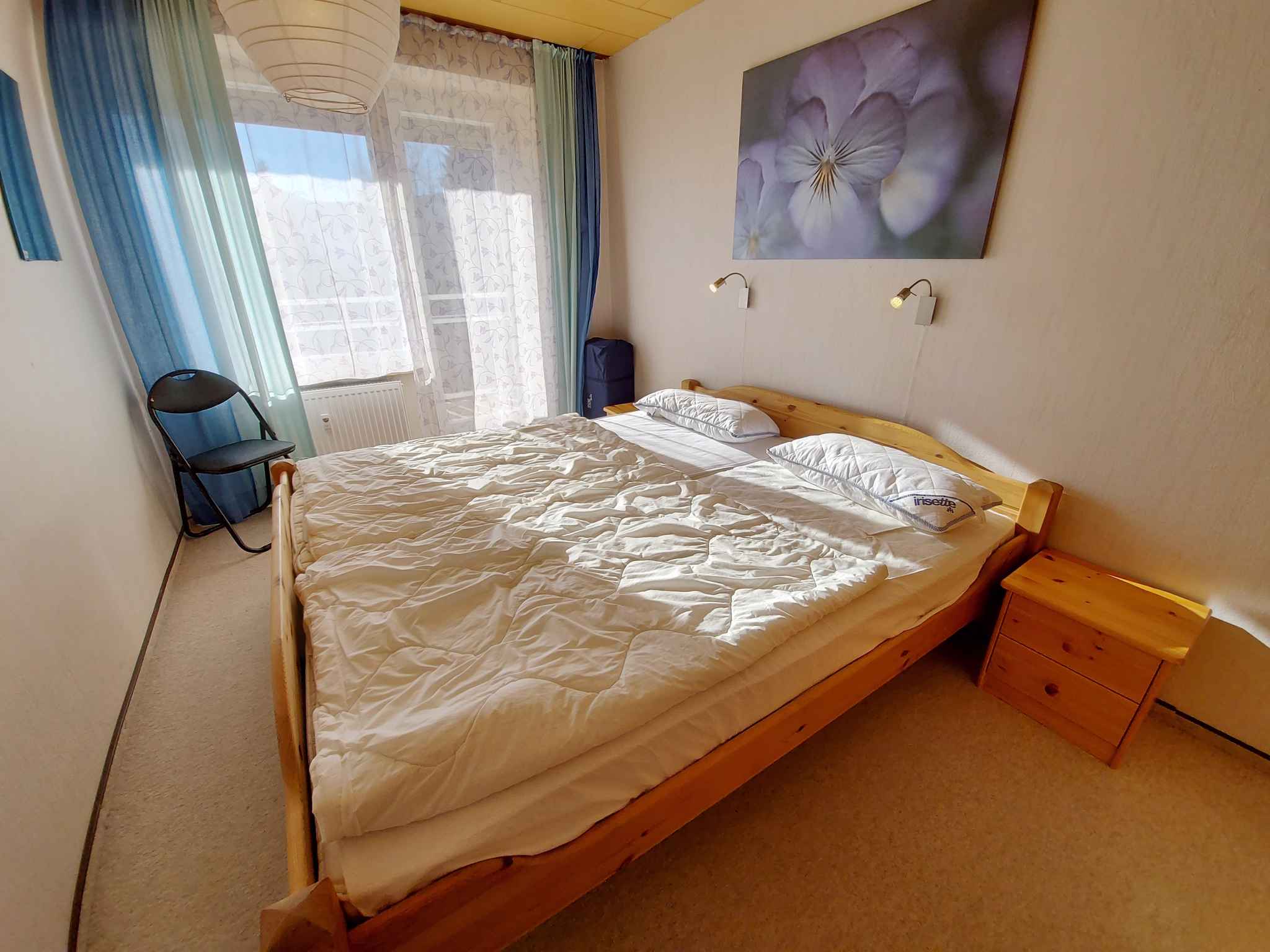 Ihre Ferienwohnung erstreckt sich über 1 Etage, 2 Zimmer (davon 1 Schlafzimmer), ist 60 qm groß und ist für maximal 5 Personen geeignet. An kälteren Tagen kann Ihre Ferienwohnung beheizt werden mit Zentralheizung (Gas). Das Rauchen ist in Innenräumen nicht gestattet. Der Eingang ist in der 2. Etage und überdacht und führt über 20 Stufen direkt in den Vorraum mit Garderobe und Türen zu allen Räumen. Die Zimmer teilen sich wie folgt auf: Wohnzimmer mit 2 Einzelbetten. Schlafzimmer 20 qm groß und mit 1 Doppelbett und 1 Einzelbett, TV, Radio, CD und Blickrichtung Süden. Sie haben Zugang zum Balkon mit Gartenmöbeln, 1 Tisch und 2 Stühlen. Küche 5 qm groß und mit Geschirrspüler, Elektroherd, Backofen, Dunstabzugshaube, Kühlschrank (Eisfach), Mikrowelle, Kaffeemaschine, Toaster, elektrischem Wasserkocher und Etagenbett für 2 Kinder in der Küche. Bad 3 qm groß und mit Badewanne mit Duscheinrichtung, 2 Waschbecken, WC und Föhn. Darüber hinaus ist Ihre Ferienwohnung mit WLAN- Internetzugang ausgestattet. TV- bzw. Rundfunksender können per Satellit empfangen werden.