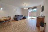 Ihre Ferienwohnung erstreckt sich über 1 Etage, 2 Zimmer (davon 1 Schlafzimmer), ist 57 qm groß und ist für maximal 4 Personen geeignet. An kälteren Tagen kann Ihre Ferienwohnung beheizt werden mit einer Elektroheizung, Zentralheizung und Fußbodenheizung. Das Rauchen ist in Innenräumen nicht gestattet. Der Eingang ist im Erdgeschoss, ebenerdig und rollstuhlgeeignet und führt direkt in den Vorraum mit Garderobe. Die Zimmer teilen sich wie folgt auf: Wohn/Schlafzimmer als Durchgangszimmer, 25 qm groß und mit 1 Zusatzbett auf Couch/Sofa, Sitzecke, Essecke, TV, Radio und CD. Die Essecke bietet Platz für 4 Personen. Sie haben Zugang zur überdachten Terrasse mit Gartenmöbeln, 1 Tisch, 2 Stühlen, 2 Sonnenliegen und Sonnenschirm. Schlafzimmer 20 qm groß und mit 1 Doppelbett. Sie haben Zugang zur überdachten Terrasse mit Gartenmöbeln, 1 Tisch, 2 Stühlen, 2 Sonnenliegen und Sonnenschirm. Kochecke im Wohn/Schlafzimmer als Durchgangszimmer, 5 qm groß und mit Essecke, Geschirrspüler, Elektroherd (Cerankochfeld, 4 Platten), Backofen, Dunstabzugshaube, Kühlschrank, Kaffeemaschine, Toaster und elektrischem Wasserkocher. Die Essecke bietet Platz für 4 Personen. Abstellraum in der Wohnküche 3 qm groß, nicht beheizbar und mit Infrarotkabine für 2 Personen. Bad 5 qm groß und mit Dusche, 1 Waschbecken, Föhn, Waschmaschine und Wäschetrockner. Separates WC 3 qm groß und mit WC. Darüber hinaus ist Ihre Ferienwohnung mit WLAN- Internetzugang, Gitterbett, Waschmaschine und Wäschetrockner ausgestattet. TV- bzw. Rundfunksender können per Antenne, Kabel und Satellit empfangen werden.