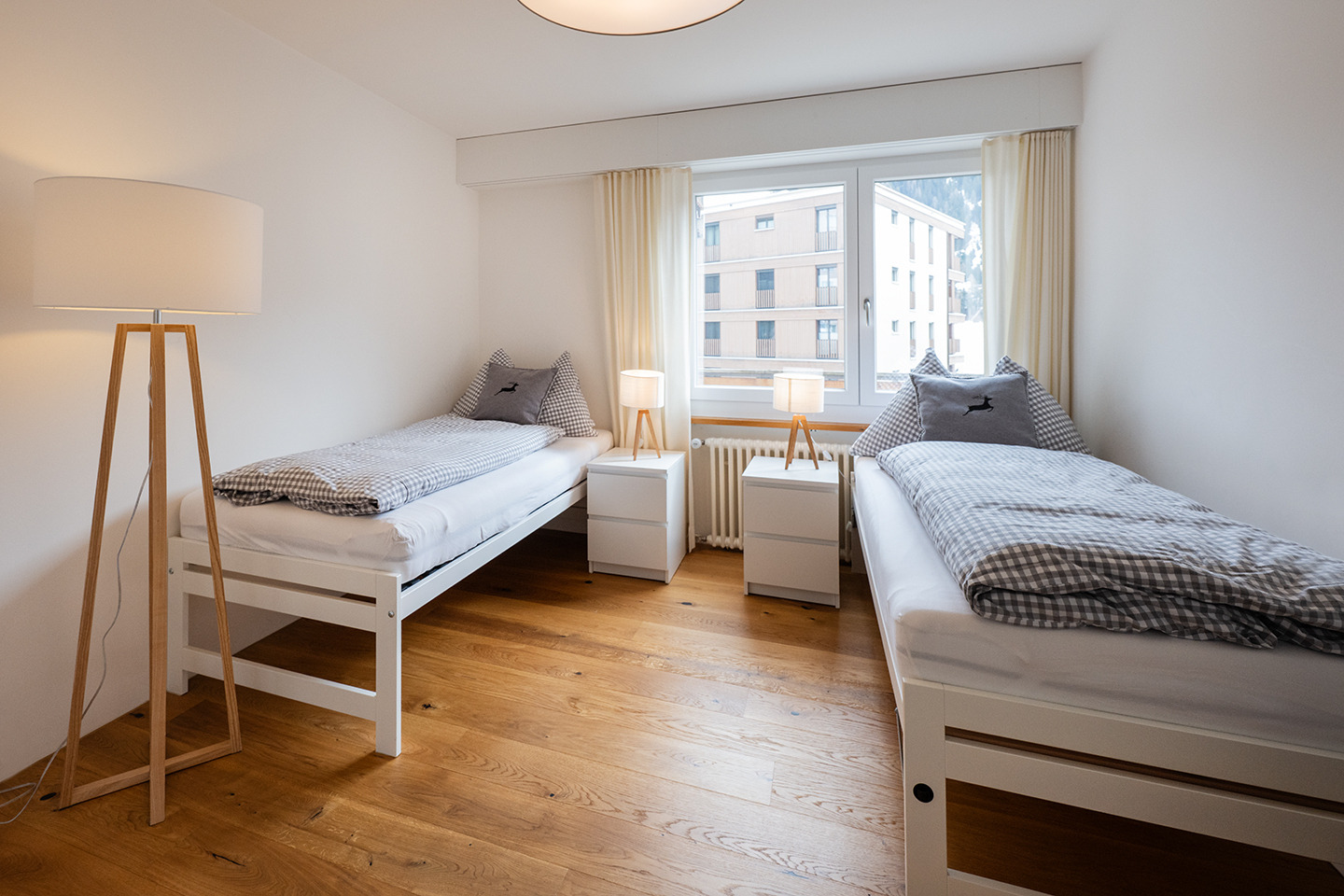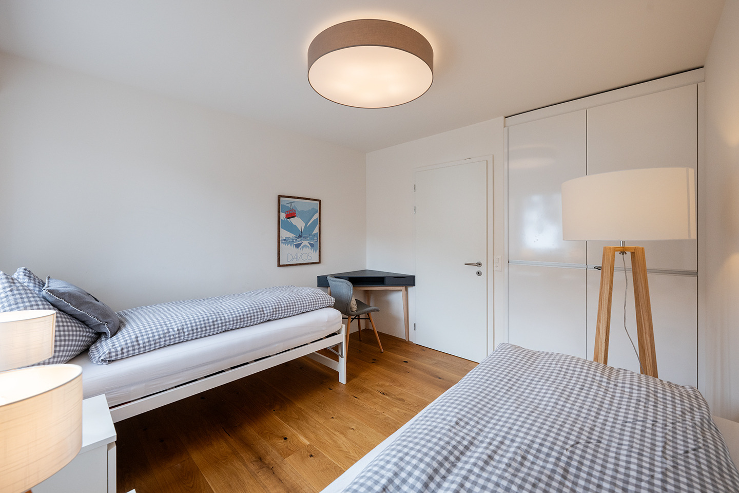 1 Schlafzimmer mit 2 Betten (90x200), Dusche/WC.