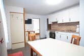 Die Küche: Kühl/Gefrierschrank, Backofen, Geschirr/Besteck, Kochutensilien, Kaffeemaschine, Toaster und einen Wasserkocher. Im Keller gibt es Aufbewahrungsmöglichkeiten für Ski und Rad und hinter dem Haus Parkplätze für Motorrad oder Auto.