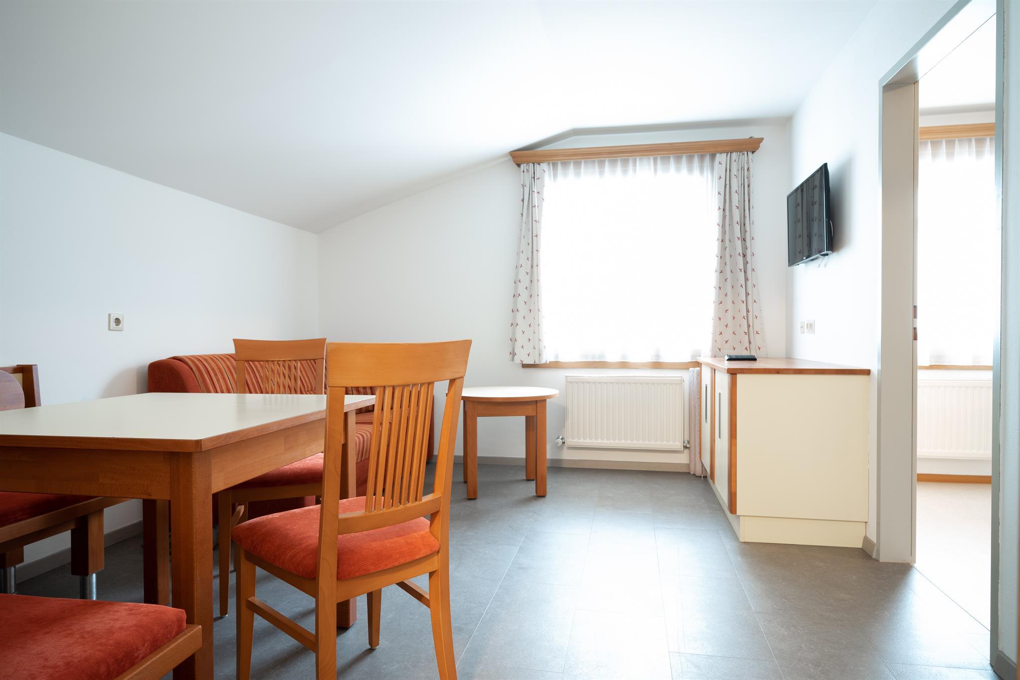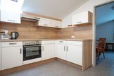 Der Wohnbereich verfügt über eine große Schlafcouch für zwei weitere Personen. Hell eingerichtet und mit seinen gemütliche Dachschrägen garantiert das Penthouse für einen entspannten Urlaub. Die Küche: Kühl/Gefrierschrank, Backofen, Geschirr/Besteck, Kochutensilien, Kaffeemaschine, Toaster und einen Wasserkocher. Im Keller gibt es Aufbewahrungsmöglichkeiten für Ski und Rad und hinter dem Haus Parkplätze für Motorrad oder Auto.