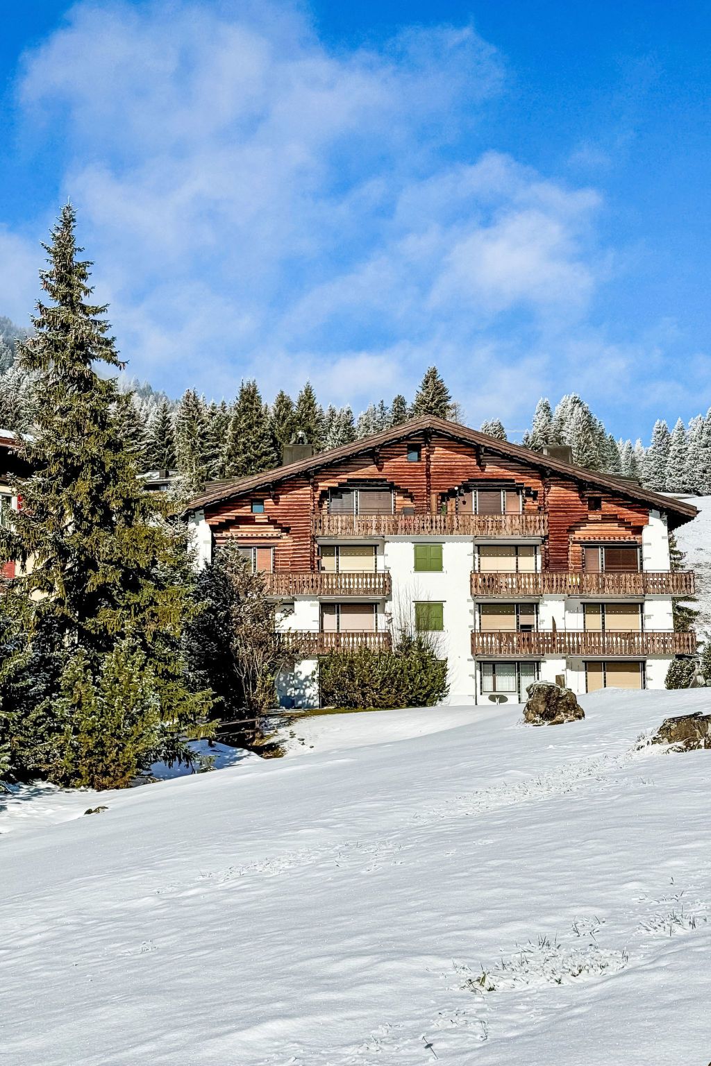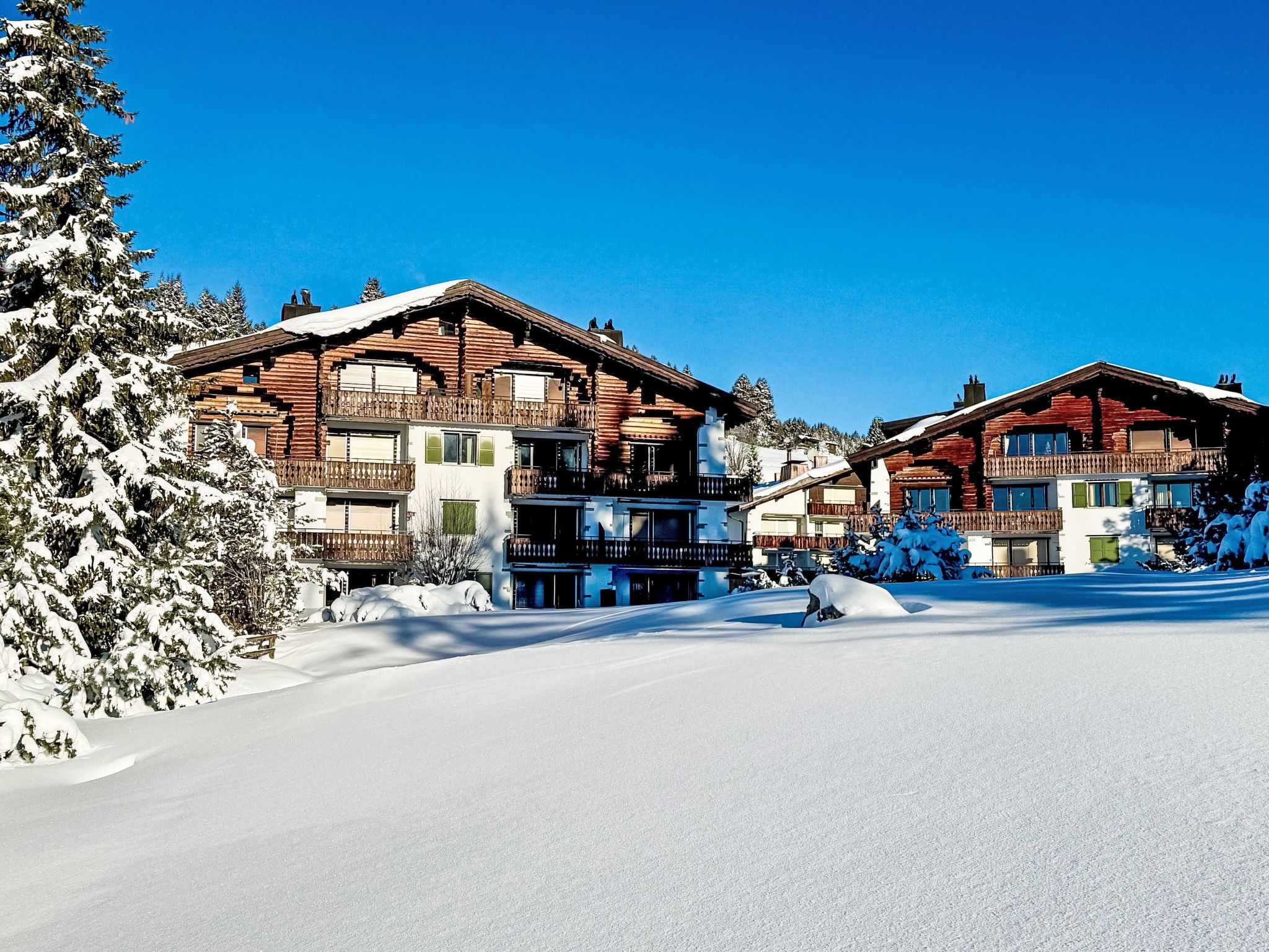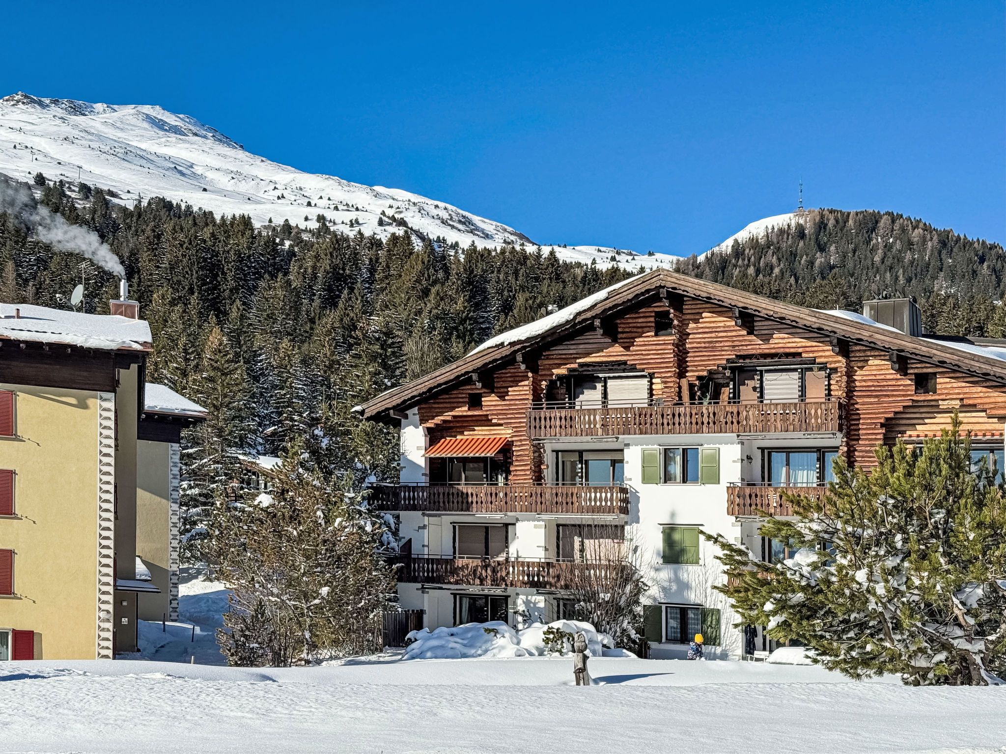Valbella 3 km von Lenzerheide: Gemütliches, komfortables Mehrfamilienhaus Chesa Gop, 1'500 m.ü.M., auf 4 Stockwerken, Baujahr 1980. Am Ortsrand, 700 m vom Zentrum, ruhige, sonnige Lage, 200 m vom See, 500 m vom Skigebiet. Im Hause: Skiraum, Zentralheizung. Zufahrt bis zum Haus. Im Winter 4x4 empfohlen. Gemeinschaftsgarage beim Haus. Supermarkt 700 m, Restaurant 120 m, Bushaltestelle Valbella, Seehof 90 m, Hallenbad 2 km, Badesee 1 km. Skilift 500 m, Skisportanlagen 1 km, Skipisten 500 m, Skiverleih 1 km, Skibushaltestelle 90 m, Skischule 1 km, Langlaufloipe 150 m. Bitte beachten: Bei guter Schneelage Zufahrt mit den Skiern bis zum Haus. Das Foto ist nur ein Wohnungsbeispiel.