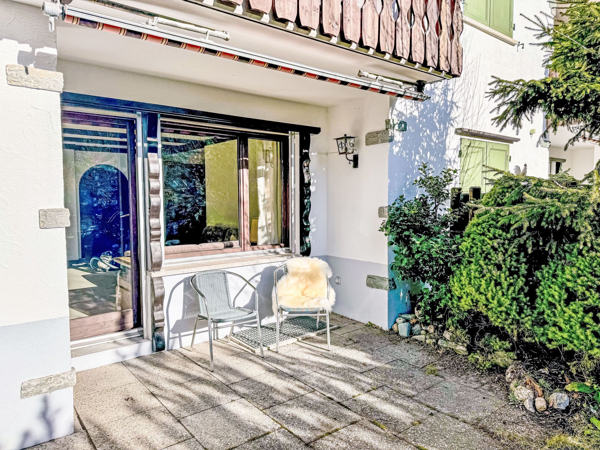 2-Zimmer-Wohnung 55 m2. Renoviert im Jahre 2025, komfortabel und gemütlich eingerichtet: Wohn-/Esszimmer mit 1 Doppeldiwanbett (160 cm), offenem Kamin und Kabel-TV (Flachbildschirm). Ausgang zum Gartensitzplatz. 1 Doppelzimmer. Ausgang zum Gartensitzplatz. Offene Küche (Backofen, Geschirrspüler, 4 Glaskeramikplatten, Toaster, Wasserkocher, elektrische Kaffeemaschine, Kapseln für die Kaffeemaschine (Nespresso) extra, Fondue Set (Käse)). Dusche/WC. Gartensitzplatz 25 m2. Terrassenmöbel. Schöne Sicht auf den See, die Berge und die Landschaft. Zur Verfügung: Babybett. Internet (WLAN, gratis). Garage (1 Auto) beim Haus. Bitte beachten: Nichtraucher-Unterkunft.