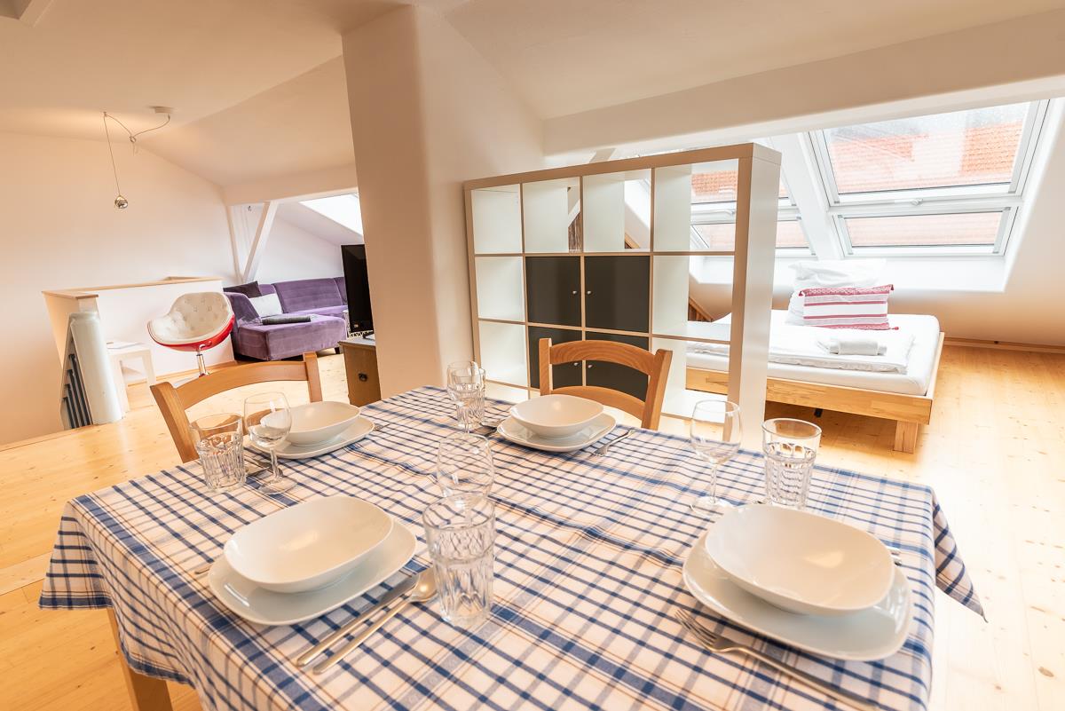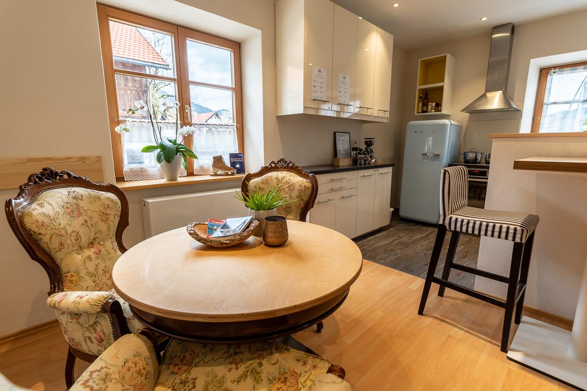 Neben den Zimmern gibt es, im Dachgeschoss unseres Hauses, eine großzügige Ferienwohnung (bis 4 Personen) mit traumhaftem Blick auf den Kofel. Die Ferienwohnung verfügt über eine eigene Küche.