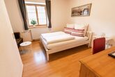 Unser gemütliches Queensize-Zimmer (ca. 17 qm) hat ein eigenes Duschbad / WC. Das Zimmer ist mit einem Doppelbett (160 * 200 cm), einem bequemen Sofa, Schreibtisch und Stuhl, Flachbild Satelliten-TV, einem Kleiderschrank und Garderobe ausgestattet. WLAN steht Ihnen kostenfrei zur Verfügung. Das Zimmer ist ein Nichtraucher-Zimmer.