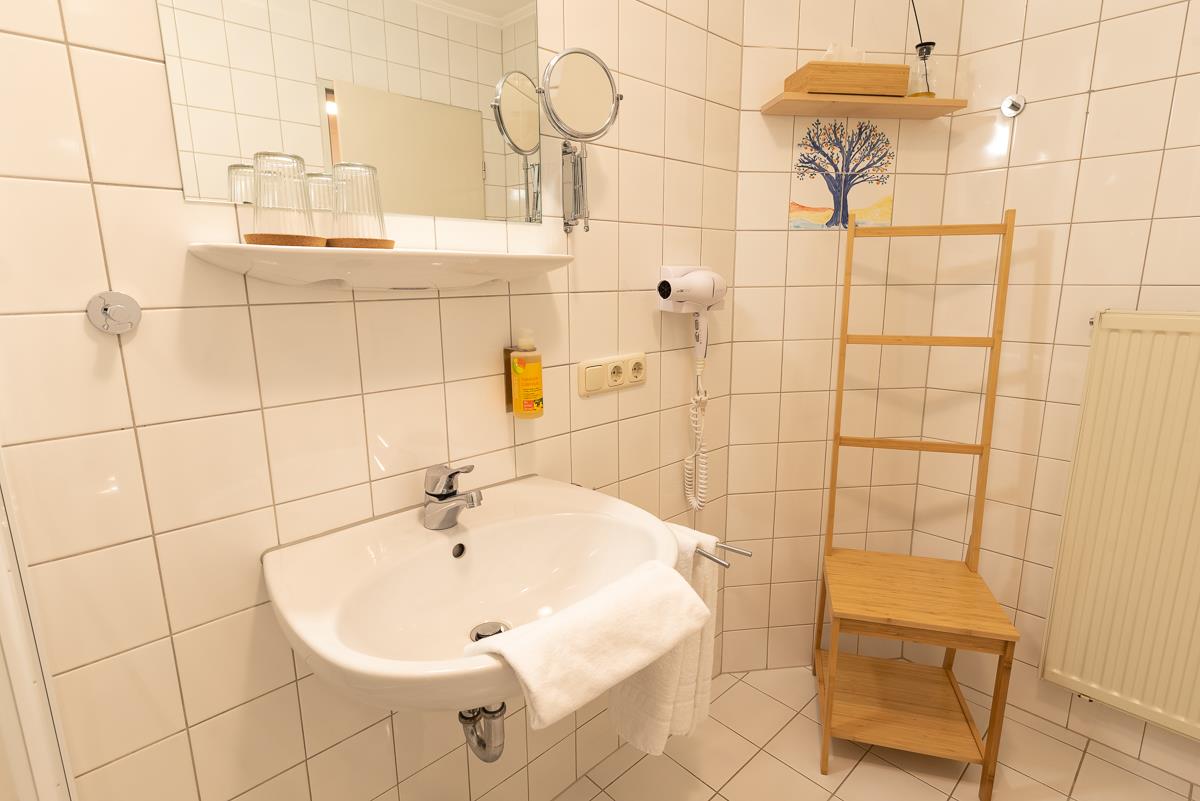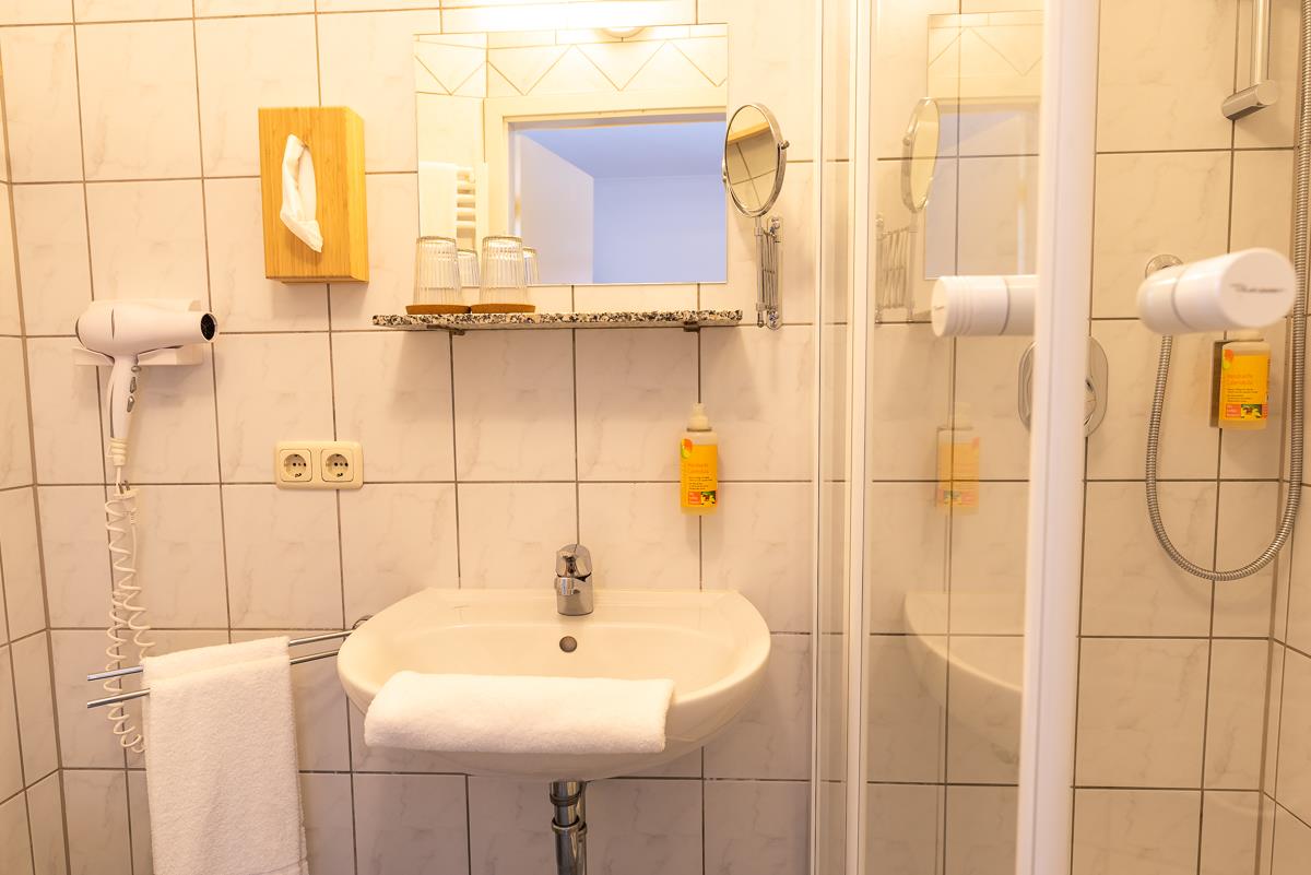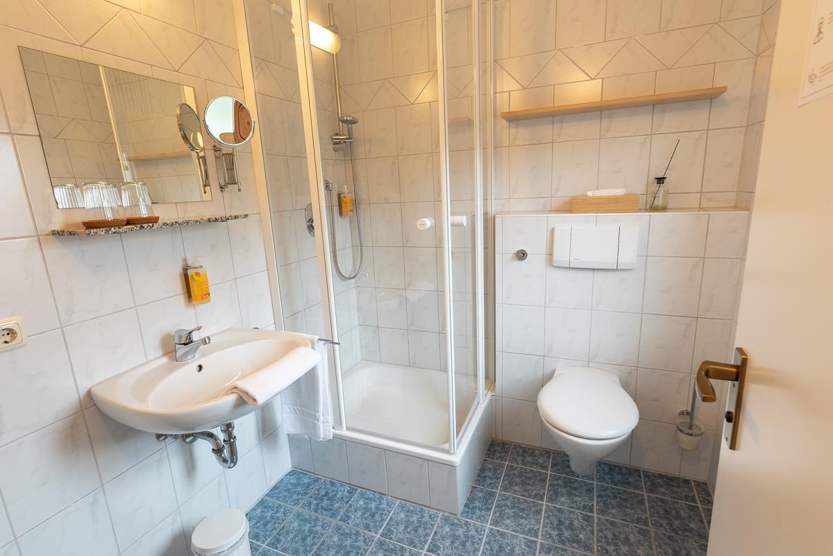 Unsere gemütlichen Doppelzimmer (ca. 17-19 qm) haben ein eigenes Duschbad / WC. Die Zimmer sind mit einem großzügigen Doppelbett (180 * 200 cm), Schreibtisch, einem bequemen Sessel oder Stuhl, Flachbild Satelliten-TV, einem Kleiderschrank und Garderobe ausgestattet. WLAN steht Ihnen kostenfrei zur Verfügung. Das Zimmer ist ein Nichtraucher-Zimmer.