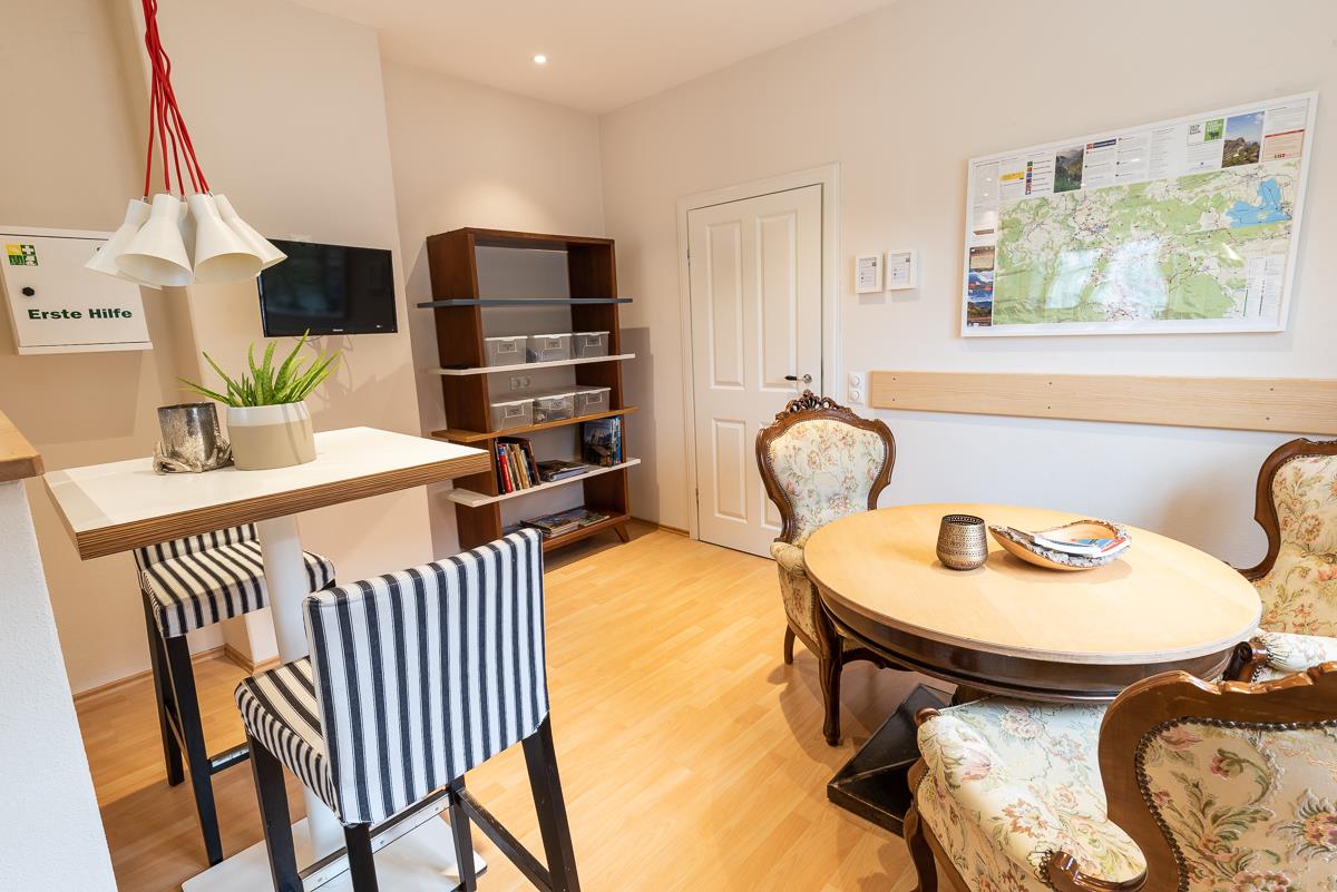 Neben den Zimmern gibt es, im Dachgeschoss unseres Hauses, eine großzügige Ferienwohnung (bis 4 Personen) mit traumhaftem Blick auf den Kofel. Die Ferienwohnung verfügt über eine eigene Küche.