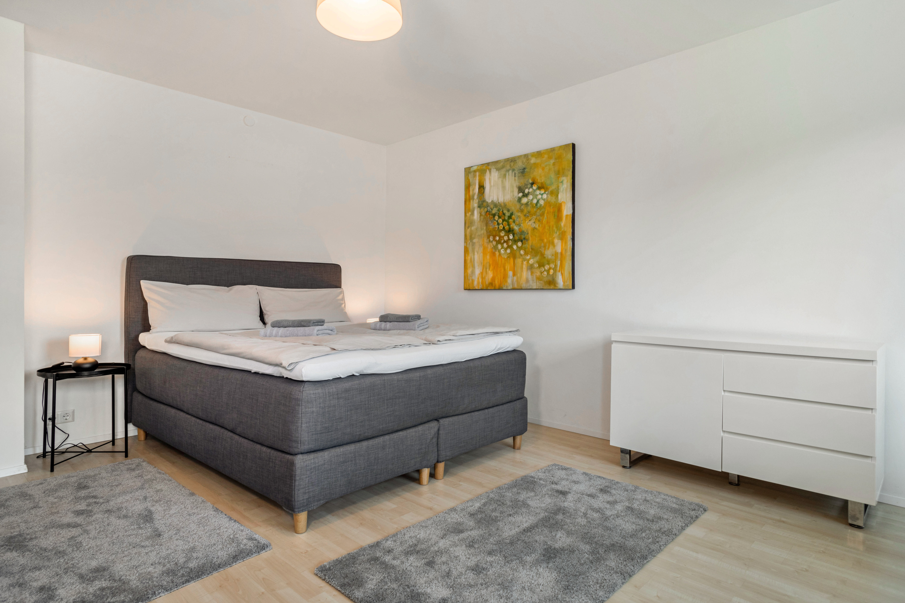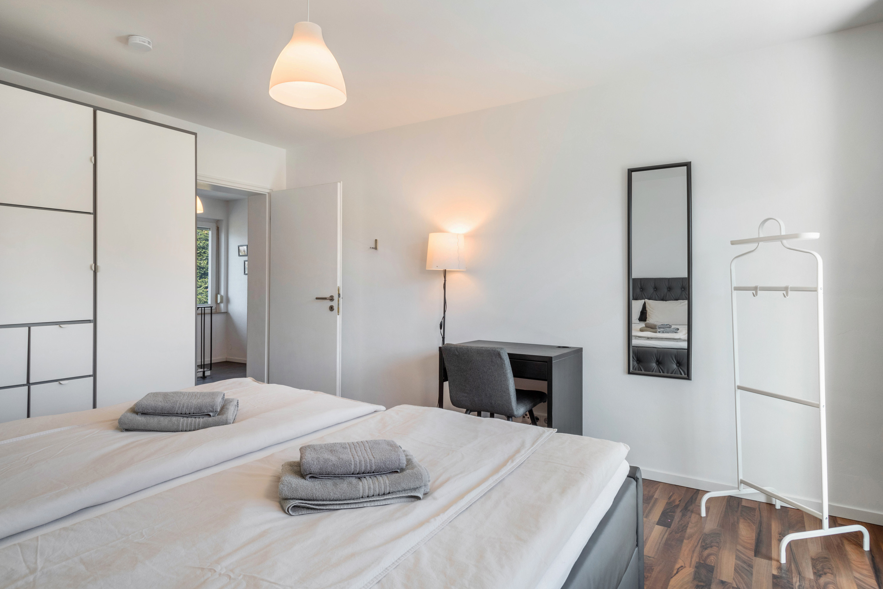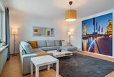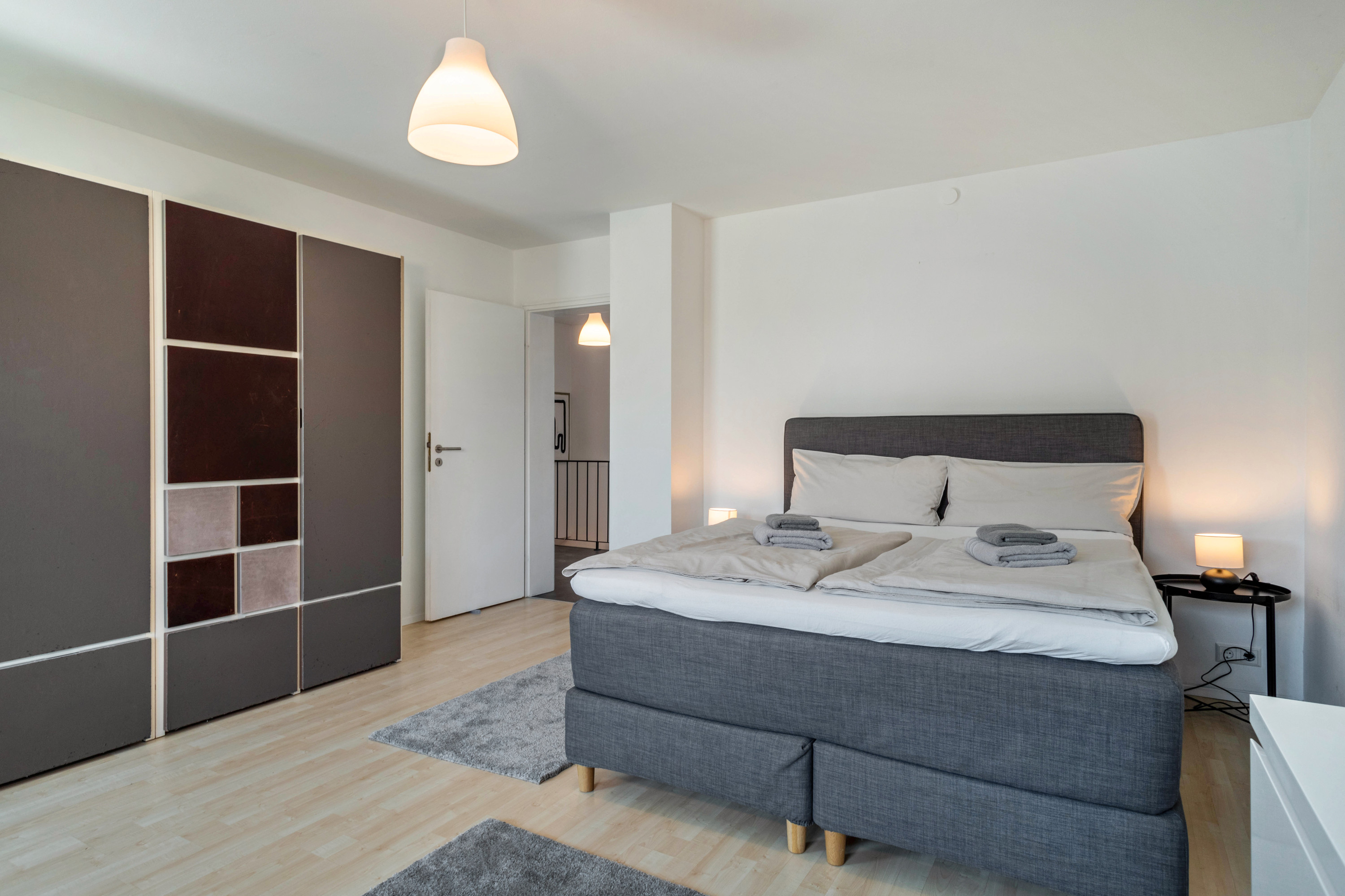 Ein großzügiges Wohnzimmer mit separatem Essbereich, zwei große Schlafzimmer mit jeweils einem King-Size-Bett und einem Queen-Size-Bett sowie ein weiteres Schlafzimmer mit ausziehbarem Bett (1,60 m), eine voll ausgestattete Küche mit Spülmaschine, ein Badezimmer sowie ein Gäste-WC sorgen für einen angenehmen Aufenthalt. Zur Ausstattung gehören außerdem WLAN und ein TV. Für längere Aufenthalte stehen Waschmaschine und Trockner zur Verfügung.