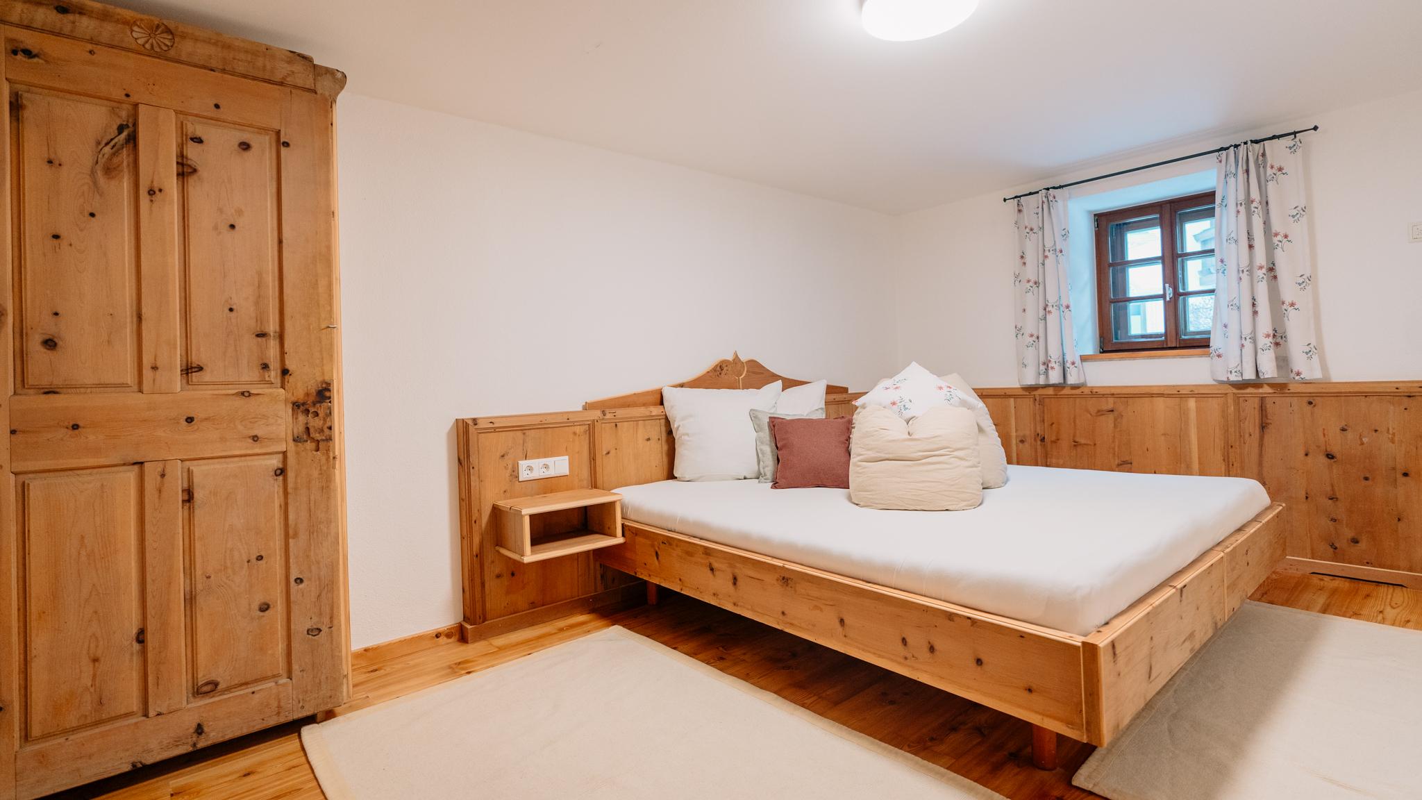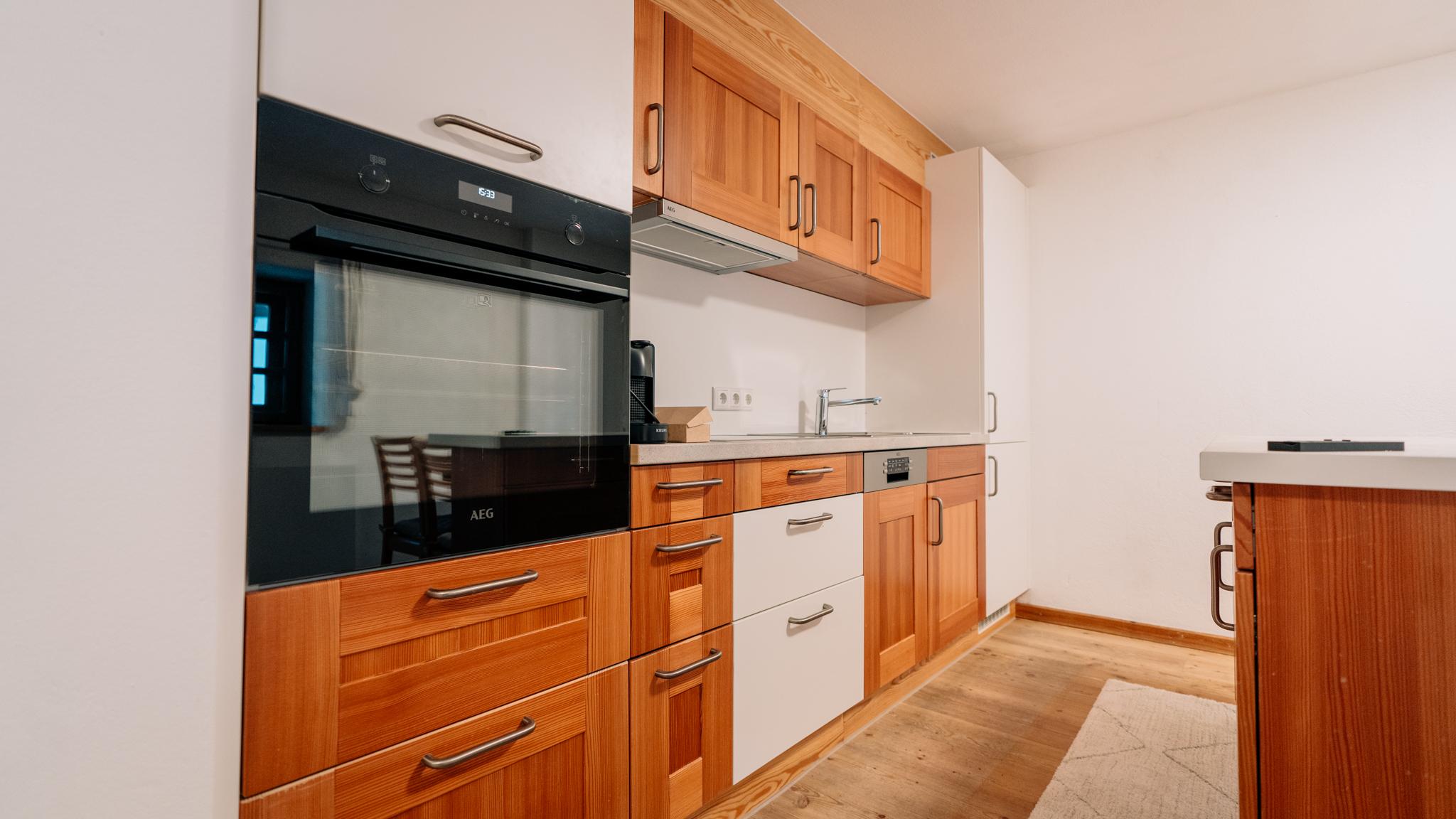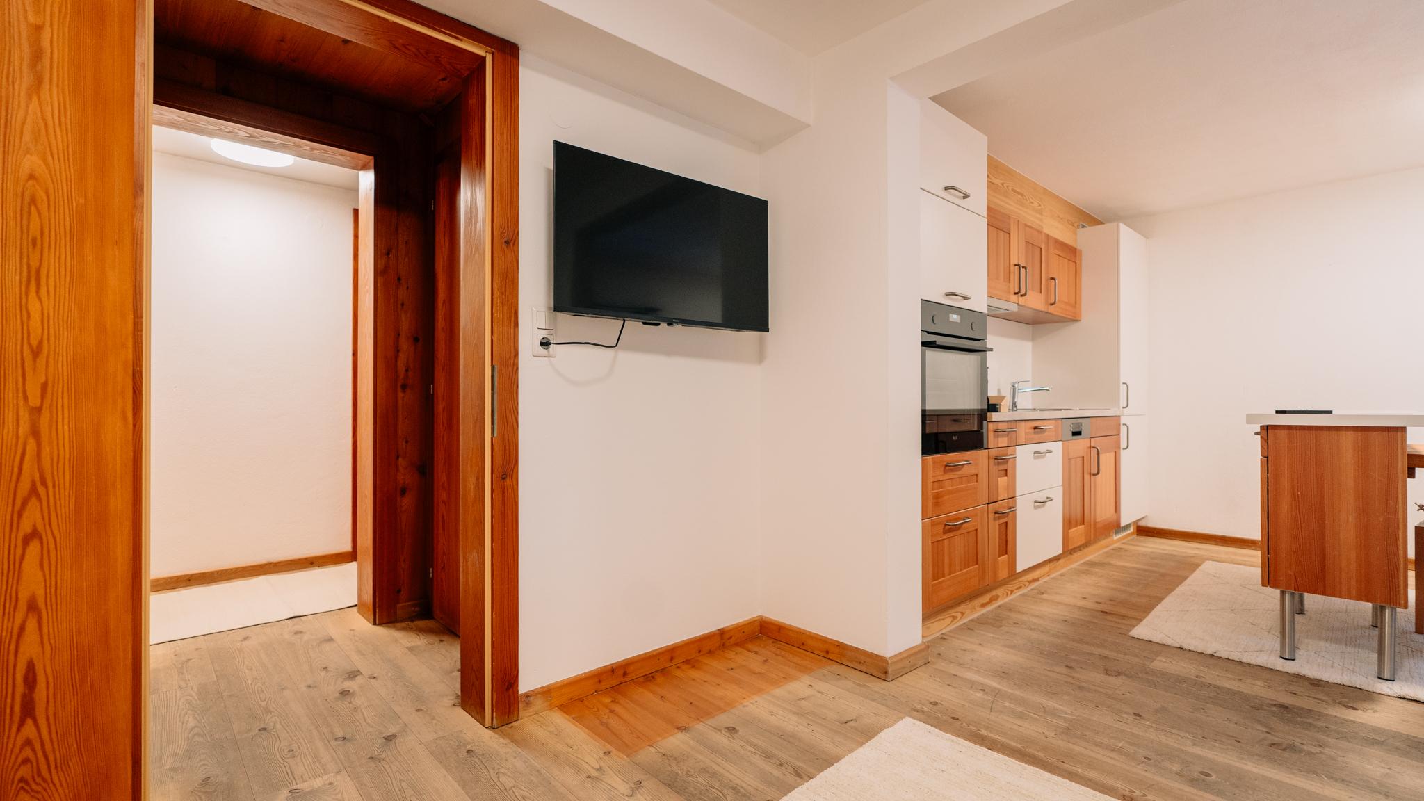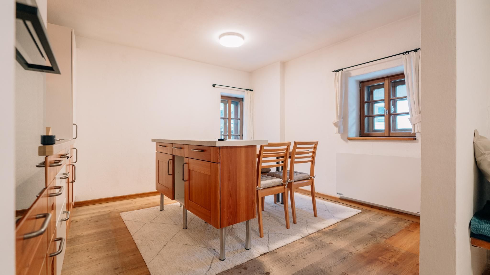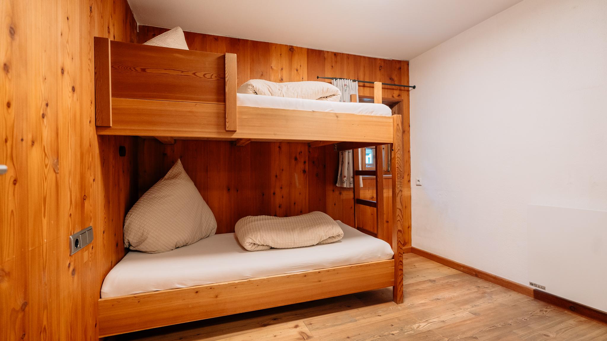 Das TOP 2 (ca. 62 m²) umfasst ein Doppelzimmer und ein Schlafzimmer mit Stockbett – ideal für Kinder. Eine voll ausgestattete Wohnküche (Herd, Backofen, Kühlschrank/Gefrierfach, Geschirrspüler und vieles mehr) mit Essbereich, ein Badezimmer mit Dusche und ein separates WC sind ebenfalls vorhanden. Auf dem möblierten Balkon, der möblierten Terrasse sowie im Gemeinschaftsgarten lässt sich das einzigartige Bergpanorama genießen.