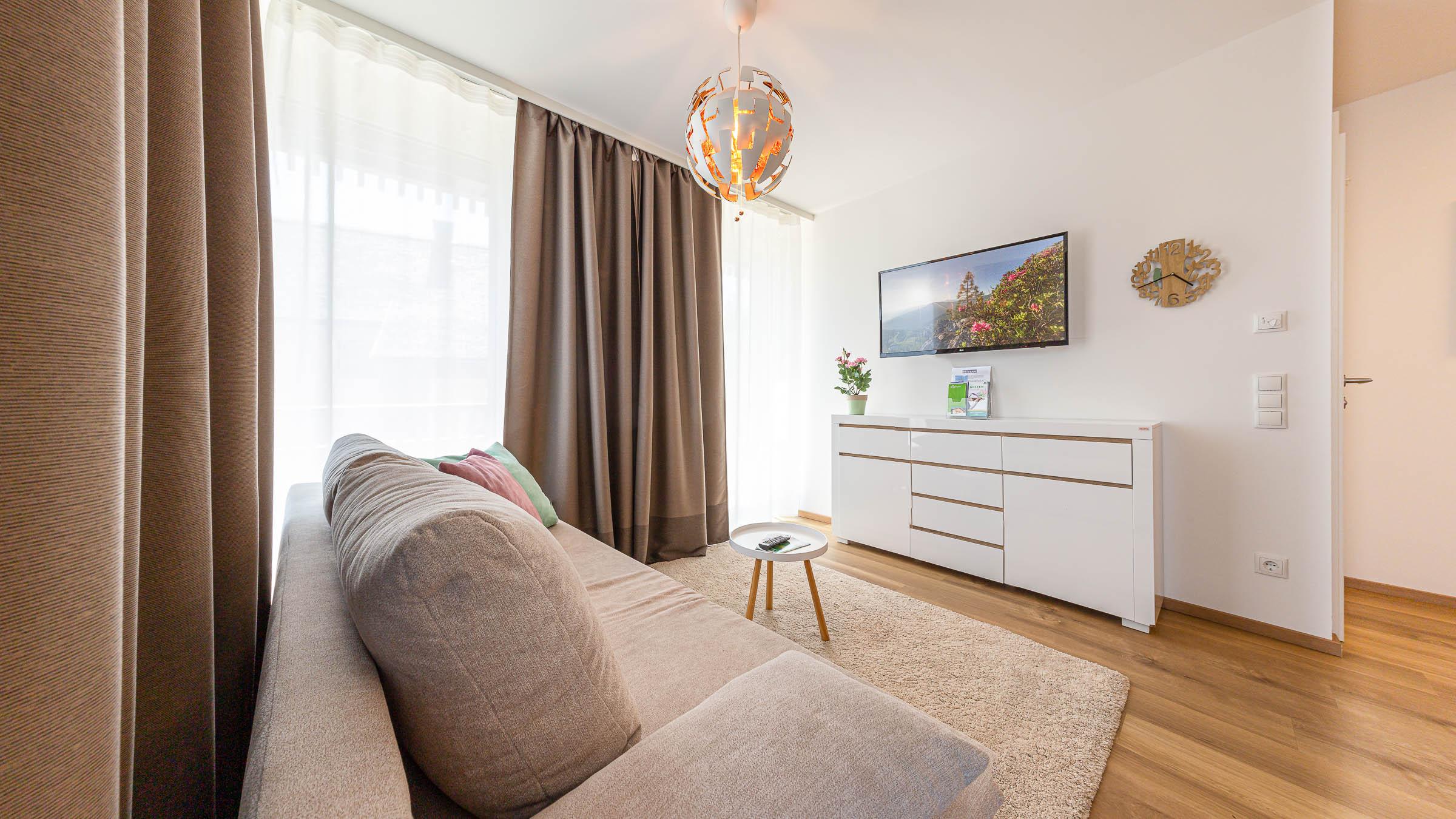 Willkommen in Ihrer neuen Ferienwohnung! Genießen Sie den Komfort eines separaten Schlafzimmers, eines separaten WCs und eines Badezimmers mit Sauna. Die moderne Küche ist mit dem Wohnbereich und einem Essplatz verbunden. Entspannen Sie auf der Terrasse mit herrlichem Blick auf die Berge. Die Wohnung im Erdgeschoss ist neu eingerichtet und bestens ausgestattet – perfekt für Ihren Aufenthalt!