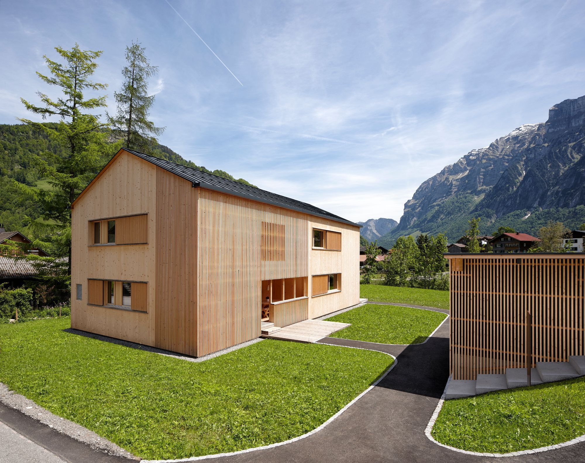 Wer Architektur und Natur gleichermaßen liebt, ist im Islen glücklich. Das Haus ist die ideale Ruhe-Insel für Familien, Sport- und Naturbegeisterte und Erholungssuchende mit Sinn für Schönheit. Es liegt ruhig, aber doch zentral (Dorfzentrum in 3 Gehminuten erreichbar) am Flussufer und der erste Blick morgens beim Aufwachen fällt auf Wiesen und Berggipfel. Auch das Freibad erreichen Sie zu Fuß in nur 2 Gehminuten.