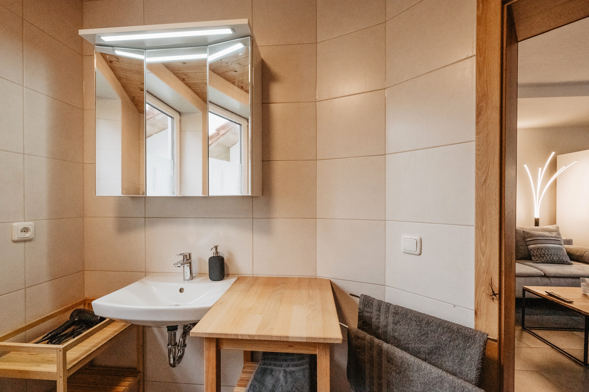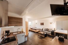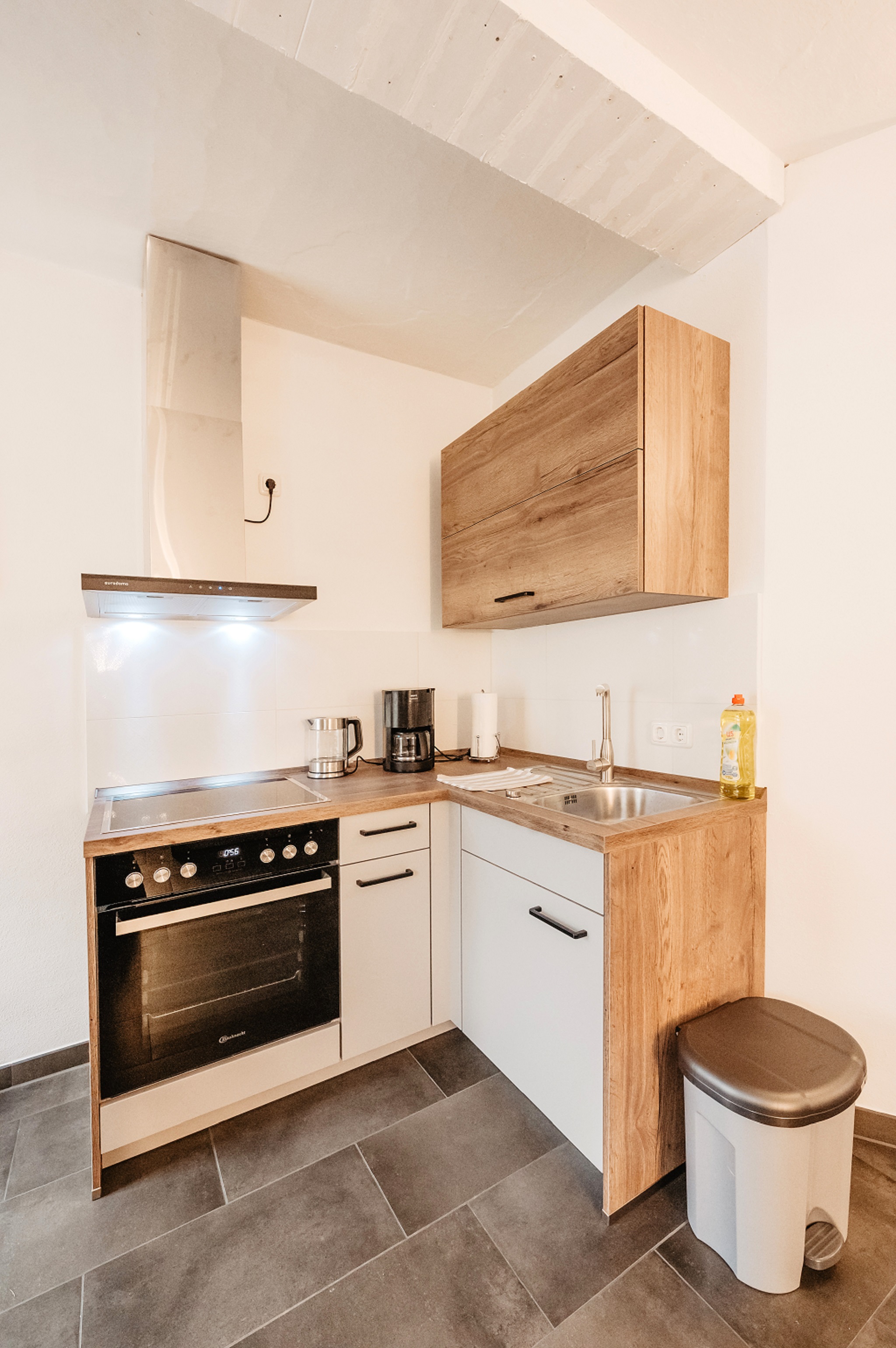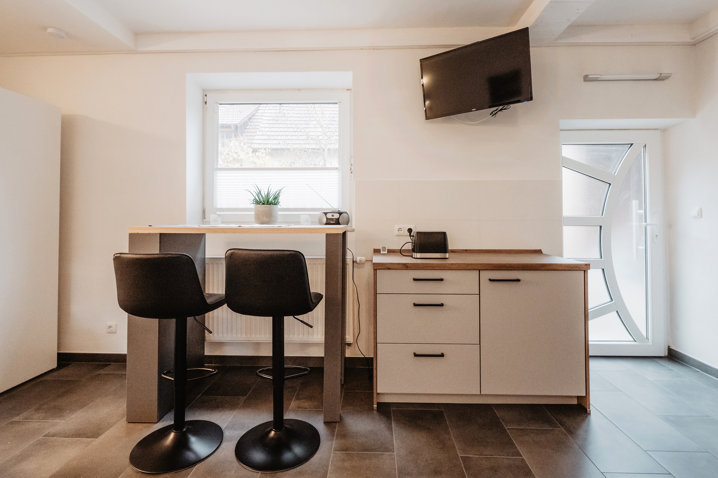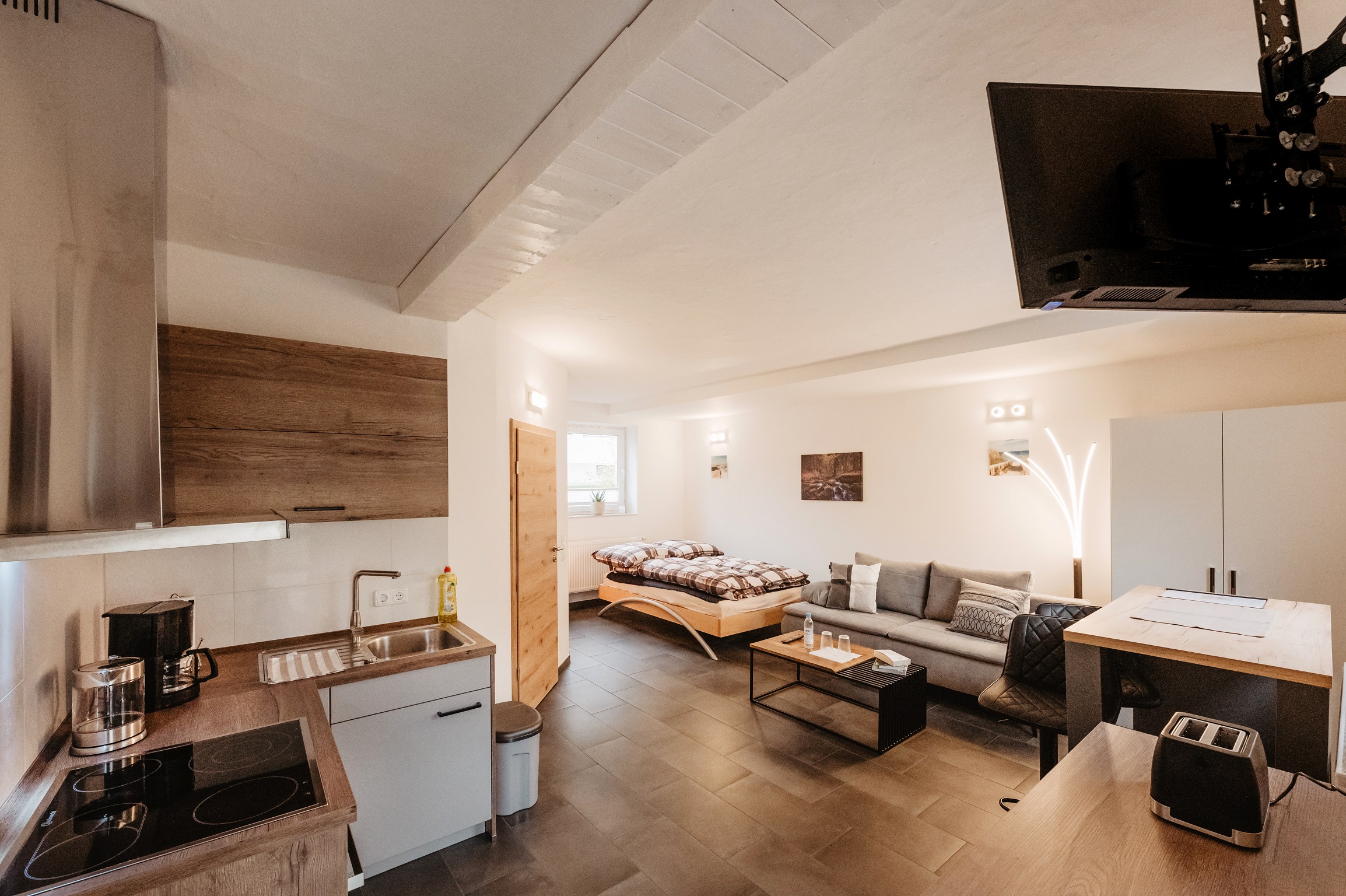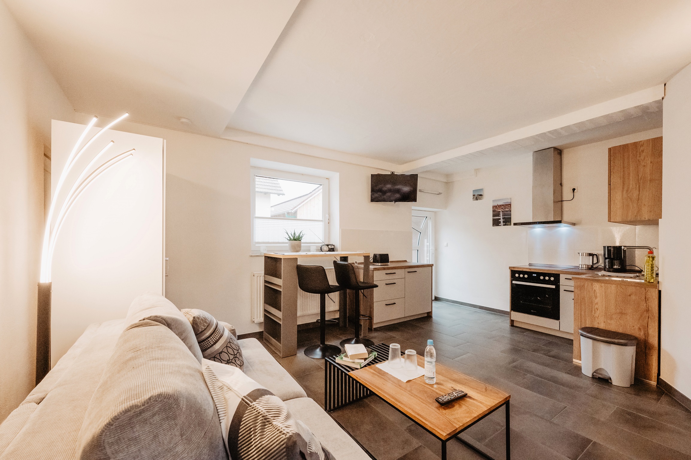 Die 32m² große Ferienwohnung, die mit viel Liebe 2024 eröffnet wurde, bietet viel Platz für bis zu 3 Personen. Das schöne Design der Möbel und die individuelle neue hochwertige Ausstattung verleihen unserer Ferienwohnung den besonderen modernen Charme. Ein großzügiger zentraler Bereich mit Wohnzimmer, Ess-und Küchenbereich sind der Mittelpunkt der Wohnung. Die Küche ist mit Kochfeld, Backofen und Kaffeemaschine ausgestattet, elektrischer Wasserkocher und Toaster sind selbstverständlich. Im zentralen Bereich befinden sich alle Schlafmöglichkeiten. Diese sind ein Doppelbett und eine herrliche Schlafcouch. Alle Betten sind für Sie bei Ihrer Ankunft bezogen! Die Wäsche-Erstausstattung mit Bettwäsche und Handtüchern ist bereits im Mietpreis enthalten. Ein neu erstelltes Badezimmer mit großzügiger Dusche, WC, Waschtisch und ein Föhn freut sich auf Ihre Nutzung.