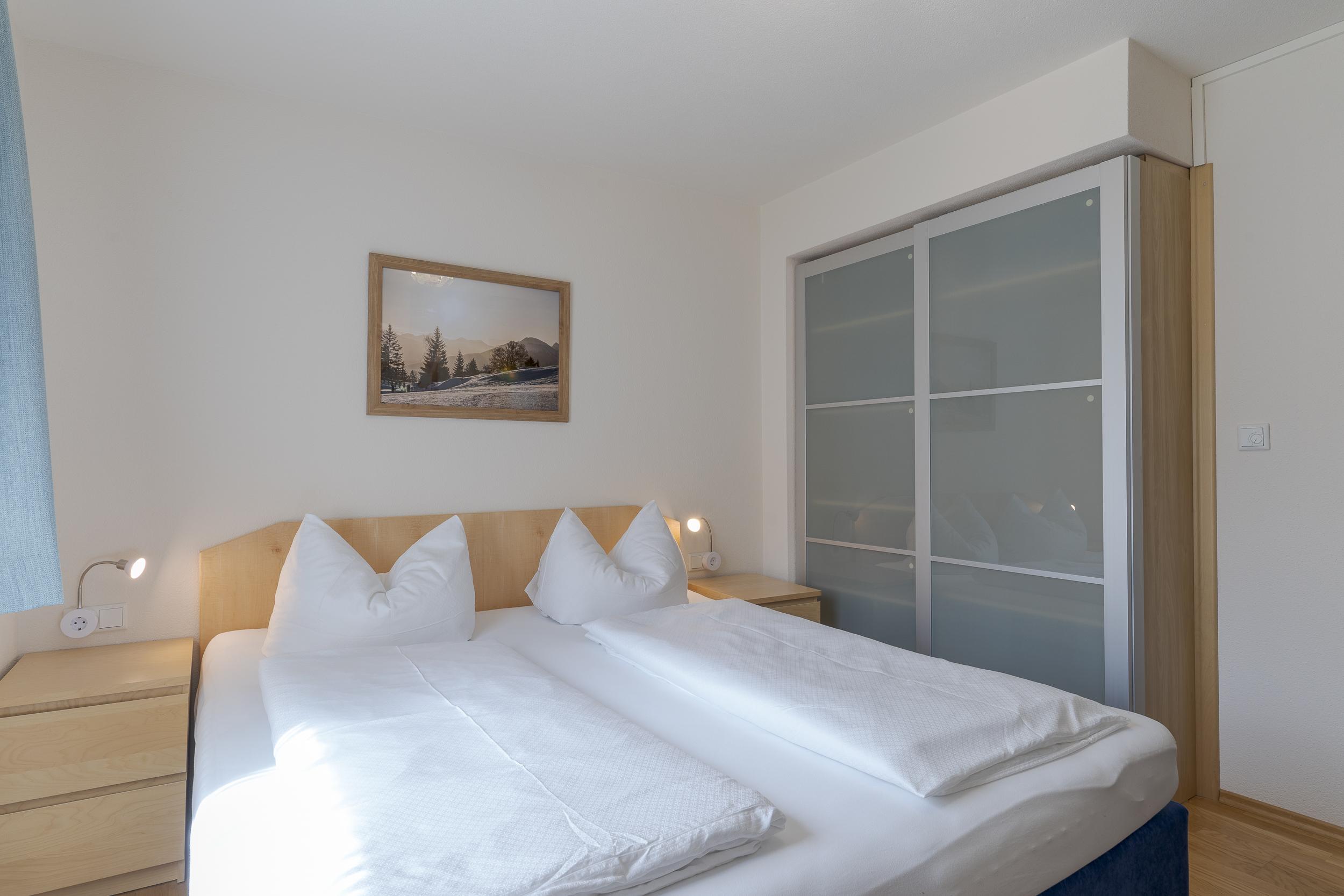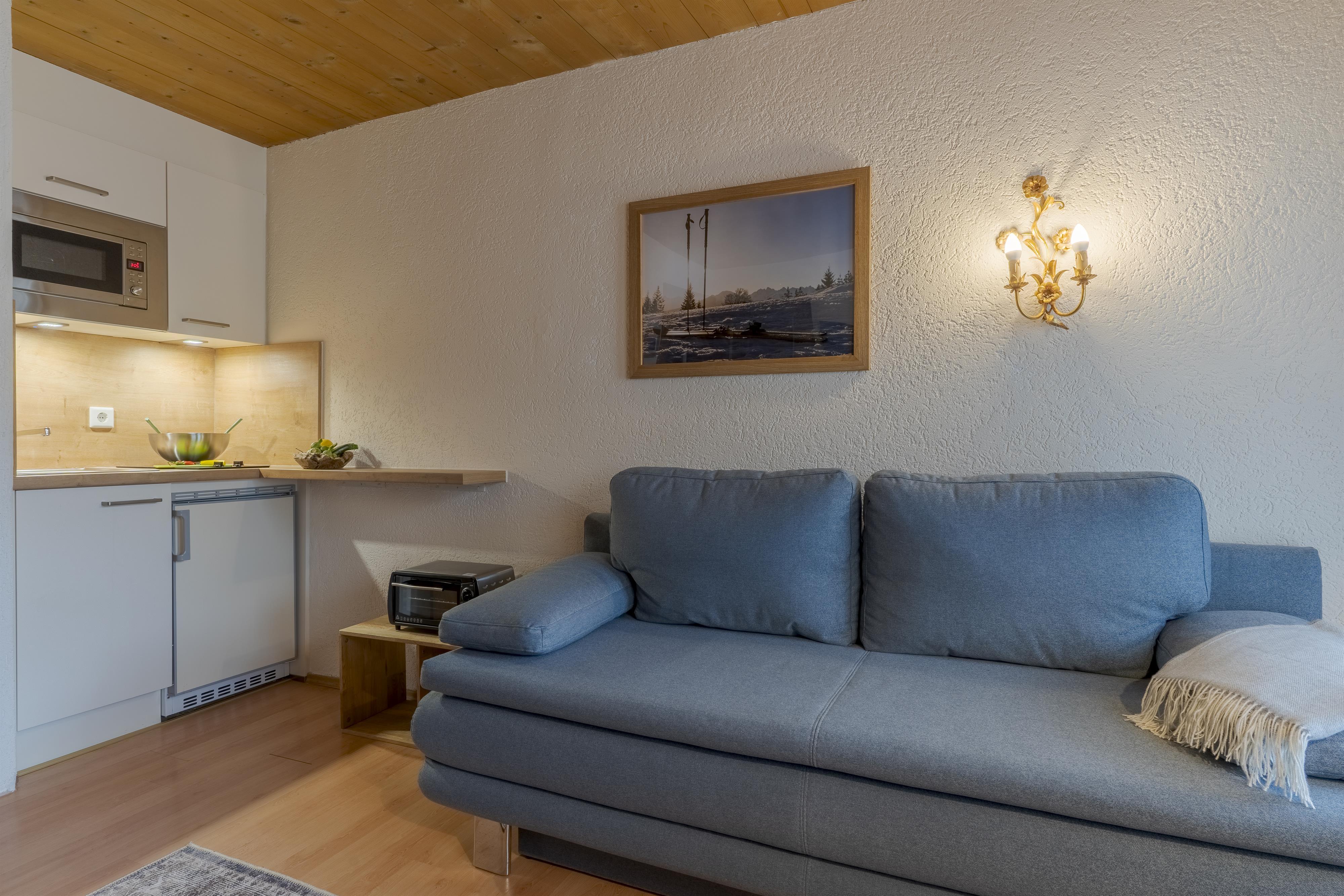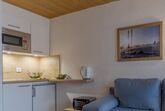 Die Wohnung besteht aus einem Wohnzimmer, einem Schlafzimmer, Kochnische, Dusche oder Bad/WC, Balkon oder Terrasse. Der Wohnraum ist mit einer Eßecke, Sitzgruppe, Selbstwähltelefon und Kabel-TV ausgestattet.