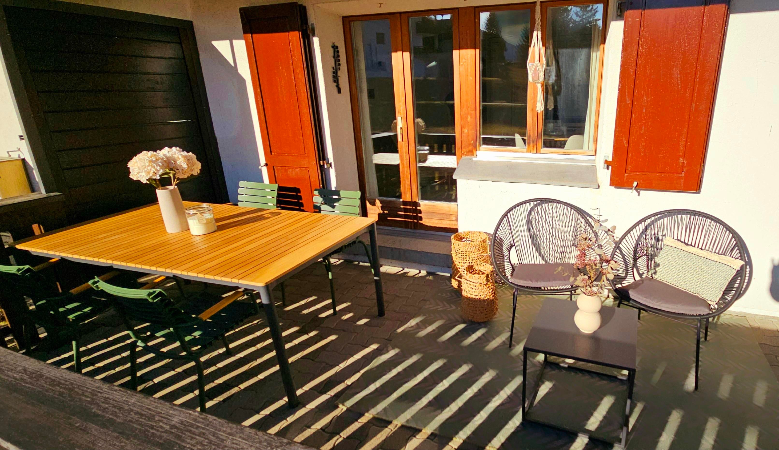 Ein Highlight ist die Terrasse mit Südausrichtung, die direkten Zugang zum Garten bietet – ideal, um sonnige Stunden im Freien zu geniessen. Im Keller steht ein Skiraum mit Ski- und Handschuhtrockner zur Verfügung – perfekt für einen unvergesslichen Urlaub in den Bergen.