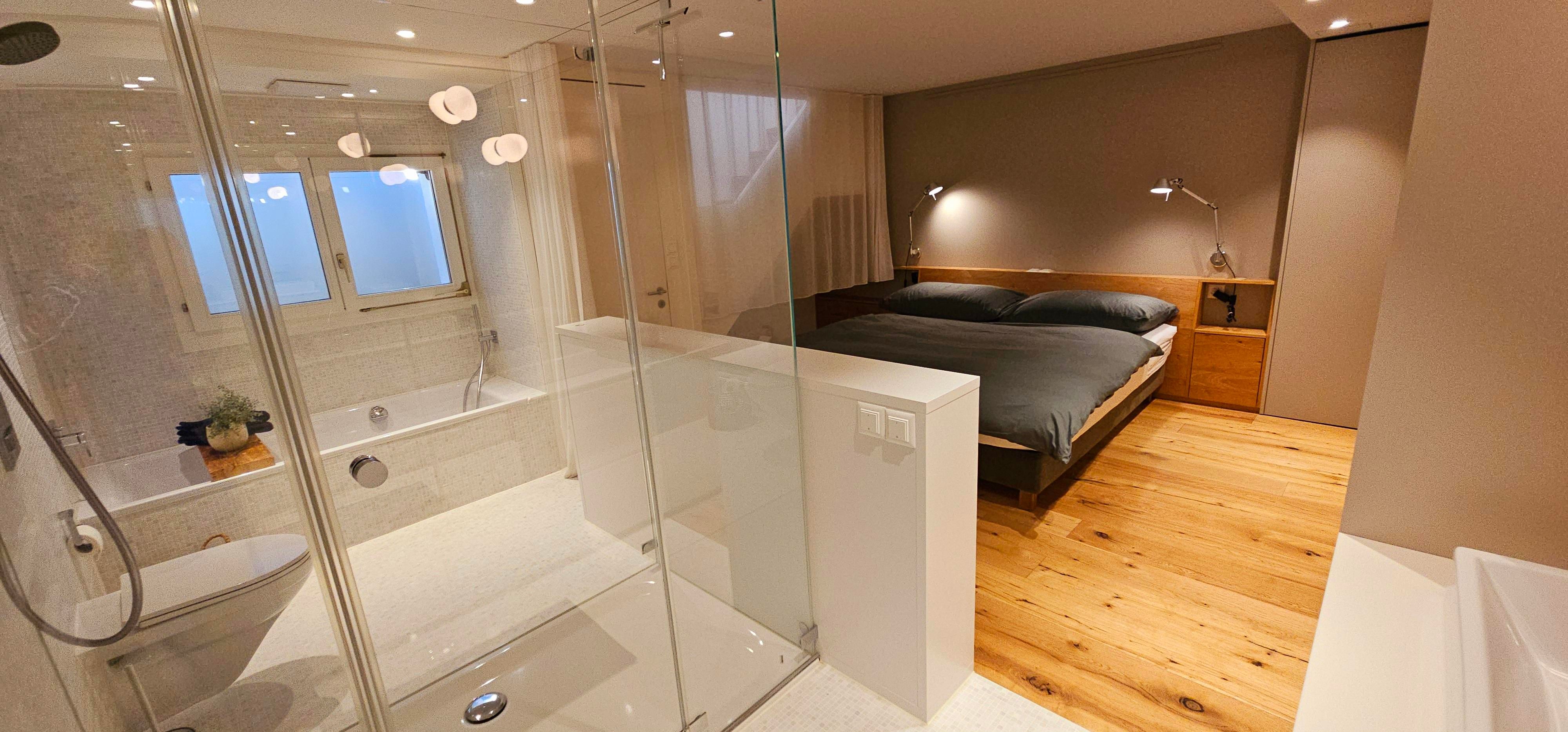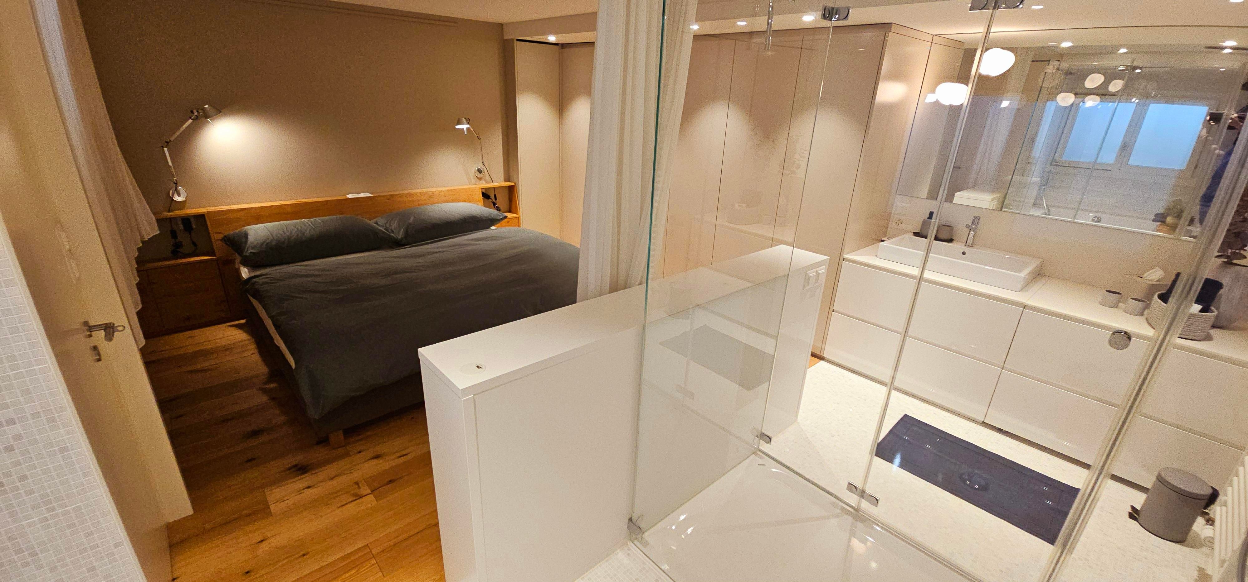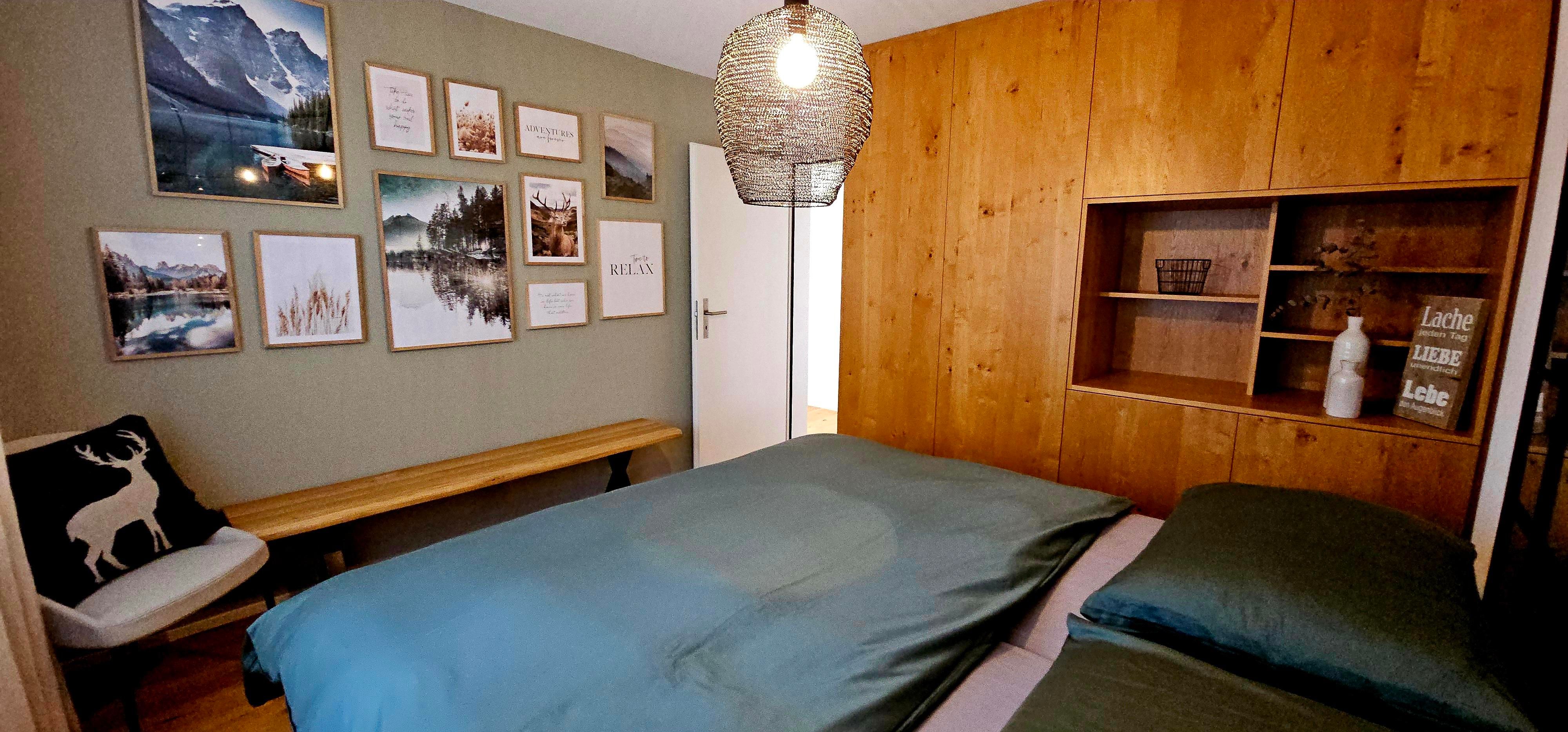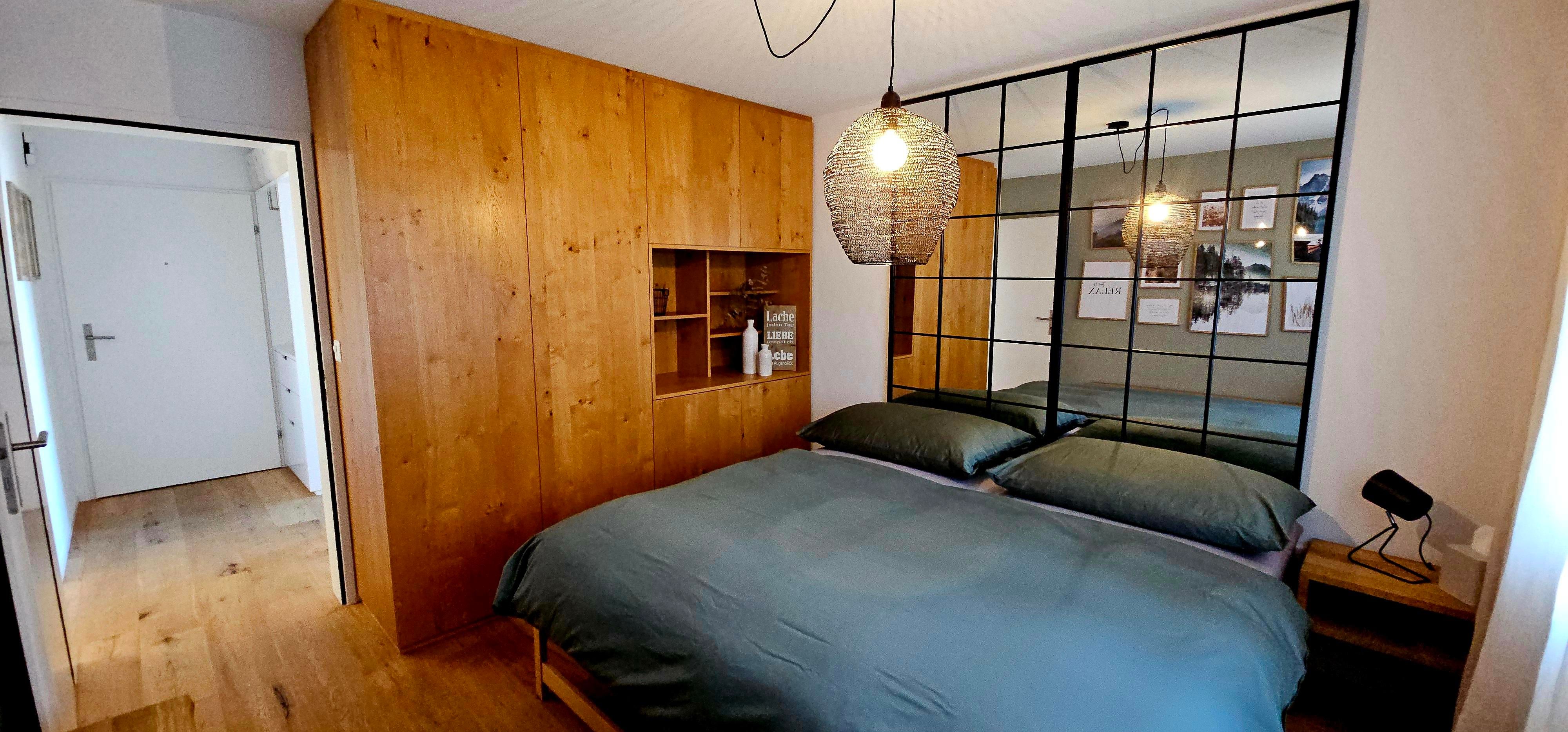 Die neu renovierte, luxuriöse 3.5 Zimmer Ferienwohnung bietet höchsten Komfort und eine schöne Ausstattung. Das helle, stilvoll eingerichtete Wohnzimmer verfügt über ein hochwertiges Bettsofa und schafft mit seiner grosszügigen Gestaltung eine gemütliche Atmosphäre zum Entspannen. Für Ihre Unterhaltung stehen ein grosser Fernseher und WLAN bereit. Die offene, moderne Küche ist bestens ausgestattet. Zwei grosszügige Schlafzimmer mit Doppelbetten sowie zwei Badezimmer. Eines mit Dusche/WC, eines mit Badewanne/Dusche/WC.