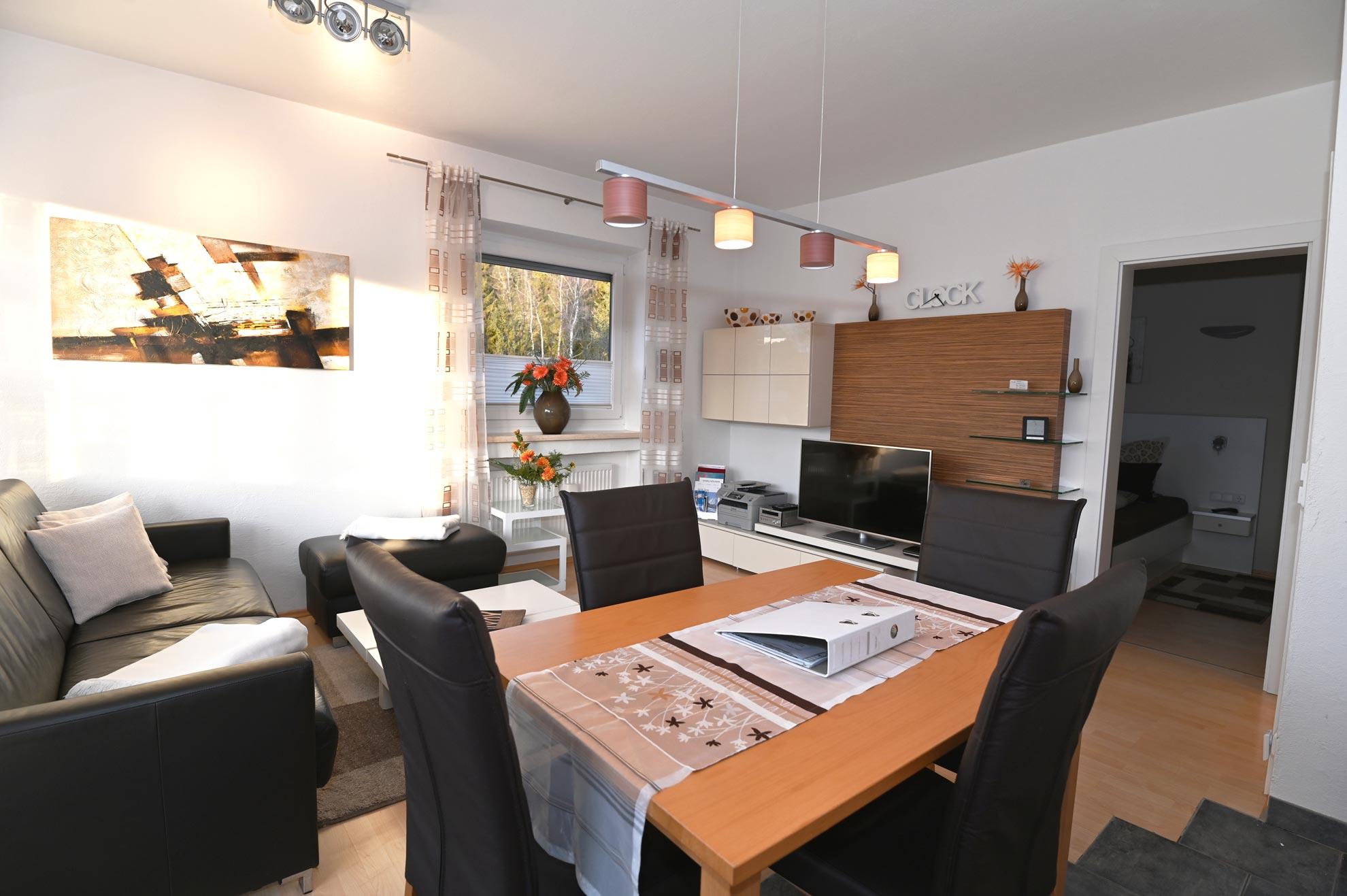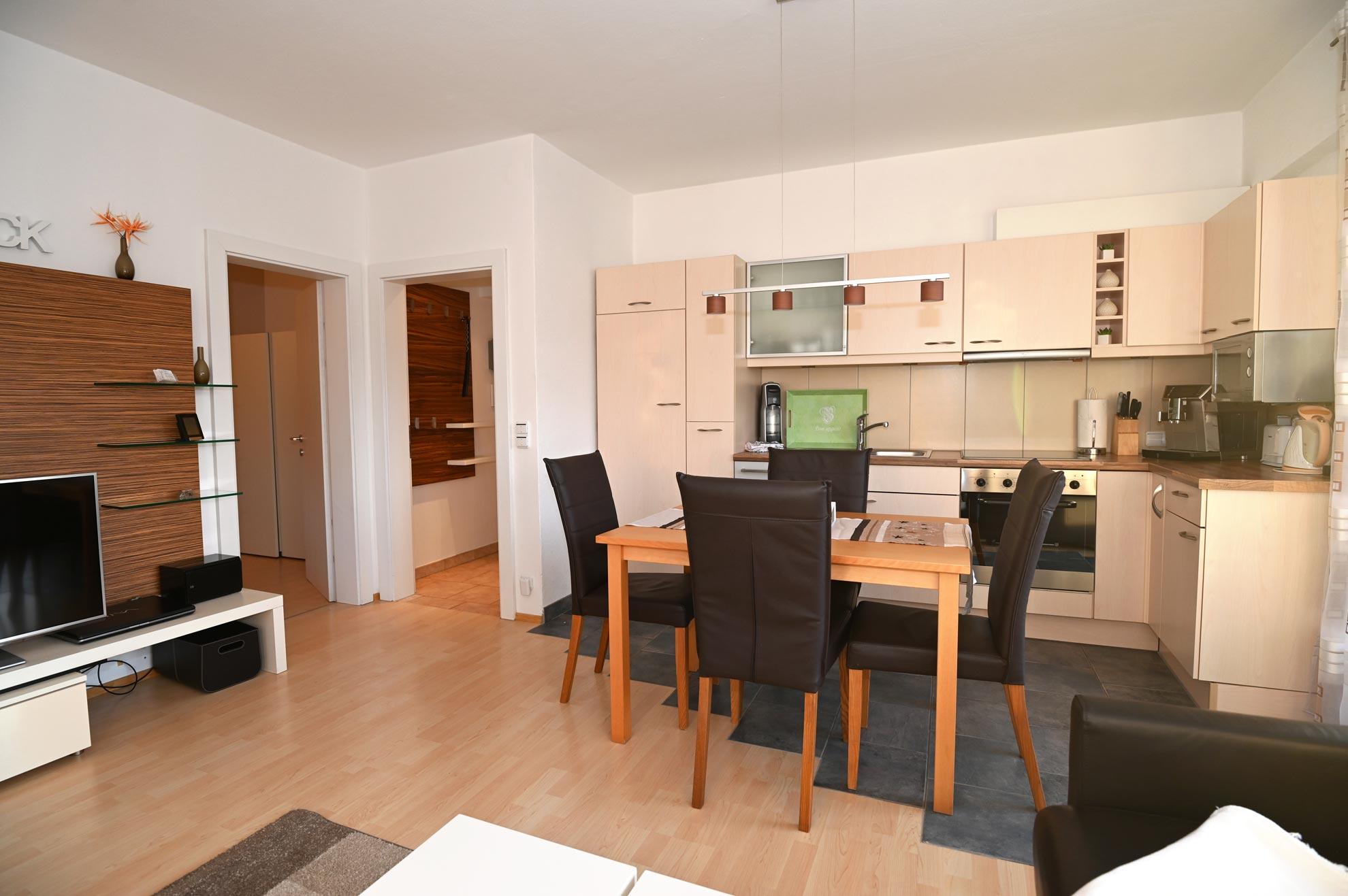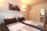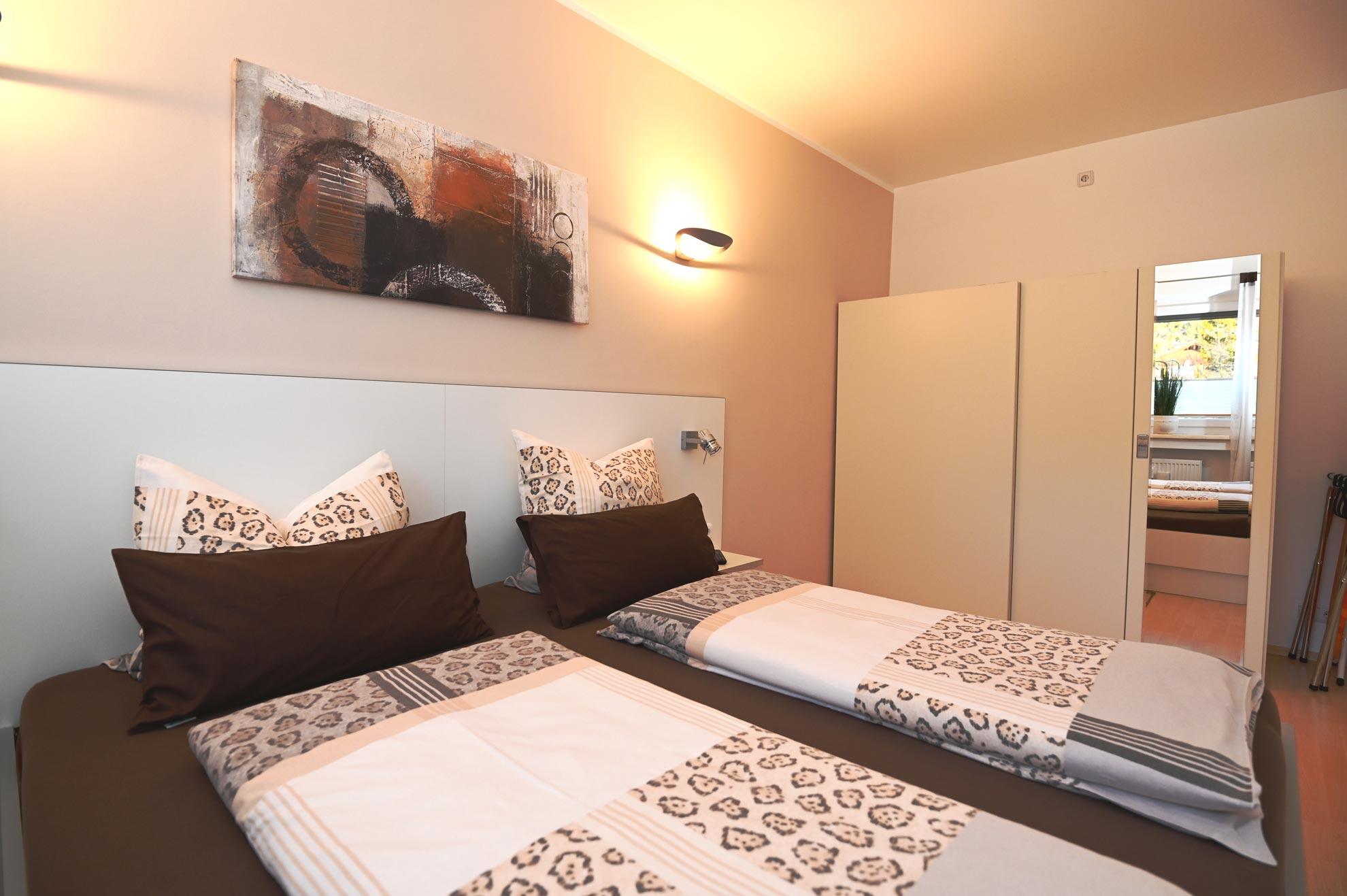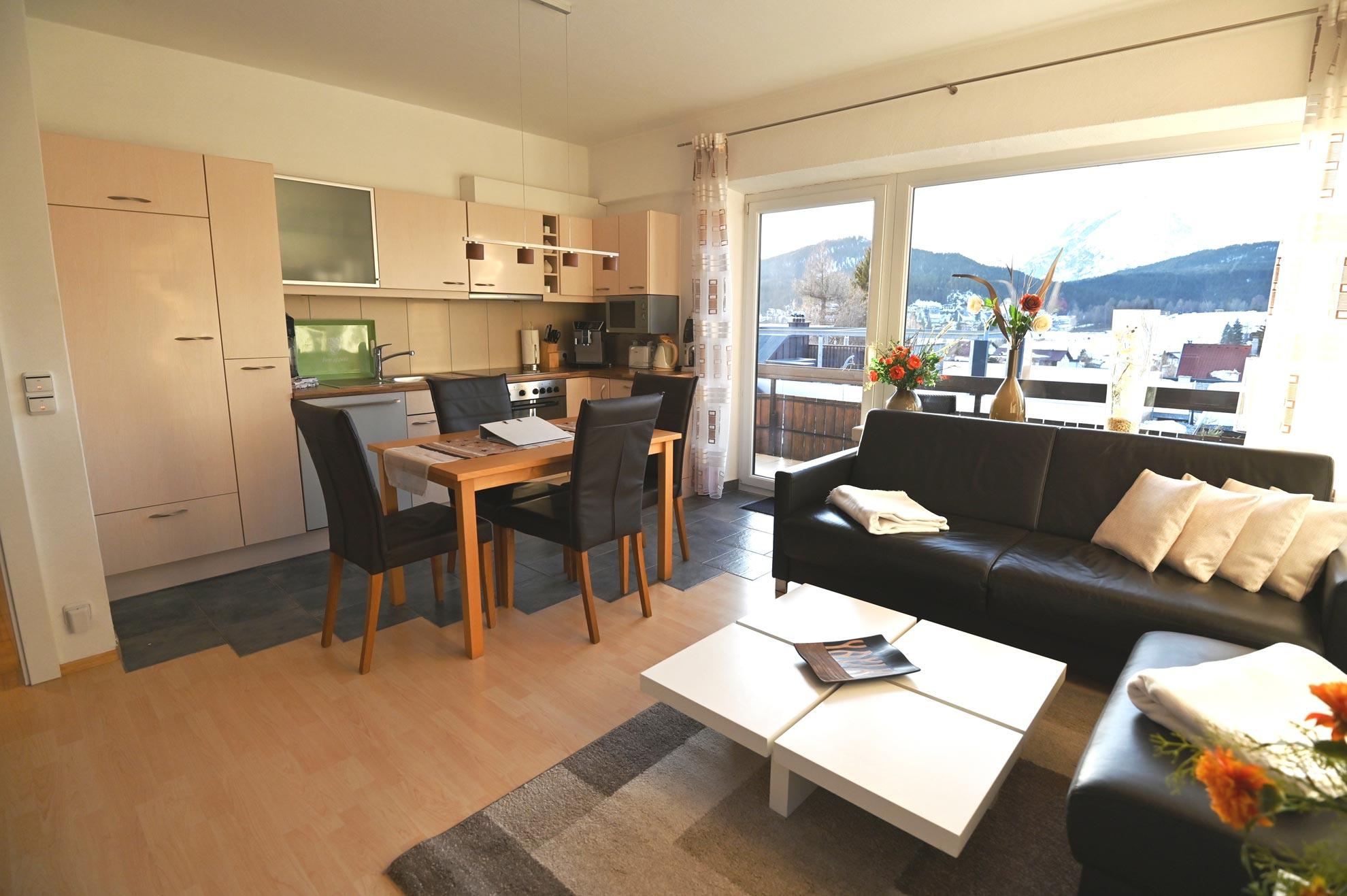 2-Zimmer-Luxus-Appartement***** (60 qm) mit 15 qm Südwestbalkon und gigantischem Ausblick auf Seefeld und die Alpen, hochwertige Ausstattung, Wohnzimmer mit einem Essbereich und einem Designersofa – in dem noch ein zusätzliches Doppelbett integriert ist sowie neustem technischen Equipment: 2 LED-TV, PC, Fax, kostenlosem Internetzugang (WLAN), separates Schlafzimmer mit extrabreitem (2,00 m) Bett , begehbarem Schrank, hochmodernes Bad mit Badewanne und Raindance-Dusche, Küche