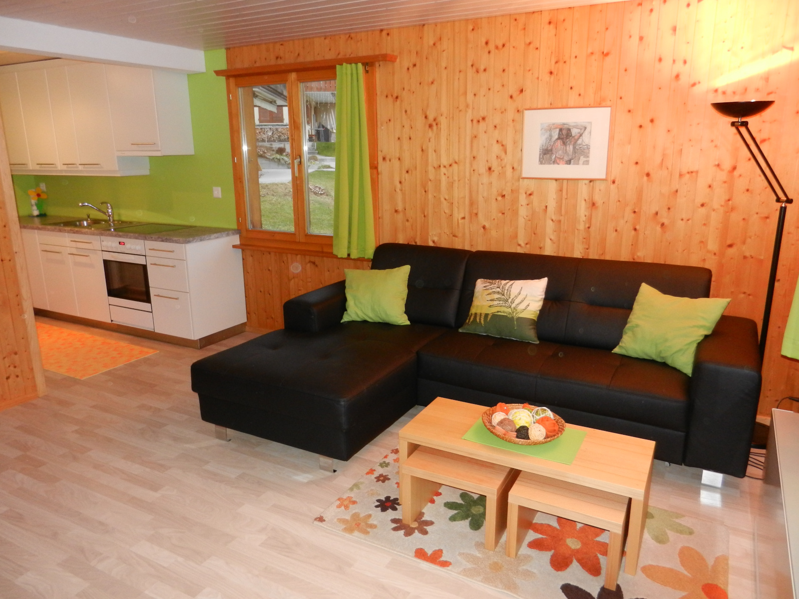 Das Wohnzimmer ist mit einem bequemen Lederbettsofa ausgestattet. Kostenloser WLAN. Küche: