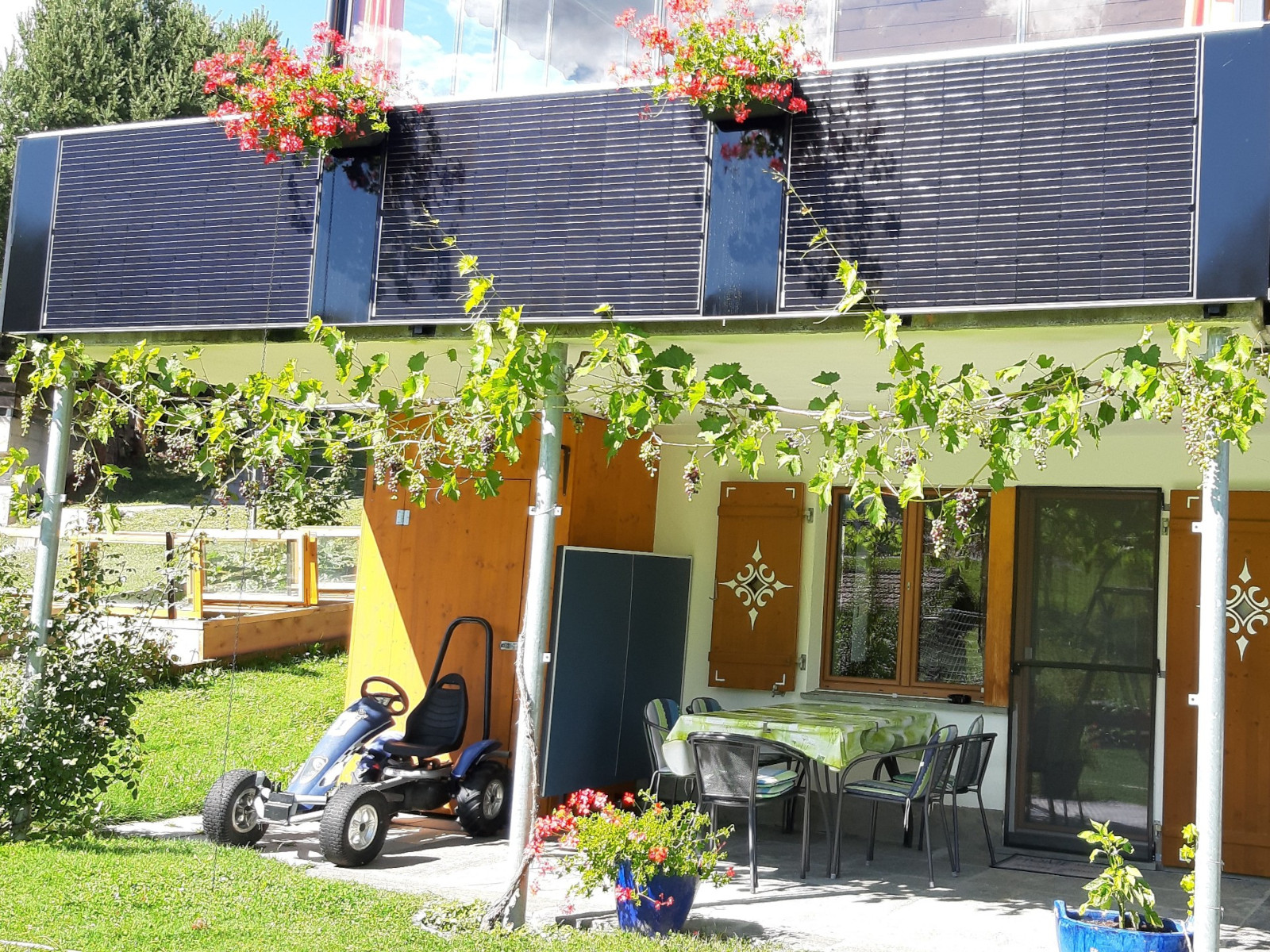 1 Schlafraum, Babybett, Backofen: 1, Balkon, Balkon: 1, DVD-Player: 1, Fondue-Set, Grillmöglichkeit, Haustiere nicht erlaubt, Internetverbindung, Kaffeemaschine: 1, Kinderbett, Küche, Küche separat, Kühlschrank, Nichtraucherzimmer-/wohnung: 1, Raclette-Set, Radio: 1, Schlafcouch, Terrasse: 1, Töpfe Pfannen Geschirr, TV: 1, Waschmaschine, Wasserkocher, WiFi
