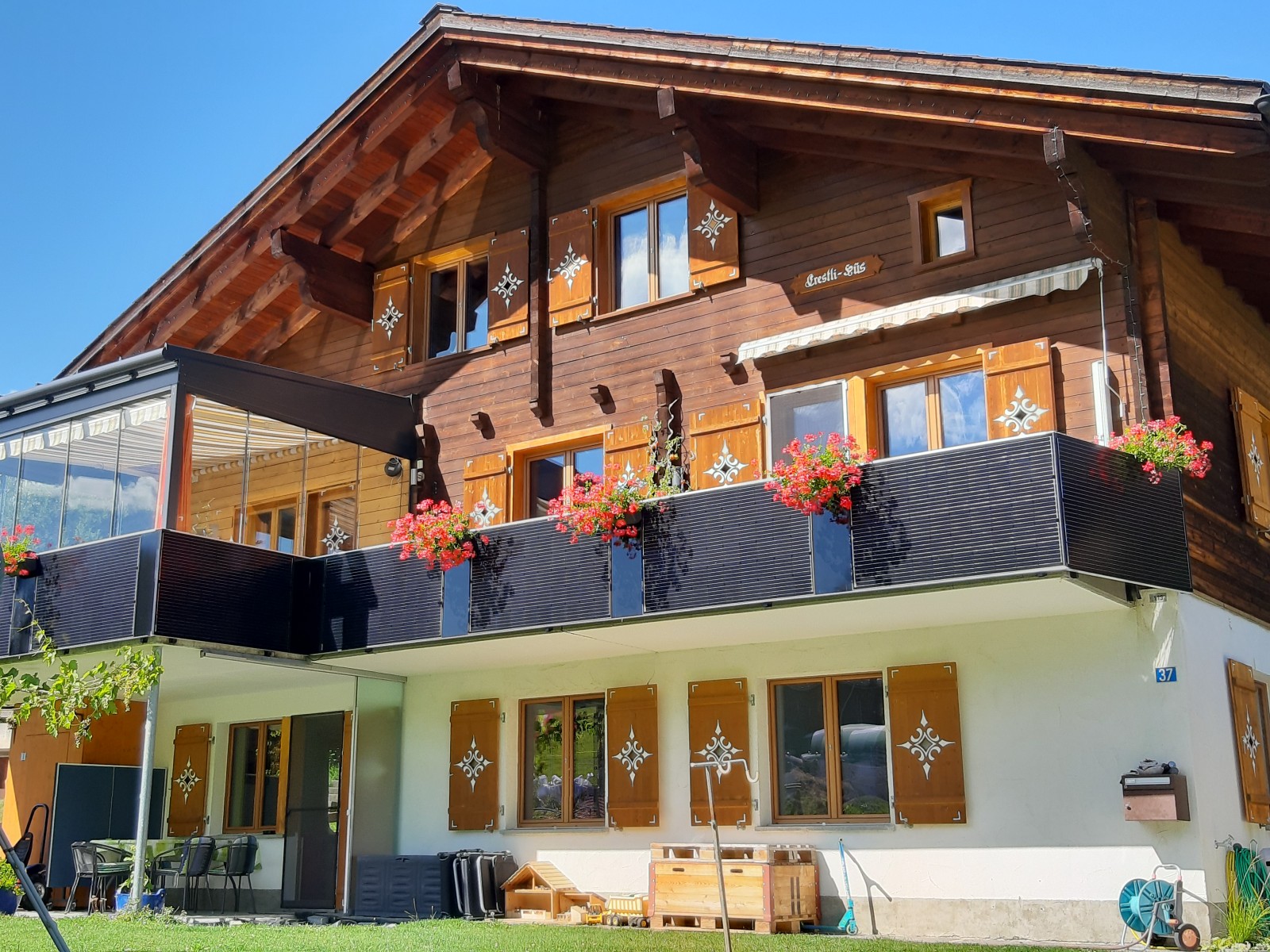 Das Haus befindet sich an einer ruhigen Quartierstrasse. Im Winter führt die Skipiste direkt zum Haus. Kinderspielplatz und Sitzplatz zur freien Verfügung gleich vor dem Haus. Dorfladen, Sportbushaltestelle und Raiffeisenbank sind ca. 5 Gehminuten entfernt. Ein Gratisbus verkehrt im Winter regelmässig: die Bushaltestelle befindet sich gegenüber vom Dorfladen/der Raiffeisenbank. Das Kinderparadies Rufalipark ist in ca. 15 Min. zu Fuss erreichbar. Auf Anfrage: Spezielle Bikepackages und geführte Biketouren! Parkplatz verfügbar und inbegriffen. Haustiere nicht gestattet. Nichtraucher-Unterkunft. Entdecken Sie die attraktiven Leistungen unserer Gästekarte.