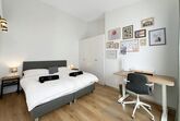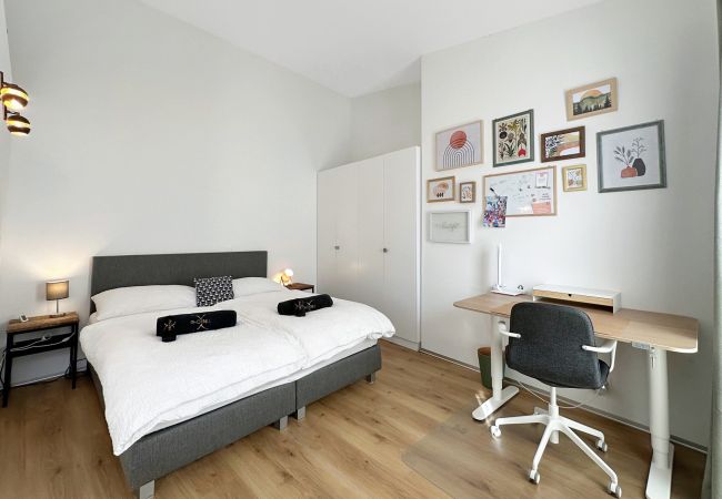 Ein großes Schlafzimmer ist als Master-Suite mit Bad / WC ausgestattet. Zu diesem Raum gehört auch eine Ecke mit Schreibtisch (höhenverstellbar), an dem Sie bei Bedarf arbeiten können.