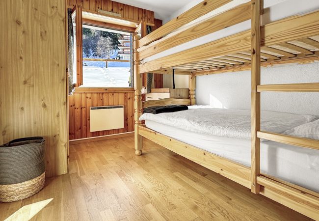 Dieses geräumige Apartment liegt 150 m von den Skiliften von Tracouet entfernt und verfügt über eine voll ausgestattete Küche, die zum Wohnzimmer hin offen ist, drei Schlafzimmer, ein Bad / WC und ein Duschbad / WC. Dieses Apartment bietet auch 3 große Balkone, die von der Küche, dem Wohnzimmer und dem größten Schlafzimmer aus zugänglich sind.