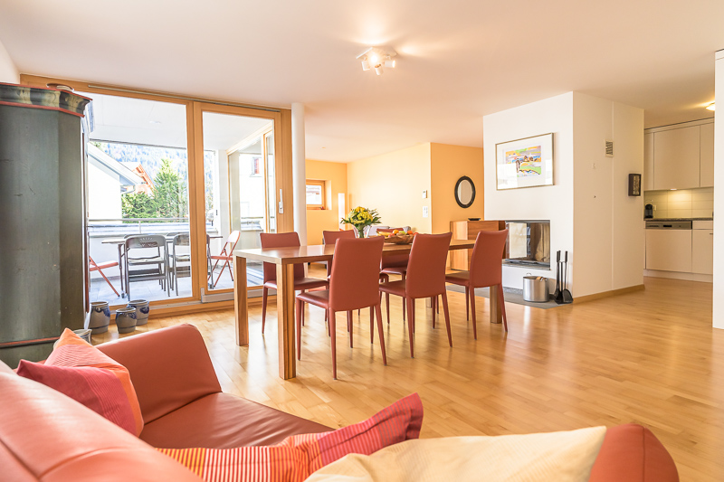 Charmante 4.5 Zimmer Ferienwohnung mit 96qm in einem Mehrfamilienhaus in Flims Waldhaus gelegen. Das Ferienapartment Sweet Home bietet Platz für 6 Gäste. Es finden sich insgesamt 3 Schlafzimmer im Apartment. Zwei Zimmer jeweils mit einem Doppelbett und im dritten Zimmer befindet sich ein Stockbett. Bitte beachten Sie das wir aufgrund der Grösse, dieses Bett nur Kinder und Jugendlichen bis 16 Jahren empfehlen. Zusätzlich finden Sie 2 Bäder, eines mit Dusche, WC und Lavabo und eines mit Duschbadewanne, WC und Lavabo. Ausserdem befindet sich hier auch noch eine Waschmaschine und ein Trockner, welchen Sie gerne mit nutzen werden dürfen. Die Küche ist ausgestattet mit Kühlschrank, Backofen und Herd, einer Nespresso-Kapselmaschine, Wasserkocher, Toaster und Geschirrspüler. Der Ess- und Wohnbereich lädt zu gemütlichen Abenden am Kamin ein. Bitte beachten Sie, dass kein Holz vorhanden ist und selbst organisiert werden muss. 2 Autoabstellplätze in der Tiefgarage (2.00m), WLAN und Nebenkosten (Heizung, Strom und Wasser) sind inbegriffen. Bett- und Frotteewäsche, Endreinigung sowie alle Taxen und MwSt. sind ebenfalls im Endpreis enthalten. Weitere Autos müssen auf den öffentlichen und somit kostenpflichtigen Parkplätzen abgestellt werden. Das Rauchen ist nicht gestattet. Haustiere sind nicht erlaubt.