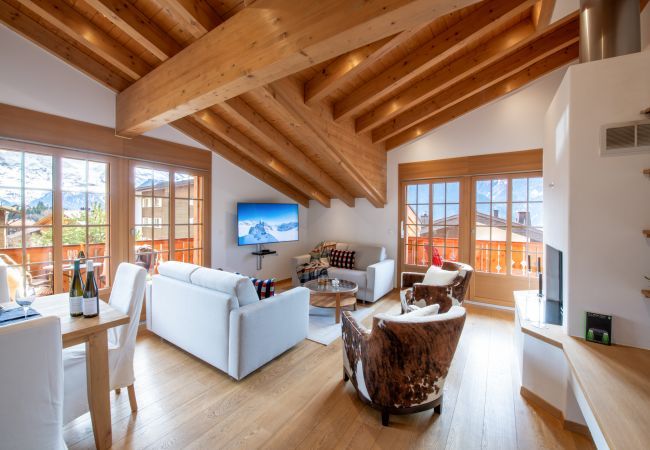 Diese luxuriöse Penthouse-Wohnung mit drei Schlafzimmern ist der Ort, an dem man sein möchte. Nur einen kurzen Spaziergang von 420 Metern vom Bahnhof Wengen entfernt, bietet sie atemberaubende Ausblicke auf die Jungfrau und ist auf höchstem Niveau eingerichtet. Diese Wohnung lässt keine Wünsche offen. Es gibt atemberaubende Ausblicke und Balkone mit Doppelausrichtung, die auf das Jungfrau-Gebirge blicken, und der offene Wohnbereich verfügt über einen großen offenen Kamin, an dem man gemütliche Après-Ski-Abende verbringen kann.