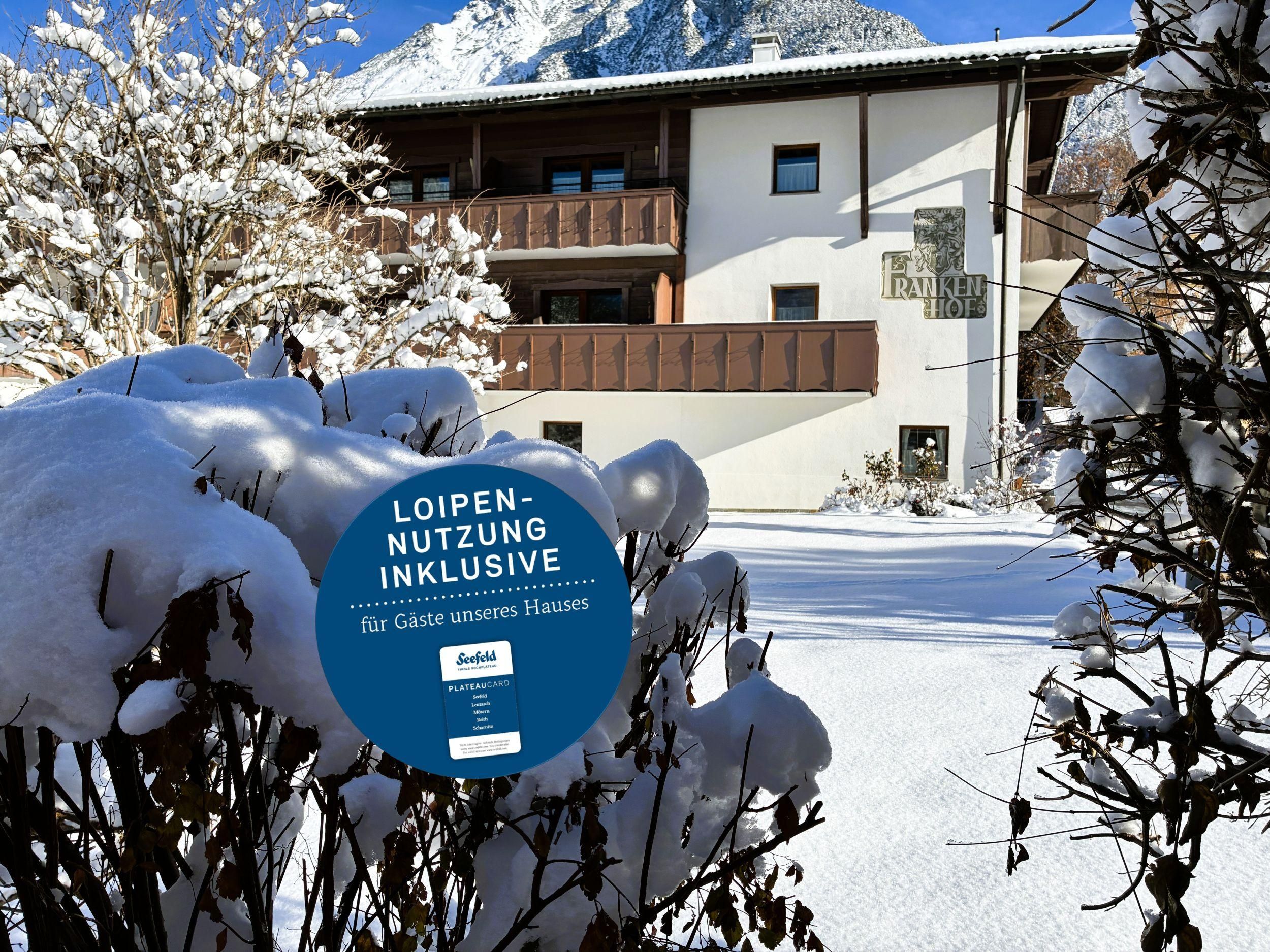 Erholsame Tage im Frankenhof erleben Im idyllischen Scharnitz, umgeben von der atemberaubenden Berglandschaft der Alpen, liegt der Frankenhof – Ihr perfekter Rückzugsort für unvergessliche Naturerlebnisse. Hier erwartet Sie nicht nur herzliche Gastfreundschaft, sondern auch eine Vielzahl von Möglichkeiten, die Region aktiv zu erkunden. Direkt an den Wander- und Radwegen sowie den Loipe gelegen, sind Abenteuer und Entspannung nur einen Schritt entfernt.